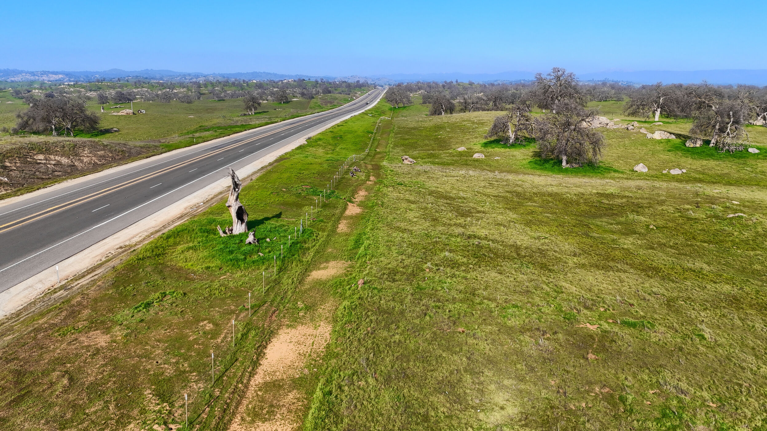 2 parcels totaling 103.79+/- acres of Sierra mountain range and lovely foothill views! This rolling property has majestic Oak trees, no brush and an excellent location near Rio Mesa, Fresno, Yosemite National Park and right on Highway 41. Ideal ranch, orchard or vineyard property with a newer well that came in at 13 GPM. The neighboring property boasts an established vineyard and winery.
