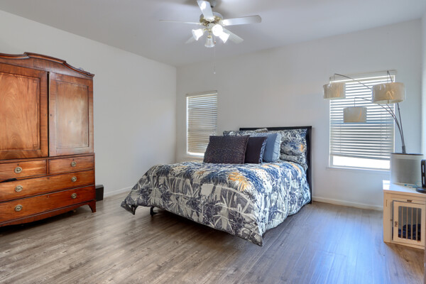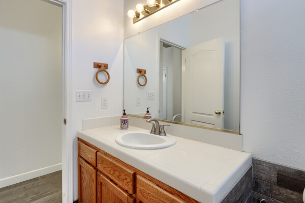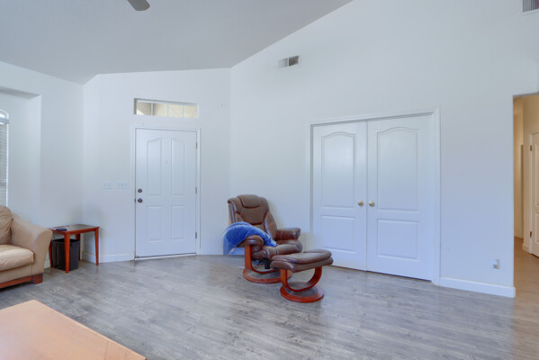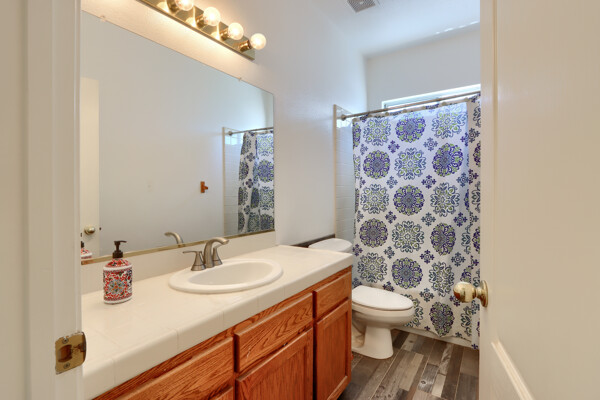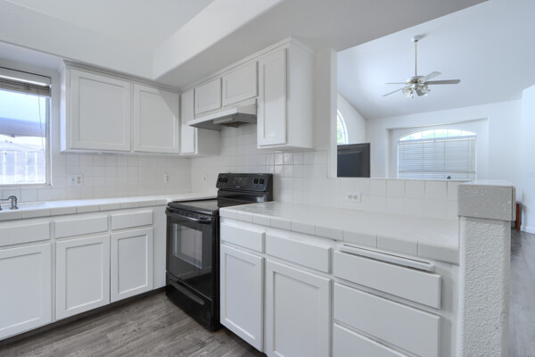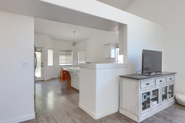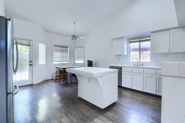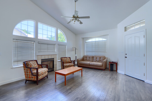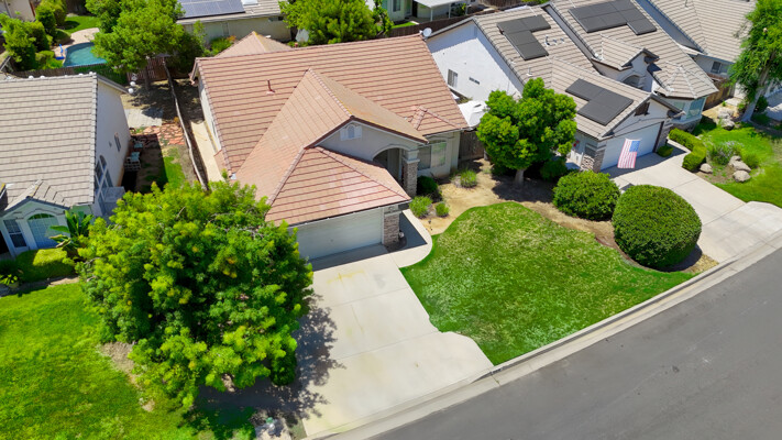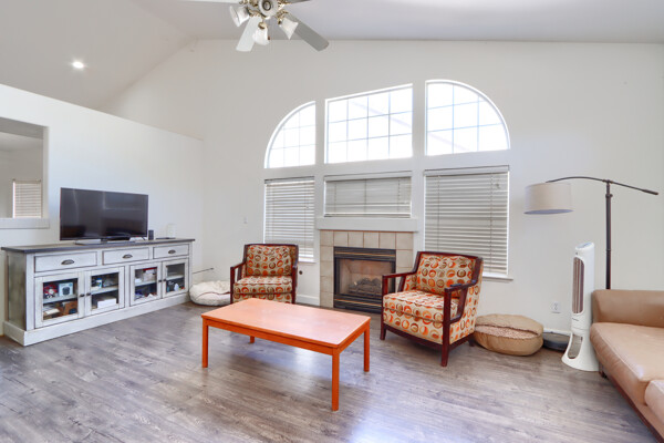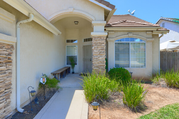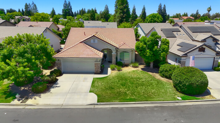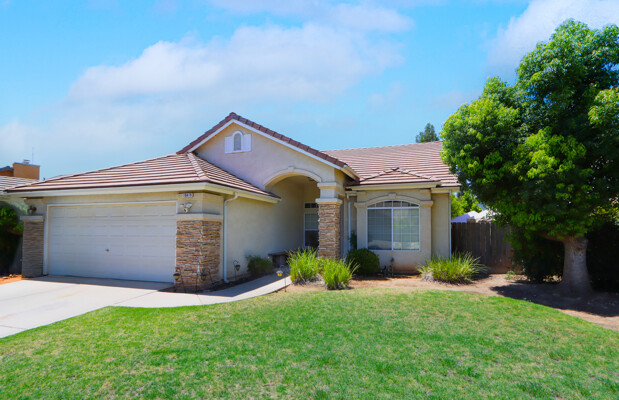 Excellent home in a great Clovis location! Close to shopping, medical, entertainment, schools and more! This 3 bedroom, 2 bath house is waiting for you to call it home! Low maintenance front yard with exterior lighting lead you to the interior where you have a spacious living room with high ceilings, ceiling fan, a cozy fireplace and large windows to let the light shine in. From the the living room there is an easy flow to the kitchen and dining area. The kitchen has lots of tile counter tops, a convenient center island, extra cabinets for storage, a dining area with ceiling fan and a laundry room is close for ease. Easy access to the back yard too. The guest bathroom has a tub/shower with tiled vanity top. And the primary suite offers a retreat with a roomy floor plan, ceiling fan and huge primary bathroom also with tiled vanity, double sinks, separate shower and bathtub. The fenced back yard offers a patio area with a side yard and there is a 2 car attached garage. Come and check this listing out to see the great potential and value!