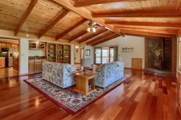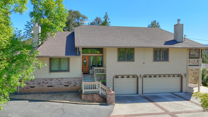 This custom home in the Pine Mountain Lake Community is a paradise for outdoor enthusiasts and nature lovers, with its prime location thats just minutes to Yosemite National Park. The spacious 3-bedroom, 3-bath home with 2598 square feet offers a luxurious retreat with a thoughtful design and plenty of custom conveniences. The open floor plan with gorgeous hardwood floors in the large great room provides a warm and inviting space to relax and entertain, while the beautiful lake views add to the serene atmosphere. The additional features, such as the open wet bar, eat in kitchen, formal dining room w/ builtins, the large 3-car garage with a dumbwaiter for wood delivery to the custom woodstove, showcases the attention to detail in this home's design. The large screened-in porch offers a perfect setting for outdoor gatherings with stunning lake views, making it ideal for hosting dinner parties or simply enjoying the scenery. The custom kitchen is a chef's dream, with ample space for meal preparation, top-notch appliances, a large pantry w/ 2nd fridge (a 2nd dumbwaiter to deliver groceries), and a convenient island with a built-in BBQ area. The main level bedrooms, including a primary guest suite with a walk-in closet and laundry, provide comfort and convenience, while the detached outdoor building off the primary offers flexibility for additional uses like a garden, workshop, or guest space. The garage's custom cabinetry and storage options make it easy to stay organized and pursue hobbies like crafting or woodworking. With access to water skiing on the lake, golfing, pickleball, and winter sports at Dodge Ridge and Yosemite National Park, there's no shortage of activities to enjoy in this vibrant community. The potential for short-term rentals in the area adds another layer of flexibility and income opportunity for homeowners. This home truly offers a blend of luxury, comfort, and outdoor adventure, making it a perfect destination for those seeking an active lifestyle in a beautiful natural setting – it's indeed a gem for anyone looking to experience the best of mountain living near Yosemite National Park. Call today!