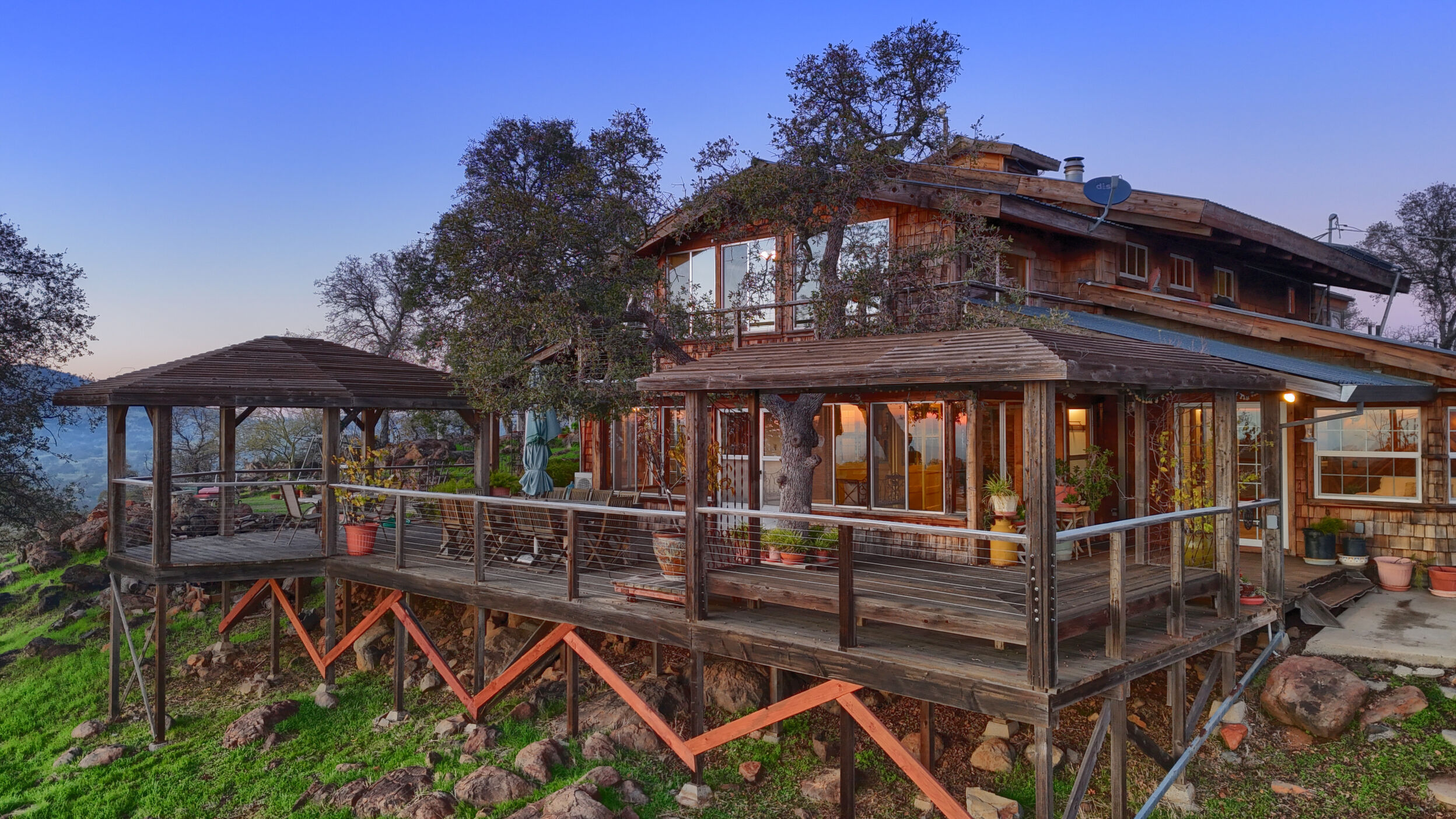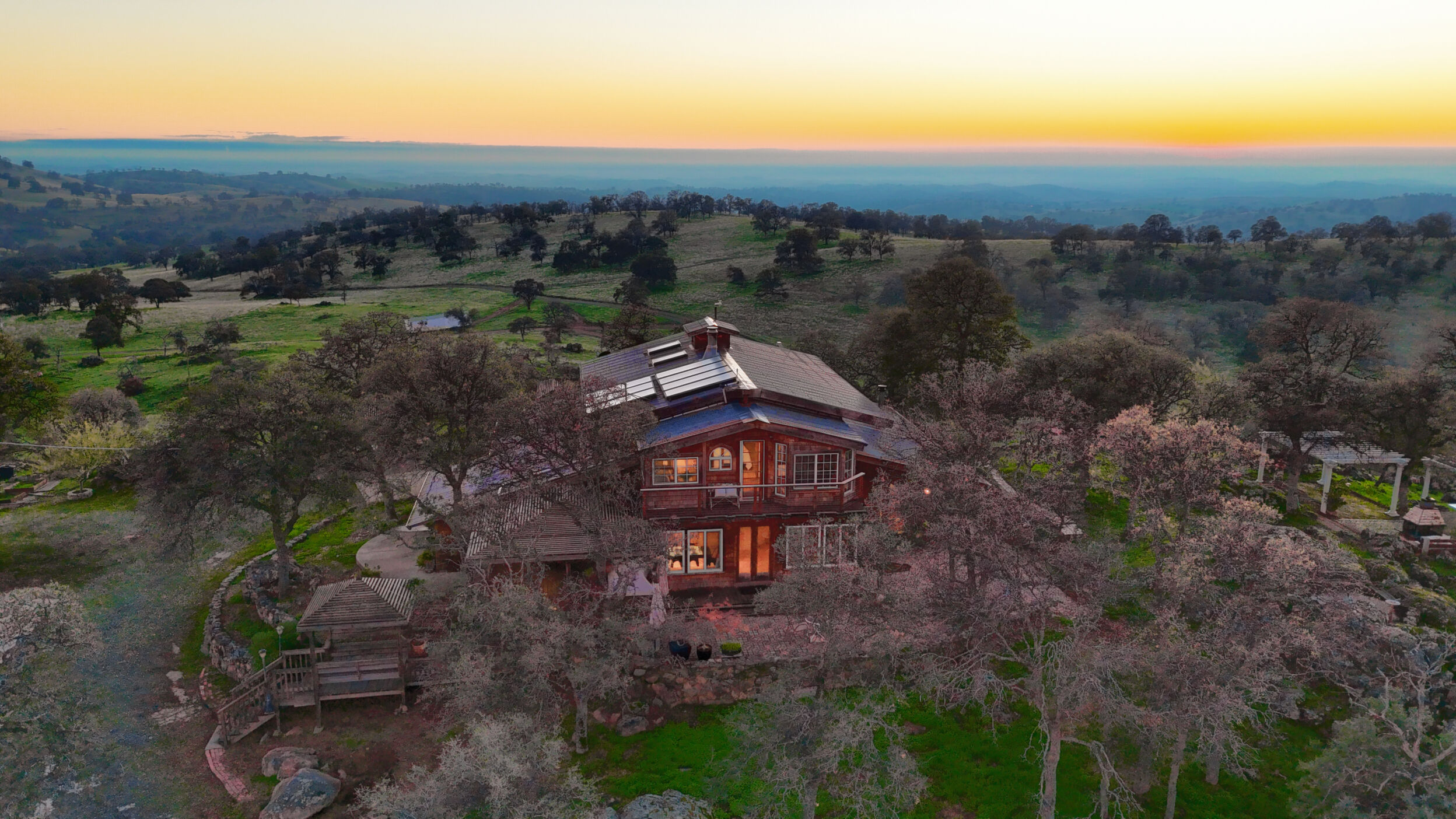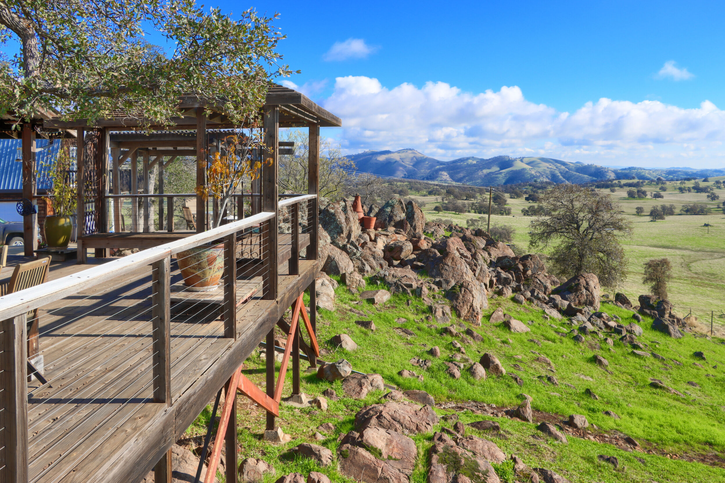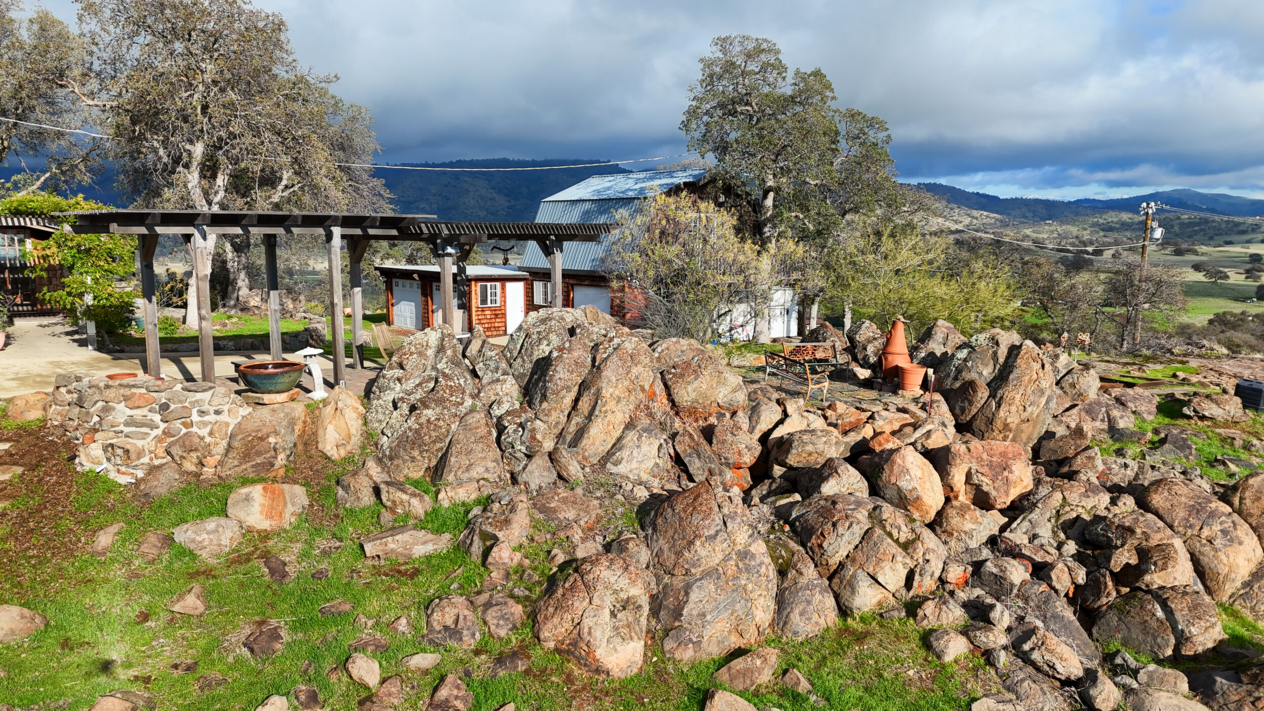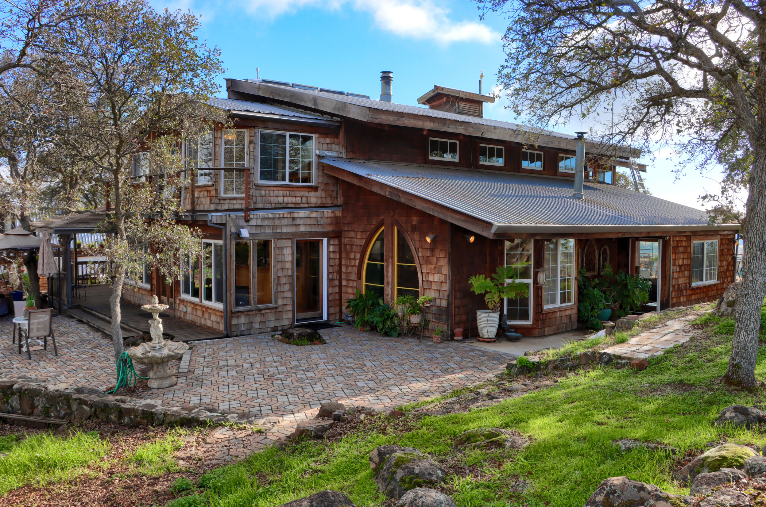 This beautiful, unique 12.38 acre retreat perched atop it's own small mountain in scenic Cathey's Valley, just an hour from Yosemite National Park, is a vision from a bygone era when people used their own hands to build their dreams from magazine clippings and hand drawn plans. Inside the home you'll find whimsy and inspiration around every corner. With salvaged treasures from near and far incorporated into every detail, it is the perfect environment for an artistic refuge. With 2268 square feet of charming, creative details, this two bedroom, three bath home, with multiple flex spaces, offers many nice touches such as a solar water heater, radiant heat flooring, and a versatile layout. Every room shines with it's own unique beauty, creating a home that could easily be a museum. Outside, the 360 degree endless vistas will take your breath away from sunrise to sunset. The upstairs primary suite features a sun-soaked sitting room, walk-in closet, and a clawfoot soaking tub facing the mountains - your own private sanctuary. A large west-facing office offers stunning sunset views. In addition to the unique indoor features, the outdoor living is exceptional: stone patios woven into native boulders, a deck built around a majestic oak, summer-blooming trees, and vistas stretching from Mt. Bullion to the Coast Range. A detached two-story garage/studio, pole barn, fencing, water storage system, and solar hot water complete the property. Property is being sold as-is in it's current and present condition. This pro-active seller has paid for a home, pest, septic and well inspection to provide to buyer to ensure a quick and smooth escrow. Come take a look and make this unique treasure your home for the holidays!