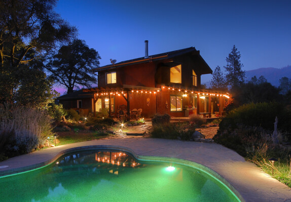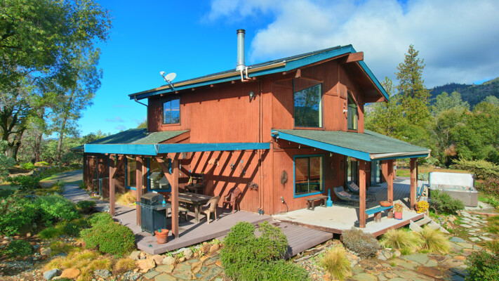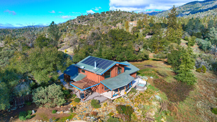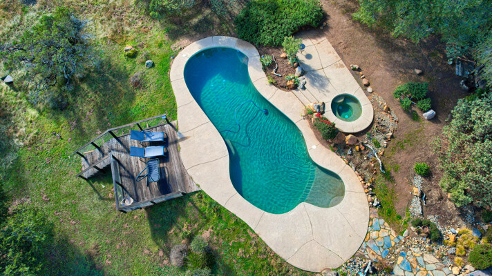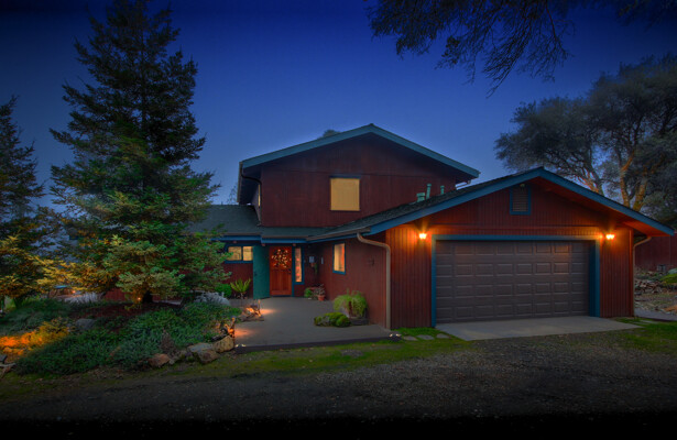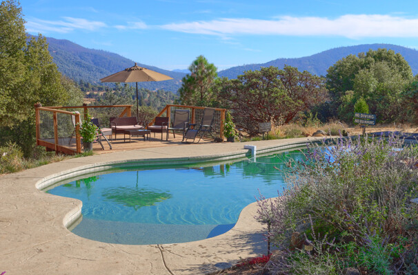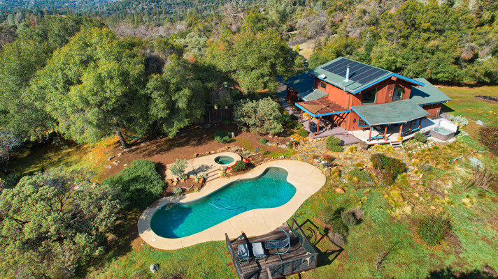 Location is always a plus when you find that one amazing home with gorgeous views of the Sierra Mountains & beyond. The foyer takes you to an architectural digest living room with open beamed 20 ft. ceilings & an amazing rock fireplace which spans floor to ceiling. The large living room windows offer plenty of amazing Sierra views yet maintain mountain privacy. The kitchen, which is great for entertaining, has a large center island opening to the dining area w/ large picture windows & a large walk-in pantry. The master suite is a retreat w/ access to the deck, pool, spa & amazing, picturesque views of the snowcapped mountains & Bald-Rock. The master bath has been improved w/ a large walk-in shower, double sinks & plenty of storage. Upstairs has two additional bedrooms, a bath & a large loft, currently used as a game room. Best of all, take your guests outside to an amazing pebble tech pool & spa w/ landscaped accents throughout on this 5 acre property. Wait until you see this home! Tax records differ from MLS, buyer to verify if important.