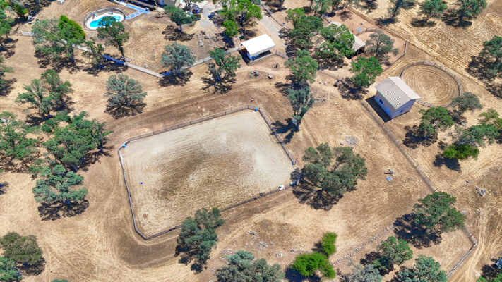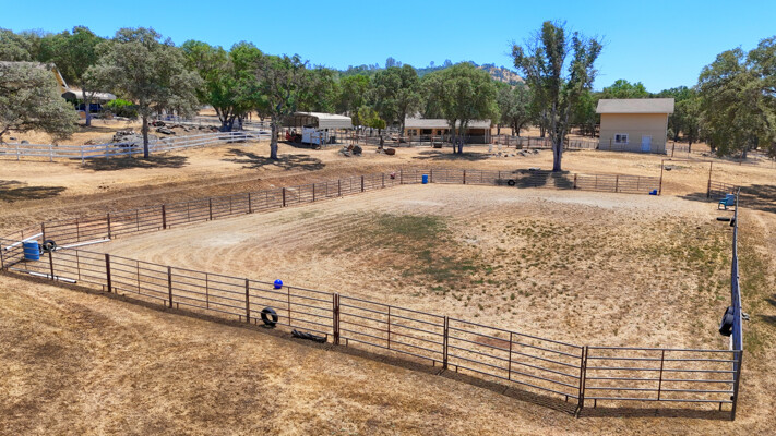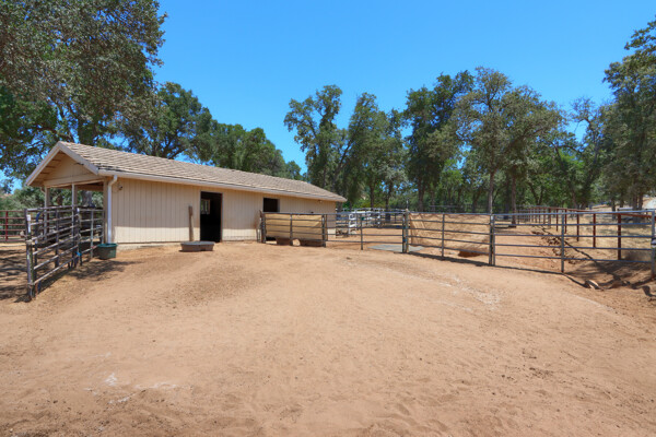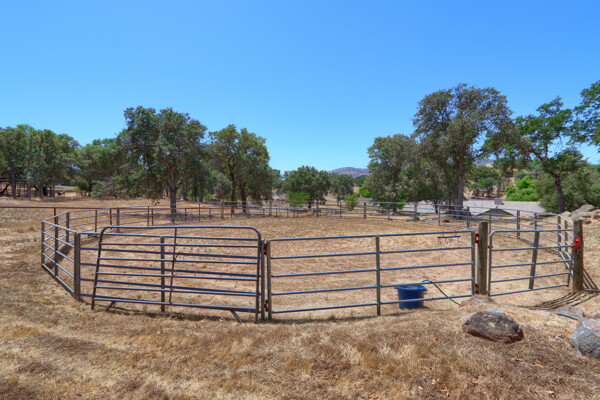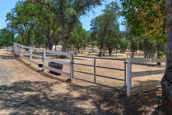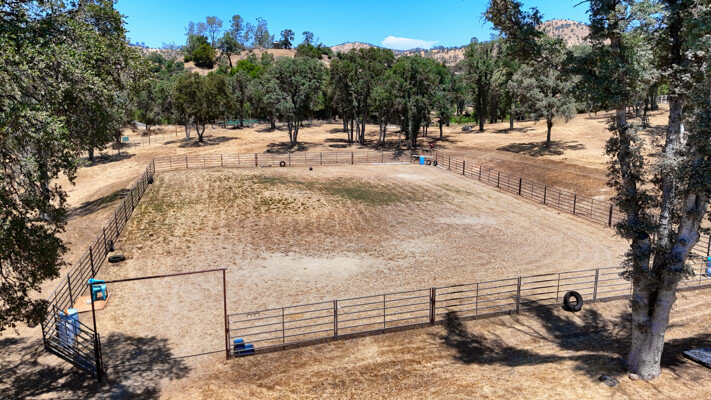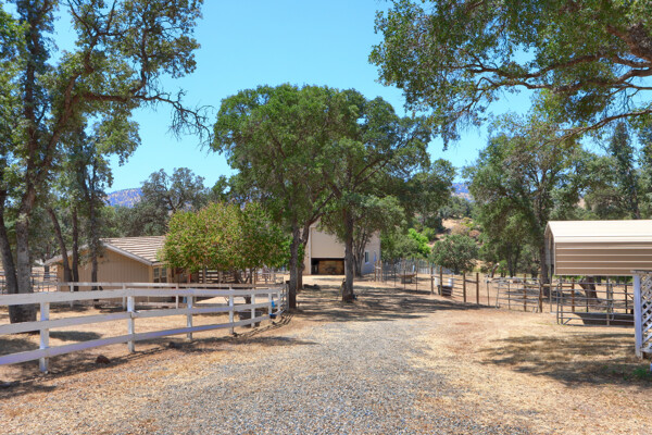 PRIME LOCATION! Nestled in the heart of Catheys Valley, this pristine 3-bedroom, 2.5-bath country retreat offers approximately 1,900 square feet of comfortable living space on over 5 acres, perfectly positioned at the end of a quiet cul-de-sac within the exclusive gated community of Whispering Oaks Estates. BRING THE HORSES! This fully equipped horse property is move-in ready and boasts top-notch equestrian amenities, including a horse barn with an 8x18 tack room, two spacious 12x12 box stalls with attached runs, one 12x16 open-air stall (with two solid walls) and a roomy paddock. A separate hay barn stores two full blocks of hay with an additional oversized storage room. Also included: a 60’ round pen, a 98x140’ riding arena, a fully fenced pasture, and direct access to scenic horseback riding trails. That’s not all—there’s also a large dog run and a charming chicken coop for your furry and feathered friends! The home itself welcomes you with a lush, mature landscape and a shaded front yard perfect for relaxing or entertaining. Step inside to a spacious living room with soaring open-beam ceilings and a dramatic floor-to-ceiling brick fireplace—complete with a wood-burning insert that keeps the whole house cozy. Built-in bookshelves and a custom wood nook add charm and function. The formal dining room, currently set up as a home office, features a Dutch door leading to the redwood deck—partially covered for year-round enjoyment. The primary suite also has vaulted ceilings with exposed beams, a cozy window seat, and a French door opening to the back deck. The en-suite bathroom is your personal retreat, featuring a large walk-in shower and a luxurious jetted soaking tub. Residents of Whispering Oaks Estates enjoy access to a private community lake—perfect for kayaking, canoeing, fishing, or picnicking at the lakefront park. This is country living at its finest—your family (and your animals!) will love every inch of it!