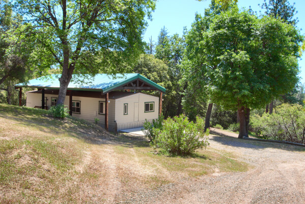 Retreat to a simpler life in the tranquil woodlands, this meticulously maintained 2-bedroom, 2-bath + office retreat offers the perfect setting for a slower, more intentional lifestyle. Set on gently sloping land with trails carved throughout, the property invites you to explore, unwind, and reconnect with nature. The 1,440 sq. ft. home, originally constructed in 1979, is in pristine condition and sheltered beneath a stunning open pole barn that was built to support the 40 pound snow load needed at at 3500 foot elevationan architectural feature that not only protects the home but adds rustic charm and function. The interior radiates vintage charm while offering thoughtful modern updates, including beautiful newer flooring, windows, exterior paint, deck, evaporative cooler, concrete pad, sidewalks and roof. Step out onto the all-weather deck and take in the peaceful forest surroundings, where birdsong replaces noise and stress. Whether you're dreaming of growing your own food, setting up solar, or simply savoring quiet mornings on the porch with a cup of coffee, this property offers room to breathe and space to create your own homestead haven. There's ample potential for gardens, animals, or even a completely off-grid lifestyleall just a short drive from the gates of Yosemite. Due to manufactured home being relocated, seller will be accepting cash offer or loans provided through a pre-approved lender. Contact listing agent for more details.