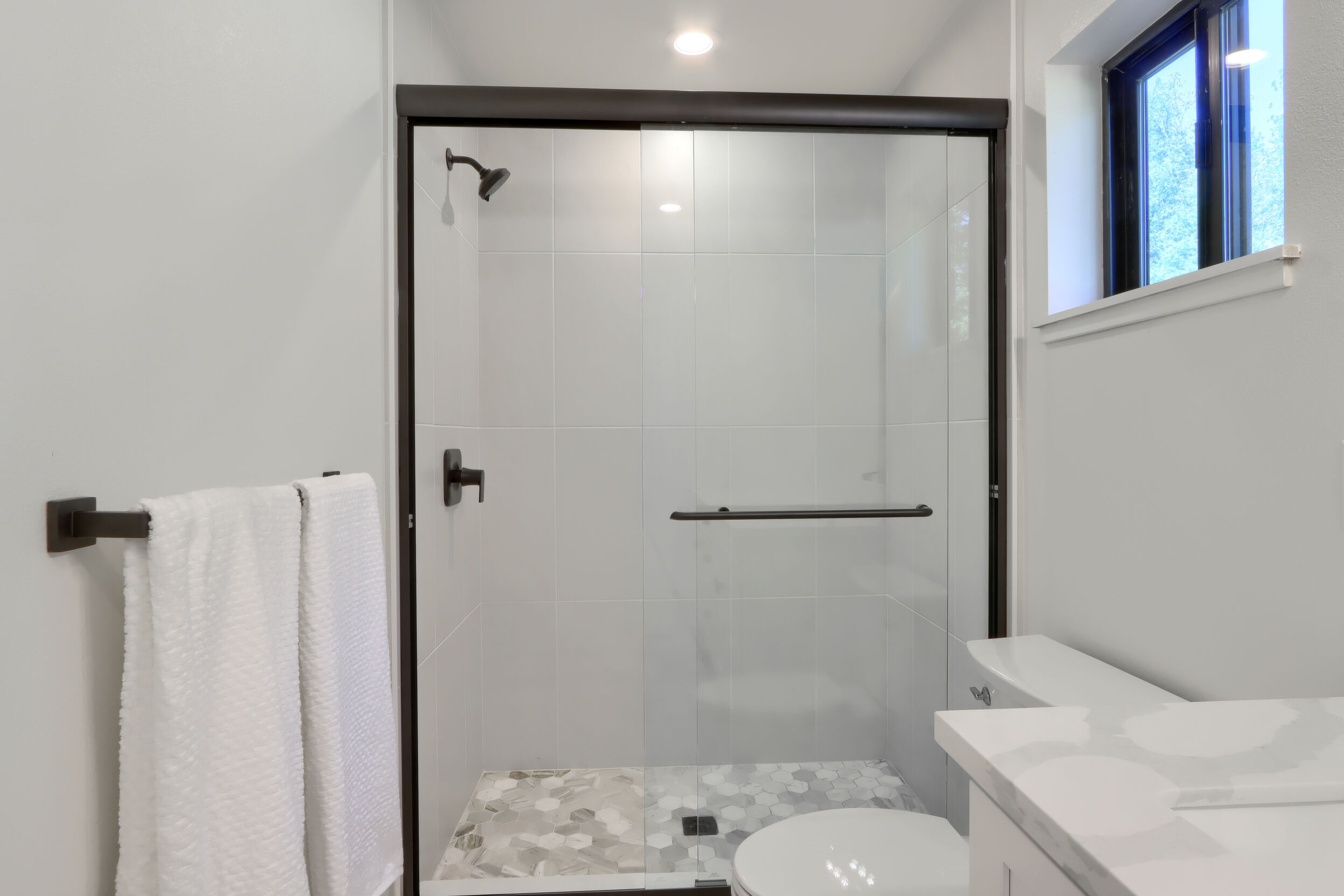 Completely reimagined from the studs up, this stunning home retained only the original exterior walls and was rebuilt with all new mechanical, electrical, plumbing, and septic systems. The oversized septic was thoughtfully designed to accommodate future additions or short-term rental potential. Every aspect of the rebuild was fully permitted, completed with architectural drawings, and signed off by the county.