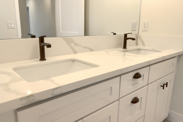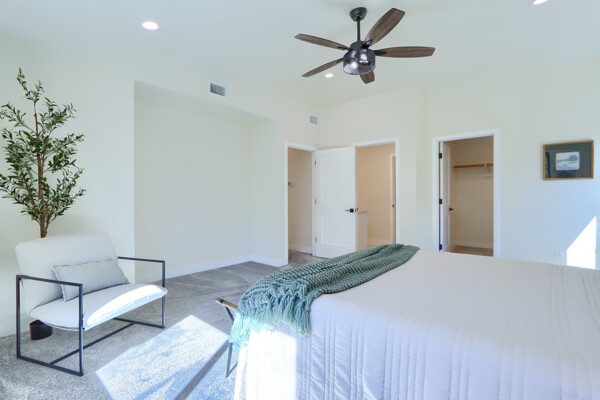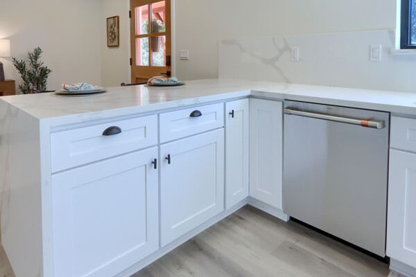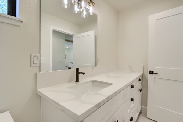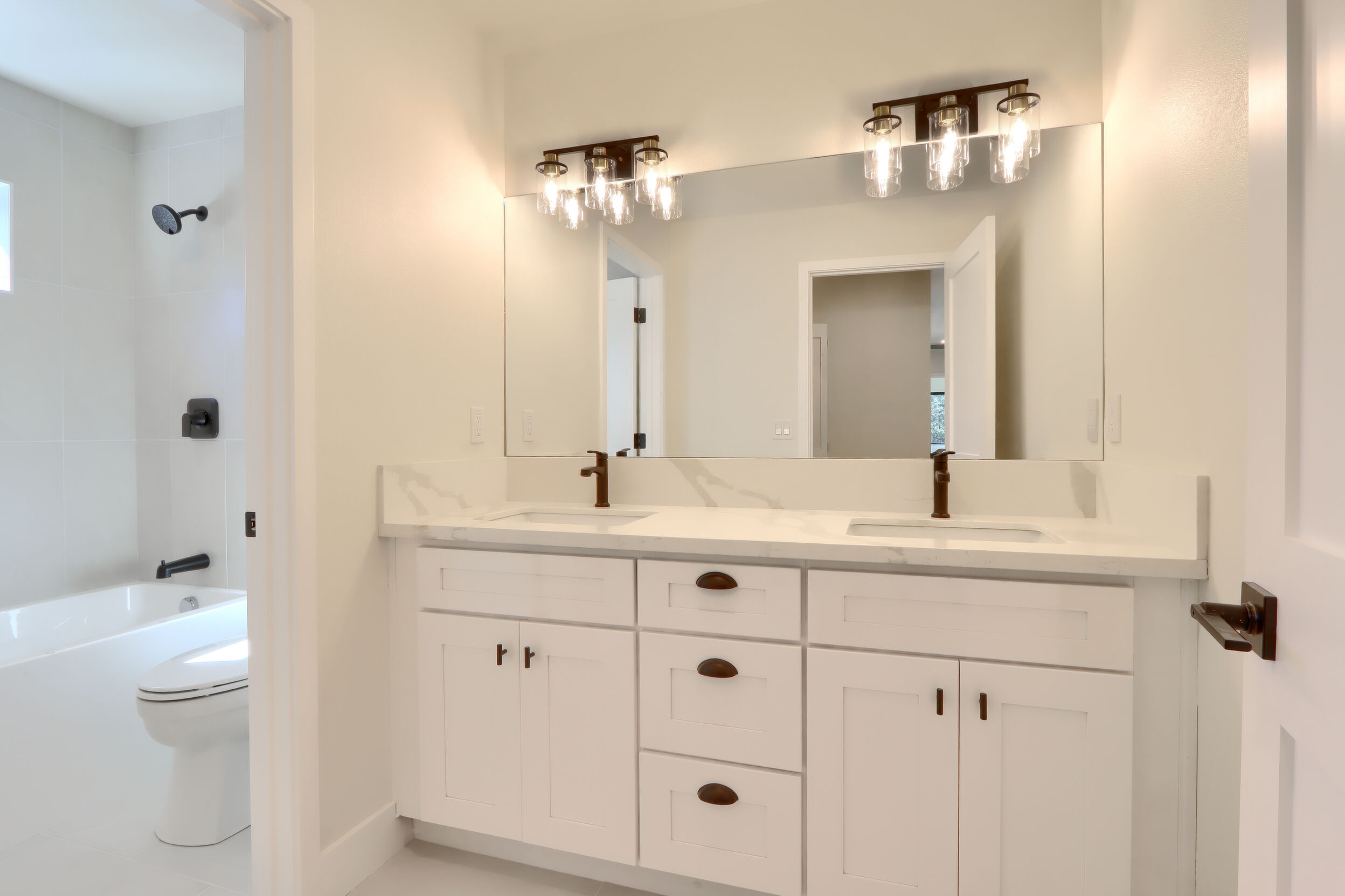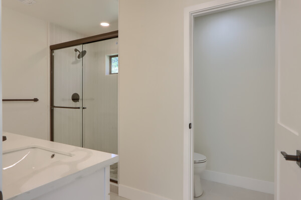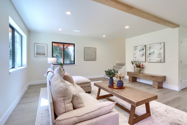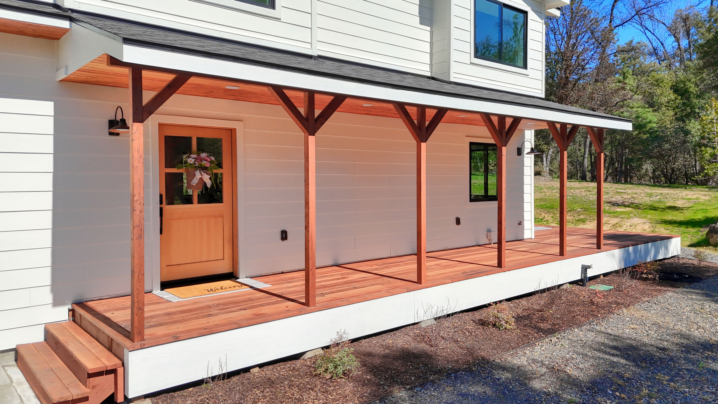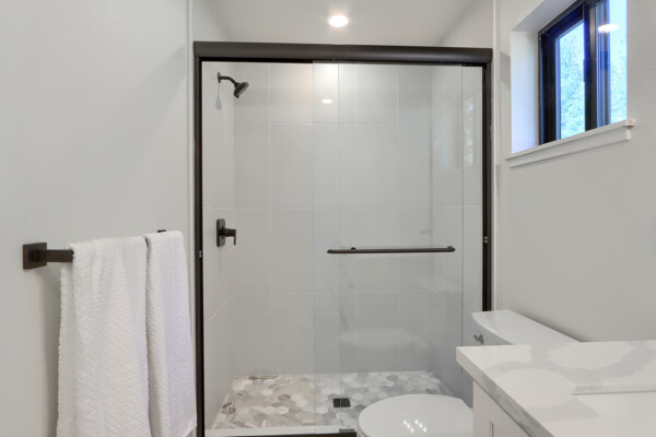 High-end finishes and craftsmanship shine throughout, including striking 42-inch wide solid walnut exterior doors, dual-pane high-end vinyl black-framed windows, durable concrete siding, beautiful redwood decking, premium flooring throughout, custom cabinetry, and quartz countertops across the home. All bathrooms feature beautiful tile surrounds, and ample lighting has been thoughtfully incorporated with recessed can lighting and fan/light combinations.