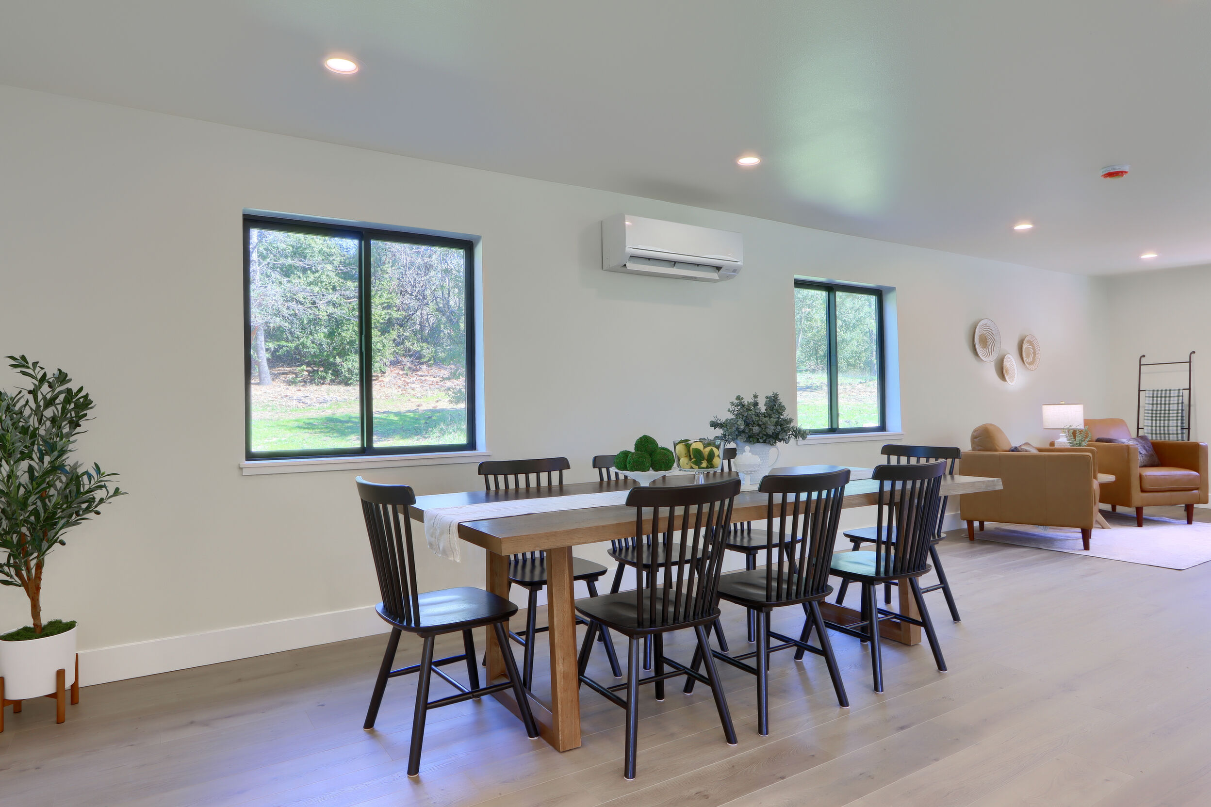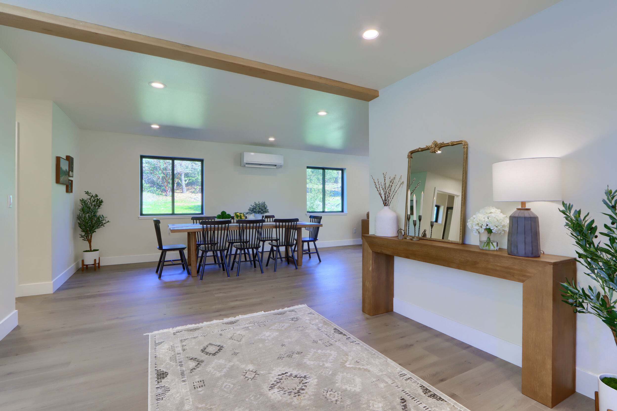 Comfort and efficiency are ensured with new mini-splits, new combo heating and cooling units, and a tankless water heater. Above the garage, an unfinished space (725 SF) with a separate entrance has already been pre-plumbed and pre-wired, offering the perfect opportunity for an ADU, guest quarters, or additional living space.