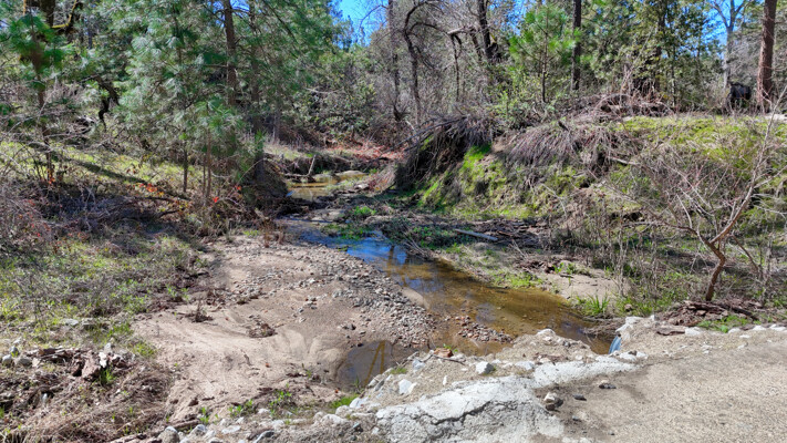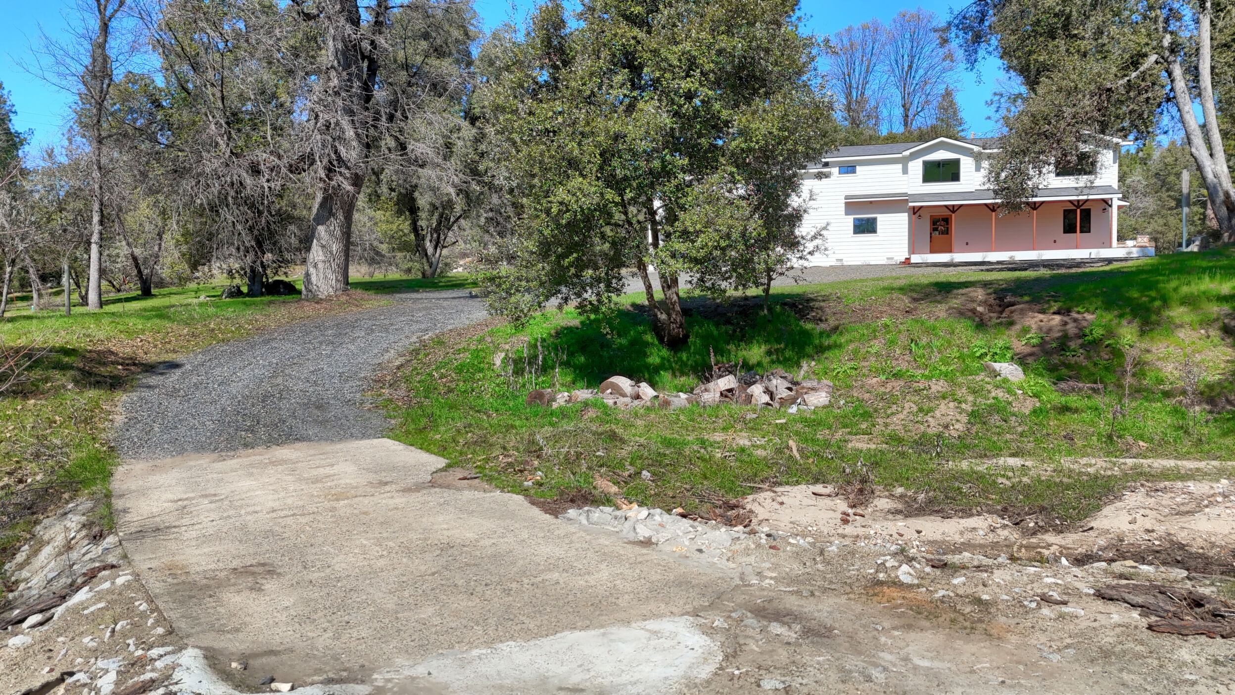 As you wind through the freshly cut driveway topped with new crushed granite, you'll experience complete privacy and seclusion. A charming bridge crosses a seasonal creek that runs through the property, adding to the peaceful, natural setting.