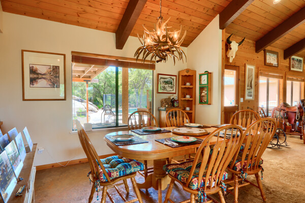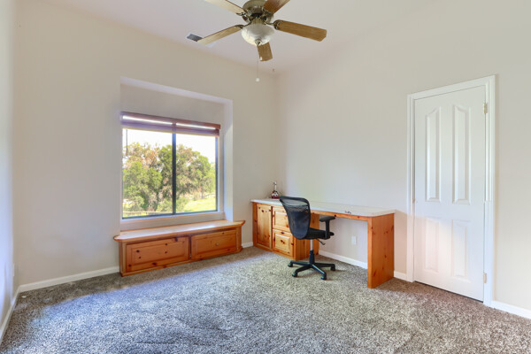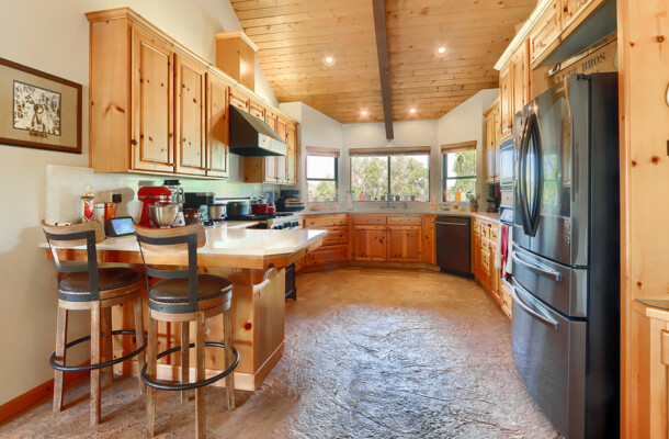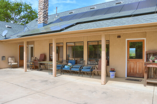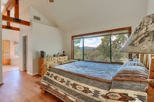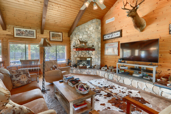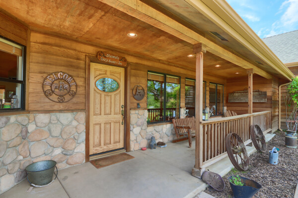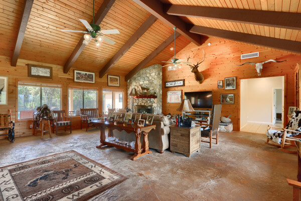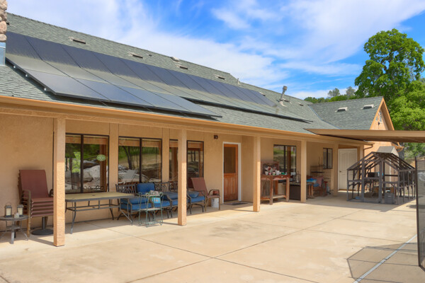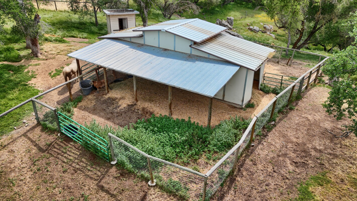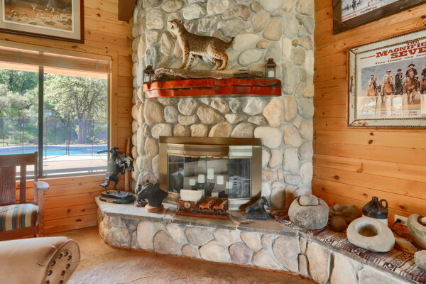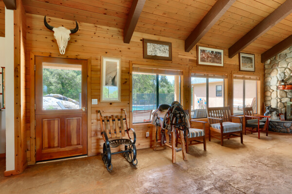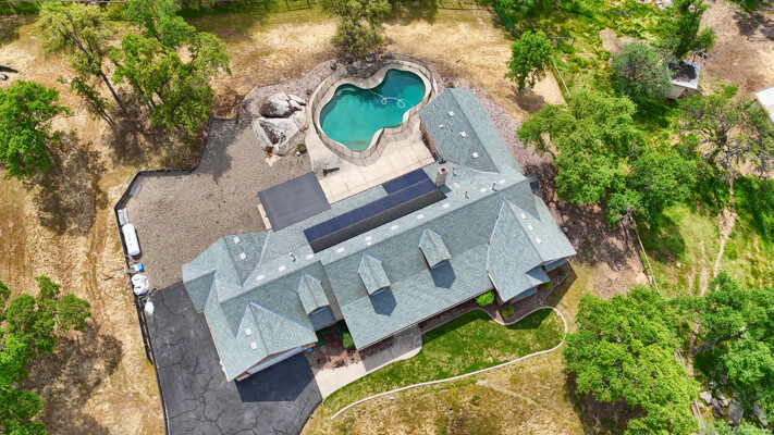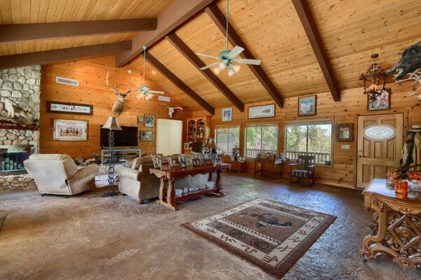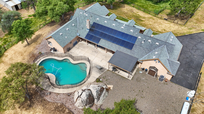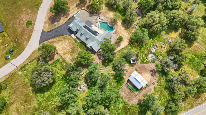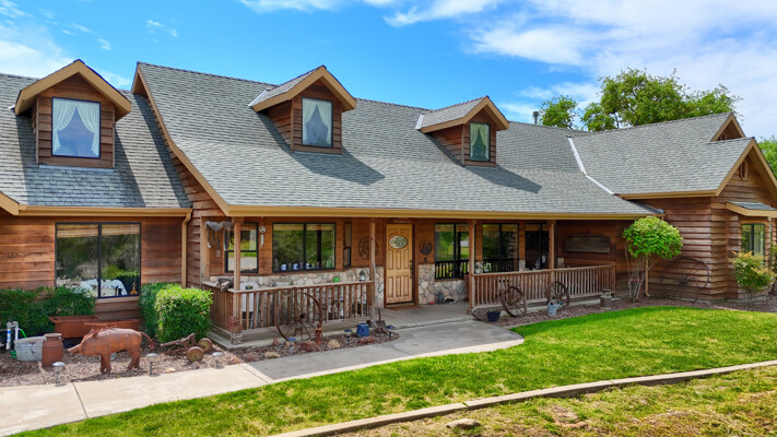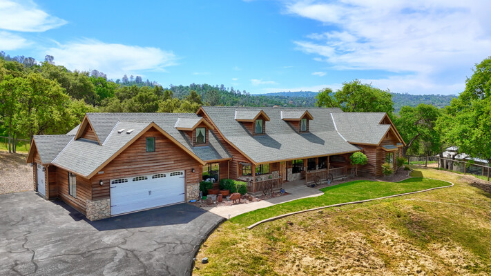 Custom built 4 bedroom, 2 bath with a fantastic in-ground pool, barn, room for your horses and owned solar! The lovely front view has an open large front yard with a covered front porch that is perfect to watch the kids run around. Stunning tongue 'n groove walls and ceilings with open beams, drop ceiling fans, stamped stained concrete flooring are lovely details throughout with new interior paint and new primary bedroom floor. Large view windows and a rock fireplace will be a favorite retreat for the whole family in the living and dining area. The kitchen has a great flow with surround quartz counter tops, granite sink and cabinets with a convenient breakfast bar, chef's dream Viking stove with hood, dishwasher, built-in oven and walk-in pantry. An office/bonus room, laundry room, bathrooms and bedrooms can be found as you travel down the hall. The primary bedroom has a private fireplace, unique beamed ceiling with fan, dramatic view windows to wake up to, walk-in closet and separate jetted tub and shower. Guest bedrooms have window seats. The back patio has so much room for entertaining and the pool is perfect for summer fun and exercise. The 2 car 726+/- sq. ft. garage is used as a game room complete with mini frig/bar, heat and AC-it's a man cave but easily converted back and then some with an additional 1 car garage! This beautiful property offers corrals, a huge barn and room to ride! Great for your small horse ranch, 4-H or FFA animals completely fenced or cross-fenced. Easy commute locate to Fresno or Madera! Come and see your dream come to life with this country home with all the bells and whistles!