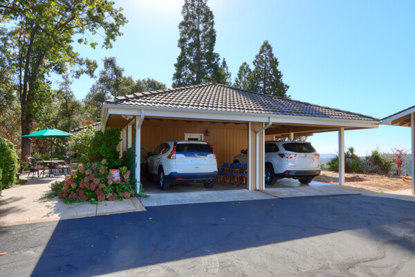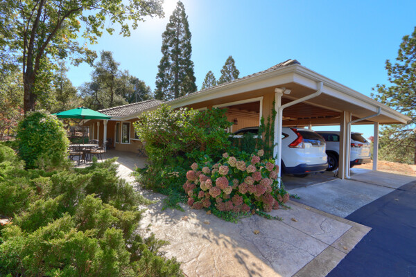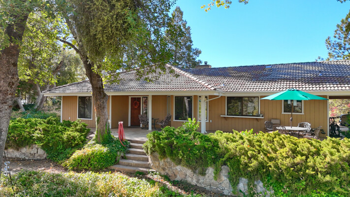 Custom built dream home in a gorgeous setting with beautiful views! This 2 bedroom, 2 bath home offers a peaceful front patio, large back patio, owned solar, detached 2 car garage, attached carports, RV parking and so much more! From the time you enter the gated driveway, this beautiful 5.06+/- acre property offers you relaxing views in every direction. The living room has a cozy fireplace with woodstove insert, the dining room is complete with a built-in hutch and wet bar and wine refrigerator, the kitchen has lots of Granite counter space, built-in appliances, a pass through to the breakfast nook and there is a laundry room with a large pantry space. There is a lovely enclosed sun room to enjoy the views year 'round! The primary bedroom is complete with a double sink vanity, separate shower and jetted tub. RV covered parking with hookups, Tuff shed and a separate open storage space with multiple bays. Extra care was given to this home and its improvements! Including 2x6 construction, R-19 insulation, resealed driveway, tile roof updated, hand textured walls and ceilings, self-closing kitchen and bathroom drawers, Granite counters in kitchen and bathrooms, PEX plumbing and a custom rock fireplace. Excellent vacation destination home just 2 miles to Bass Lake, 51 miles to Yosemite National Park Badger Pass Ski Resort, and 54 miles to China Peak Ski Resort! Come and fall in love with everything this custom home has to offer you!