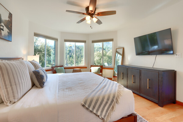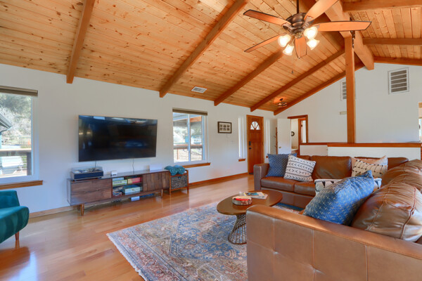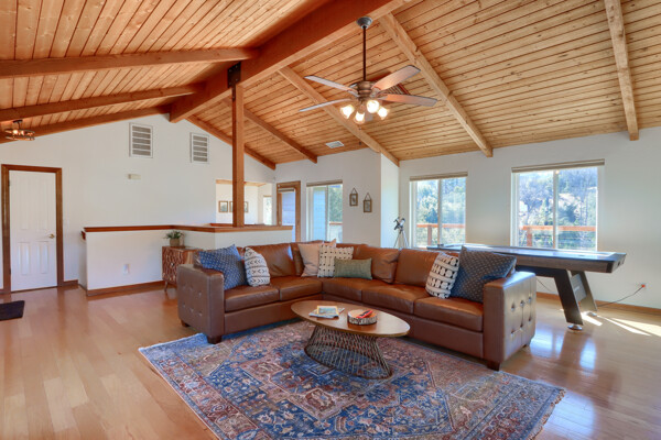 Secluded Mountain Hideaway Near Bass Lake & YosemiteEscape to this stunning two-story cabin, nestled on a private 4-acre mountainside retreat just minutes from Bass Lake and Yosemite's south gate. Surrounded by oak and pine trees, this luxurious hideaway offers breathtaking views, modern amenities, and endless entertainment options for Airbnb guests, families, and friends.This three-bedroom cabin features a master suite with a soaking tub. The other two bedrooms are located downstairs, providing easy access to the hot tub and the gorgeous outdoor fireplace area.There is a detached garage, perfect for transforming into a game room, with a partially developed studio beneath it.Experience the best of mountain living with privacy, luxury, and adventure at your doorstep. Whether you're seeking a peaceful retreat or an action-packed getaway, this cabin has it all!