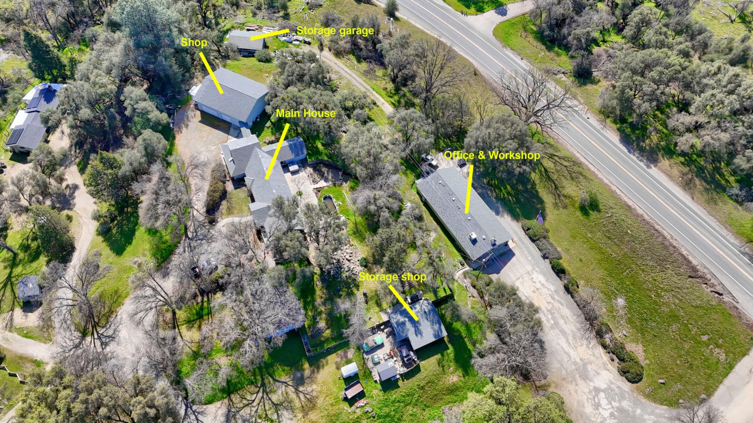 This is not a typical Mariposa property it is a fully developed live/work opportunity with infrastructure that is incredibly rare in our market. Located on 2.87 acres with Highway 49 frontage in the Bootjack Town Planning Area, this property includes 6 total units and an extraordinary 9,912 square feet under roof a level of covered space seldom seen in Mariposa County. The 2,600 sq ft main home offers comfortable residential living, while the additional structures create a substantial operational footprint, including a 2,880 sq ft office/business building, a 2,000 sq ft car shop, additional shop buildings, garages, and a potential 936 sq ft ADU. Ideal for contractors, tradespeople, automotive specialists, fabricators, or entrepreneurs seeking visibility, flexibility, and room to expand, the Highway frontage and Bootjack location support a variety of potential business uses (buyer to verify with county). Live on-site, operate your business, create rental income, or design a customized live/work setup tailored to your vision properties offering nearly 10,000 square feet under roof combined with residential comfort are exceptionally rare in this area, making this a unique opportunity to own scale, functionality, and future potential already in place.