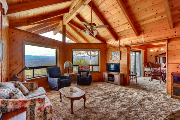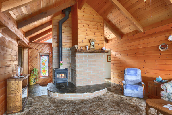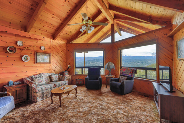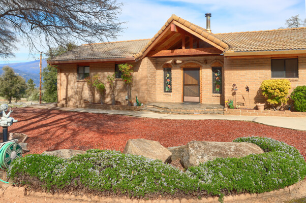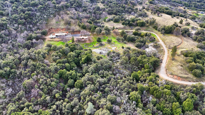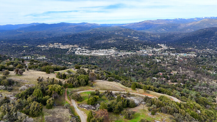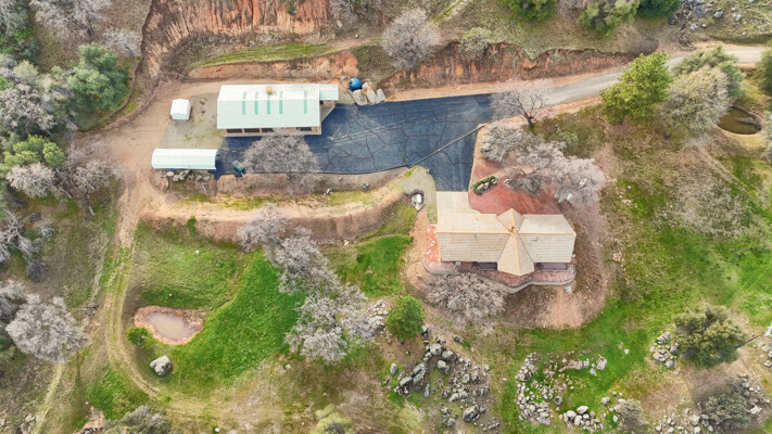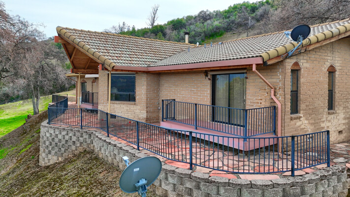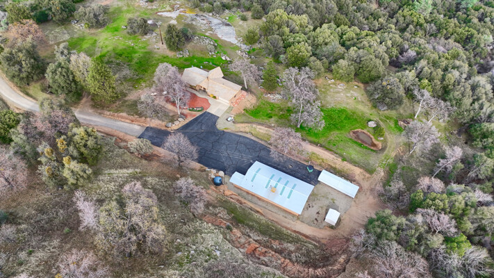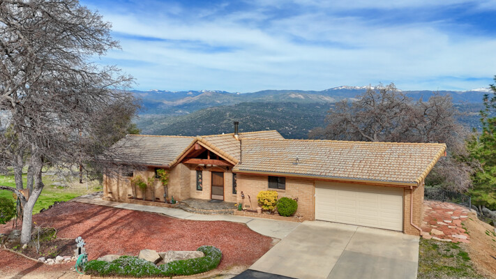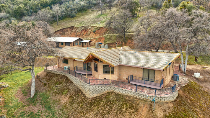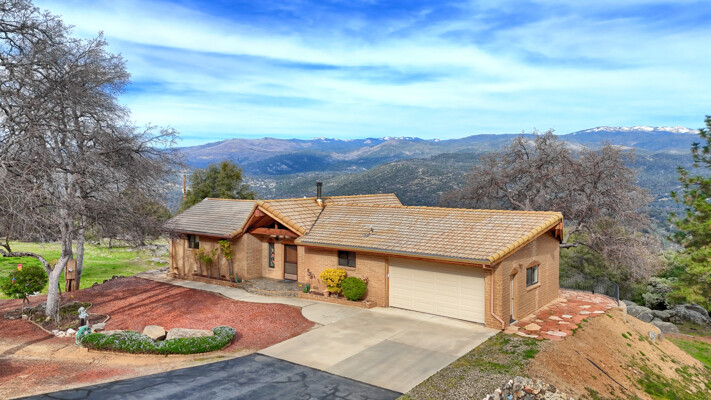 Amazing large acreage with a fabulous Bill Hamilton custom home, 2 seasonal ponds and beautiful landscaping, attached 2 car garage, detached 4 car garage with workshop and gorgeous mountain and city night light views! This custom home has charm and design details you need to see! Stained glass window, lovely aggregate rock flooring, tongue 'n groove wood work with beamed ceilings, freestanding wood stove, views from every window, extra counter space and cabinets in the kitchen with a breakfast nook that takes in the views from the back patio! The back patio with fenced and has step down decking from the breakfast nook one side and the primary bedroom on the other. The charming tongue 'n groove continues to the primary suite and the guest bedroom. There are 2 separate laundry areas: 1 in the house and 1 in the detached garage. The attached garage has wood and wood beam ceiling with insulation and mini splits for heat and A/C and could easily be converted into another bedroom. The detached garage is 1800+/- sq. ft. with a workshop. The driveway is paved and leads to the 4 car detached garage and the the RV carport and utility shed. On demand generator, RV carport and added a tile roof for fire protection. The views are so fantastic they will take your breath away! Come and see this 40+ acre rare find in Oakhurst!