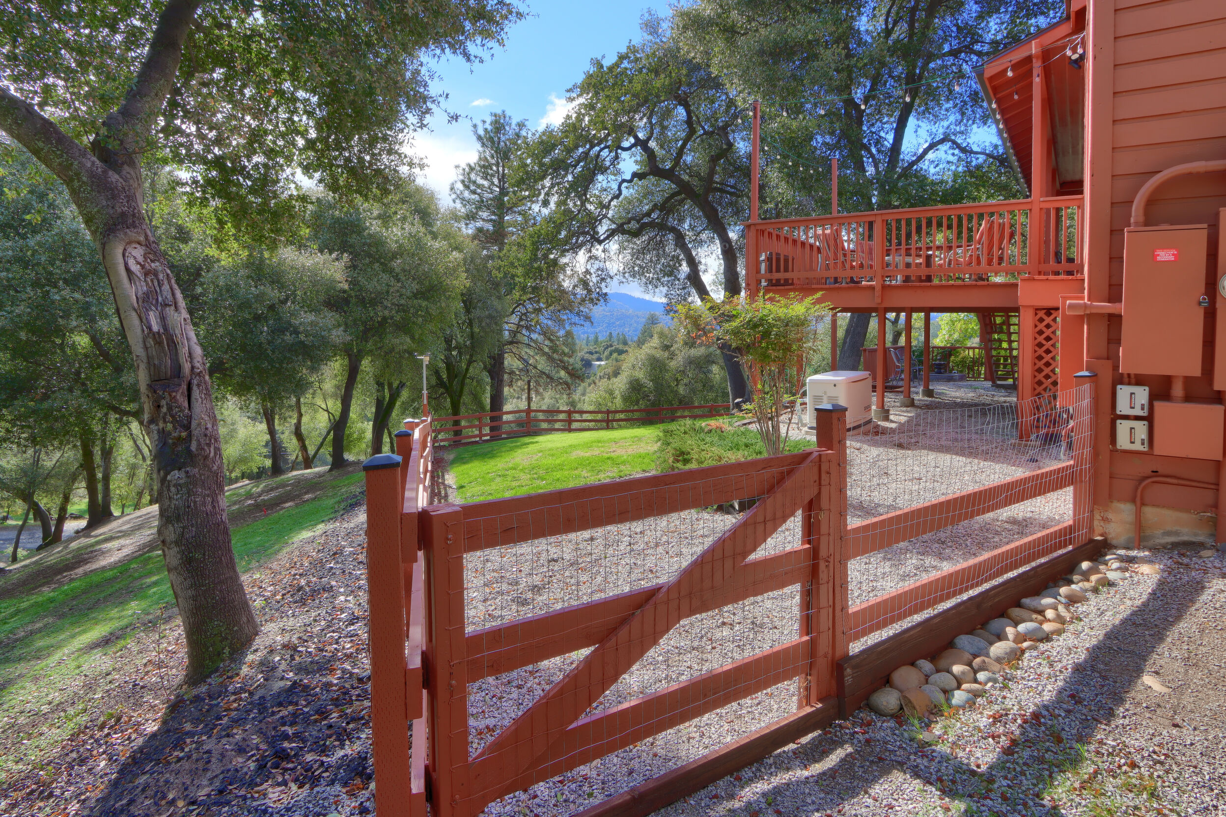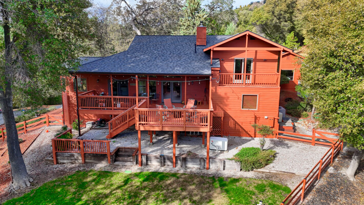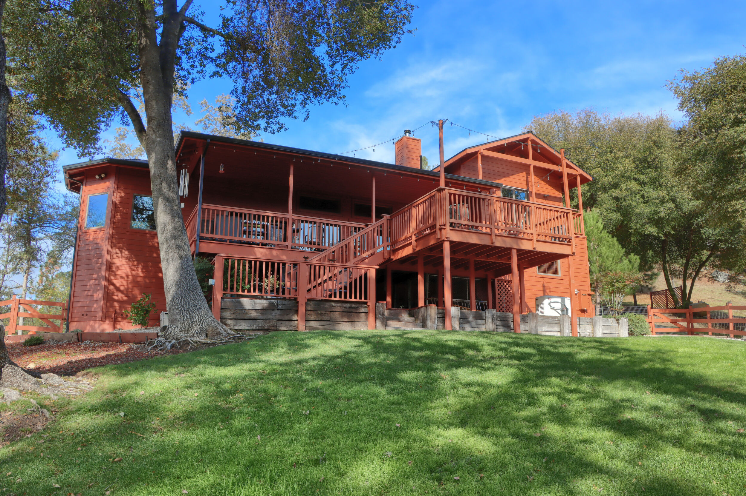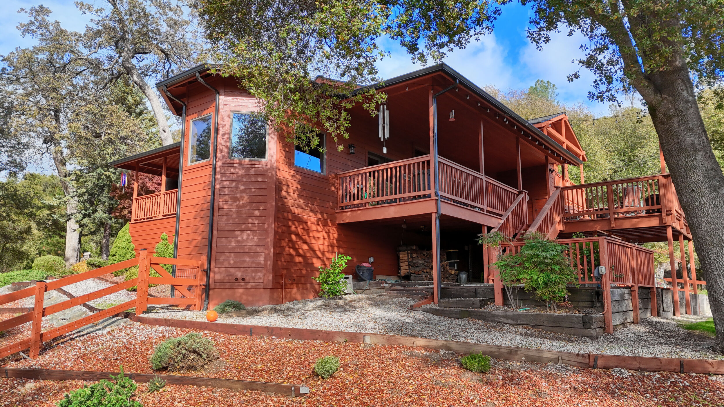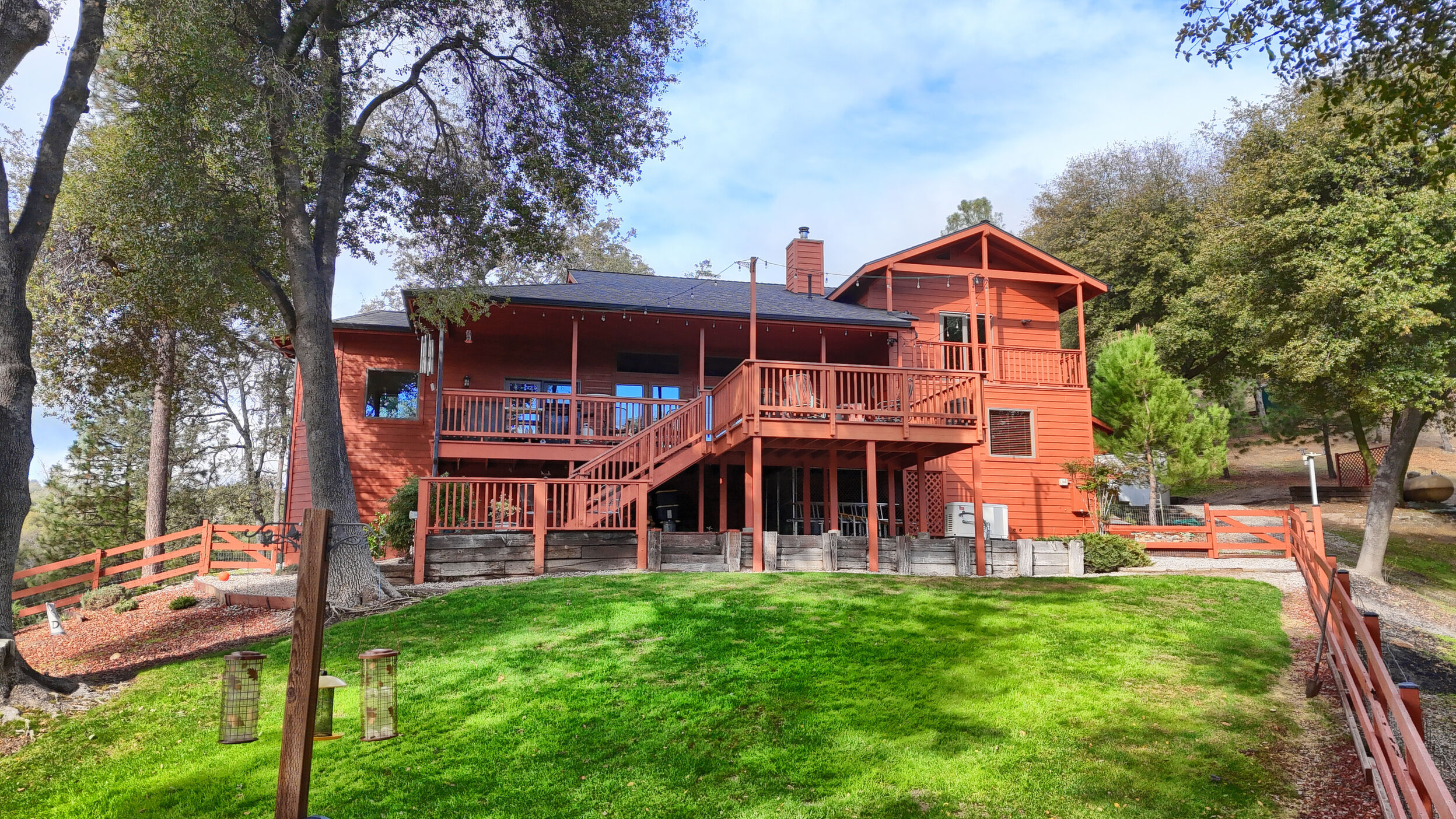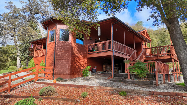 Peaceful Mountain Retreat with Views on 5.46 Acres Beautiful, well-cared for tri-level custom home with picturesque views, situated above the 3,000 ft elevation on a serene 5.46-acre park-like setting. This 3 bedroom, 2 bath, 2,210 sq. ft. home offers both comfort and character, with covered front and rear decks perfect for enjoying the outdoors in every season. Inside, you'll find an EPA-compliant freestanding woodstove on a raised rock hearth, a whole-house fan, and a zoned HVAC system for year-round efficiency and comfort. An automatic backup generator runs the entire home for added peace of mind.The kitchen features self-closing cabinet doors and drawers with easy pull-outs, granite countertops, a garden window, and quality name-brand appliances including a Bosch dishwasher and JennAir appliances. Engineered wood flooring flows through the main living areas, and a special slate entryway creates a warm welcome. Anderson double-pane windows bring in abundant natural light, and Anderson exterior doors add a quality finish throughout. The dining room and primary bedroom both feature large bay windows with built-in bench seating and extra storage underneath. The primary suite also enjoys its own private balcony overlooking the beautifully landscaped yard. The home showcases open-beam knotty pine high ceilings with cedar accents, along with special-cut cedar exterior siding for a distinctive mountain lodge feel. Outside, you'll appreciate the landscaped front yard, fenced back yard with lawn, and an asphalt driveway with approximately 15' x 60' space for RV parking. A newer composition roof (less than 3 years old), complete with rain gutters, adds to the home's value and low-maintenance appeal. Wildlife is a regular part of life here, this is true mountain living. All of this is conveniently located near Bass Lake, Yosemite National Park, and just minutes from downtown Oakhurst. Be sure to view the virtual tour, browse the still photos, and don't miss the blueprint with approximate measurements to fully appreciate all this property has to offer. Perfect for a Primary resident or Vacation Rental.