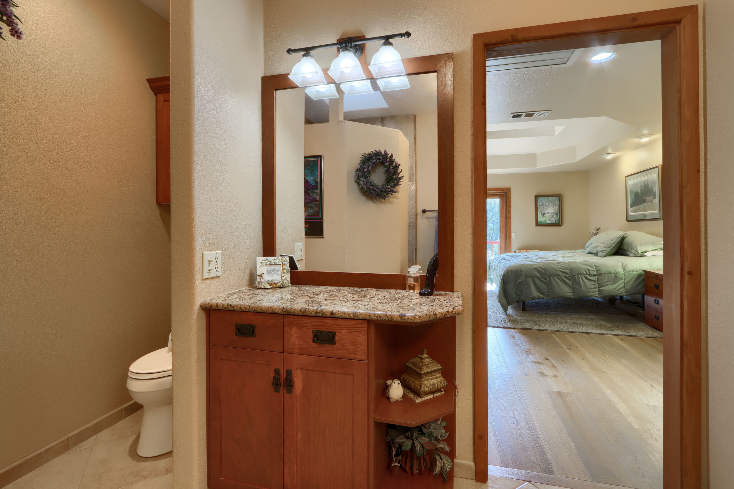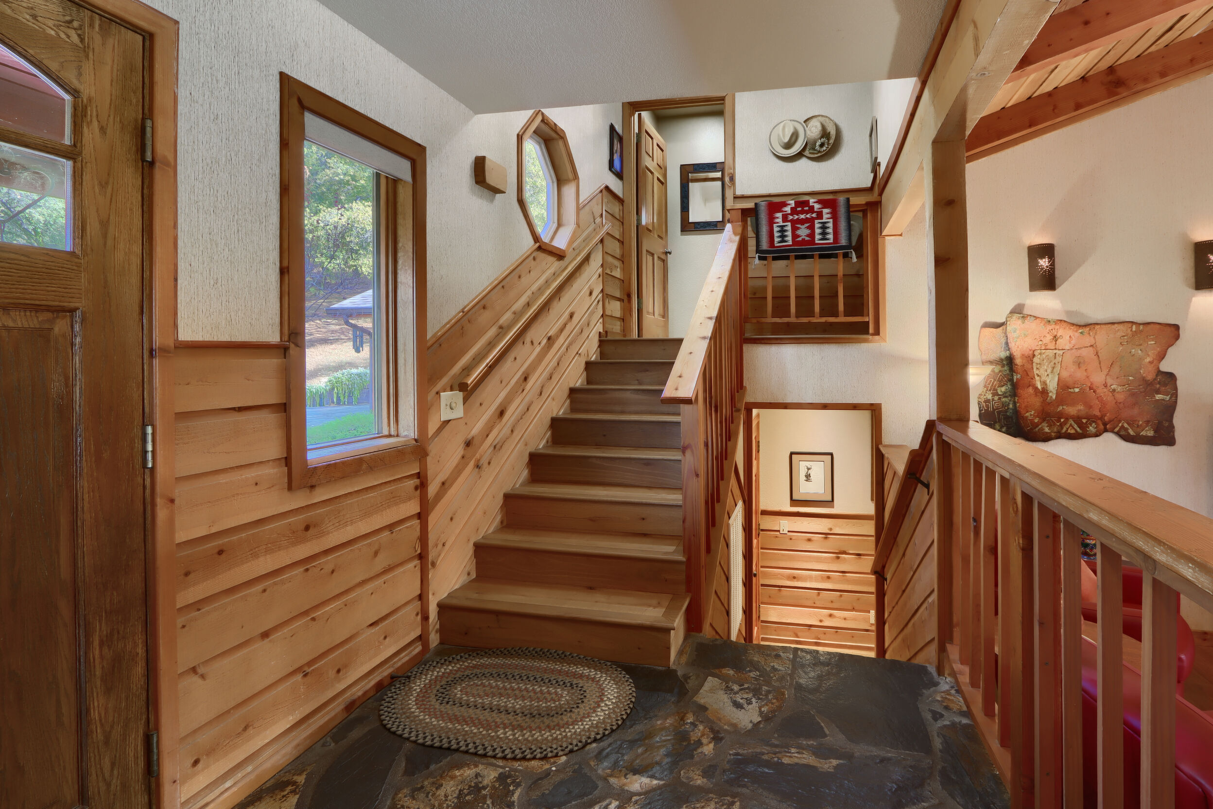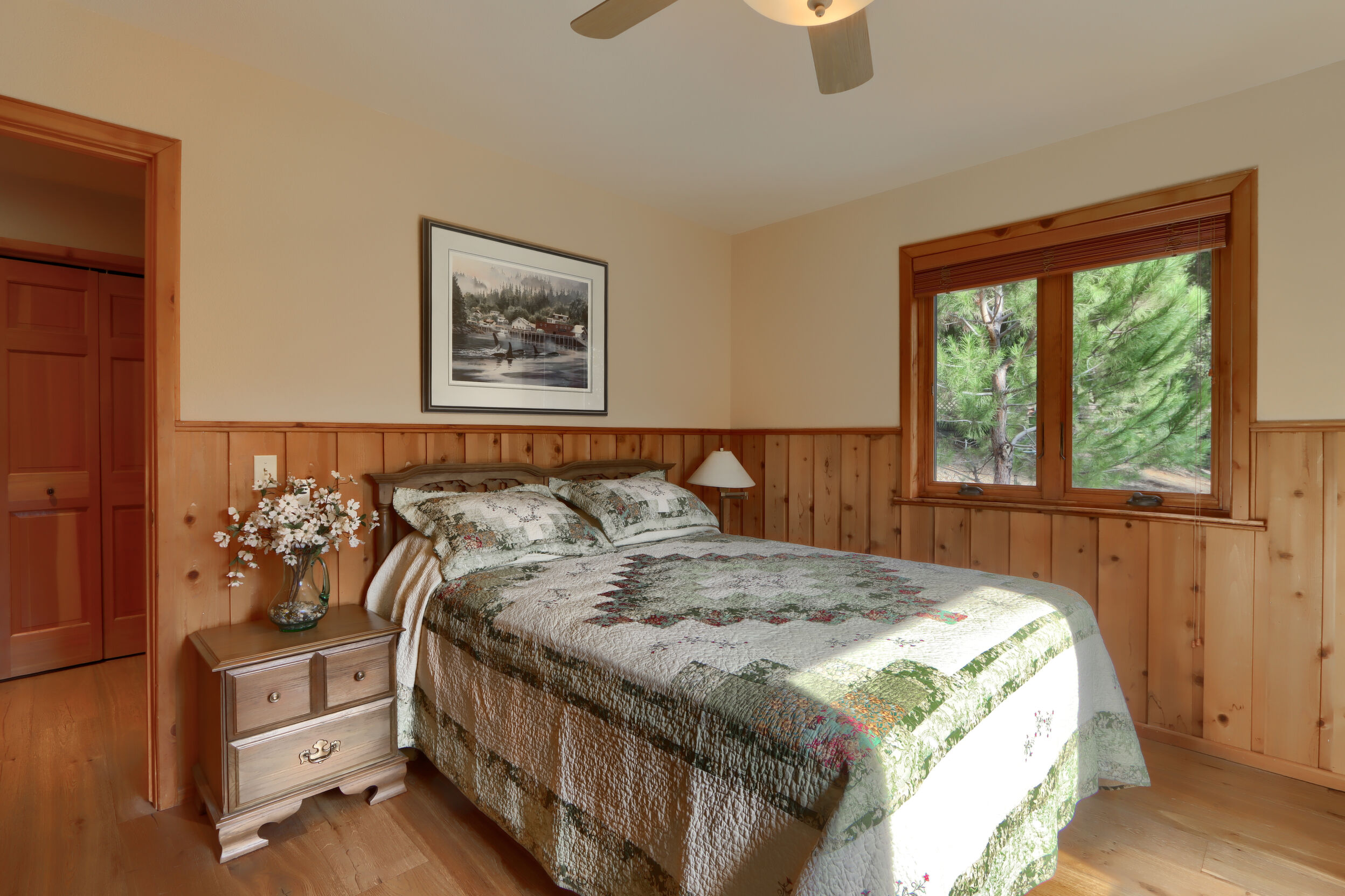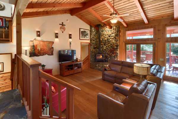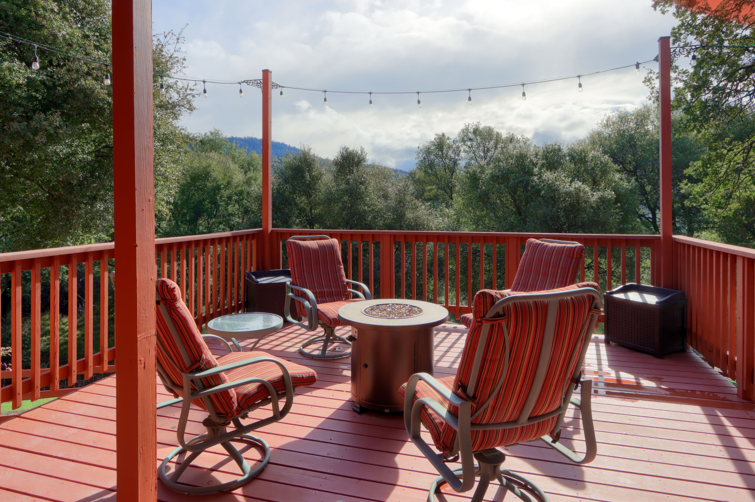 Peaceful Mountain Retreat with Views on 5.46 Acres Beautiful, well-cared for tri-level custom home with picturesque views, situated above the 3,000 ft elevation on a serene 5.46-acre park-like setting. This 3 bedroom, 2 bath, 2,210 sq. ft. home offers both comfort and character, with covered front and rear decks perfect for enjoying the outdoors in every season. Inside, you'll find an EPA-compliant freestanding woodstove on a raised rock hearth, a whole-house fan, and a zoned HVAC system for year-round efficiency and comfort. An automatic backup generator runs the entire home for added peace of mind.The kitchen features self-closing cabinet doors and drawers with easy pull-outs, granite countertops, a garden window, and quality name-brand appliances including a Bosch dishwasher and JennAir appliances. Engineered wood flooring flows through the main living areas, and a special slate entryway creates a warm welcome. Anderson double-pane windows bring in abundant natural light, and Anderson exterior doors add a quality finish throughout. The dining room and primary bedroom both feature large bay windows with built-in bench seating and extra storage underneath. The primary suite also enjoys its own private balcony overlooking the beautifully landscaped yard. The home showcases open-beam knotty pine high ceilings with cedar accents, along with special-cut cedar exterior siding for a distinctive mountain lodge feel. Outside, you'll appreciate the landscaped front yard, fenced back yard with lawn, and an asphalt driveway with approximately 15' x 60' space for RV parking. A newer composition roof (less than 3 years old), complete with rain gutters, adds to the home's value and low-maintenance appeal. Wildlife is a regular part of life here, this is true mountain living. All of this is conveniently located near Bass Lake, Yosemite National Park, and just minutes from downtown Oakhurst. Be sure to view the virtual tour, browse the still photos, and don't miss the blueprint with approximate measurements to fully appreciate all this property has to offer. Perfect for a Primary resident or Vacation Rental.