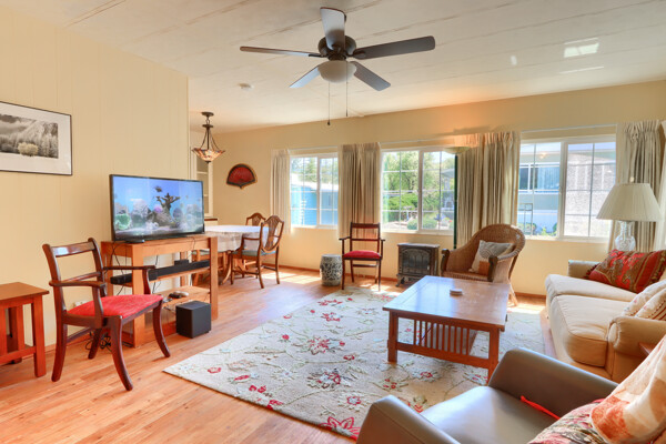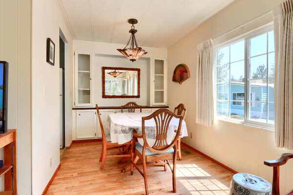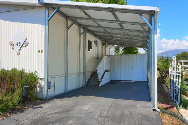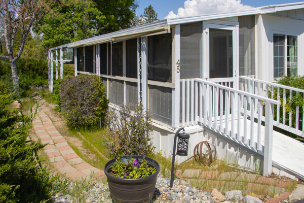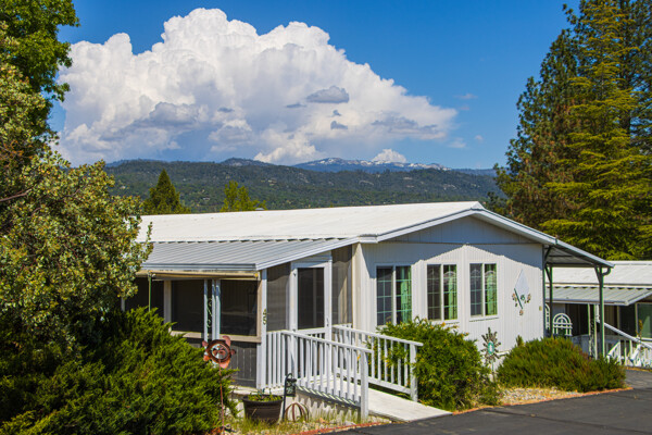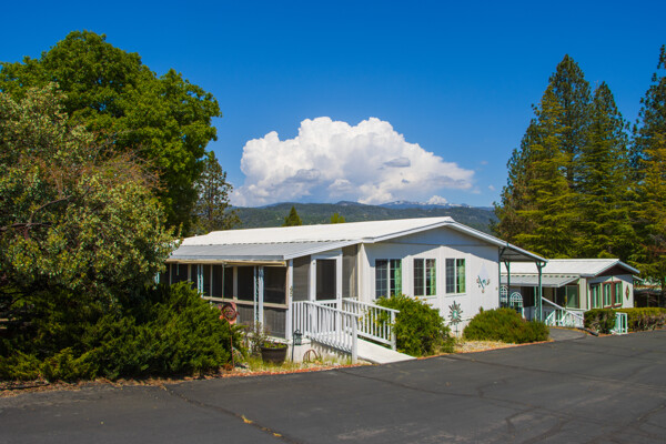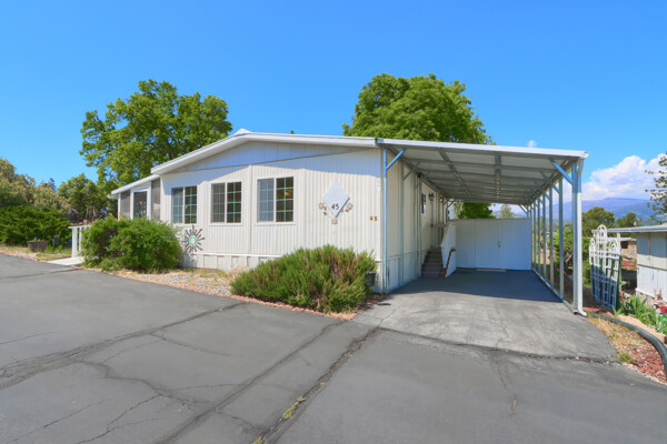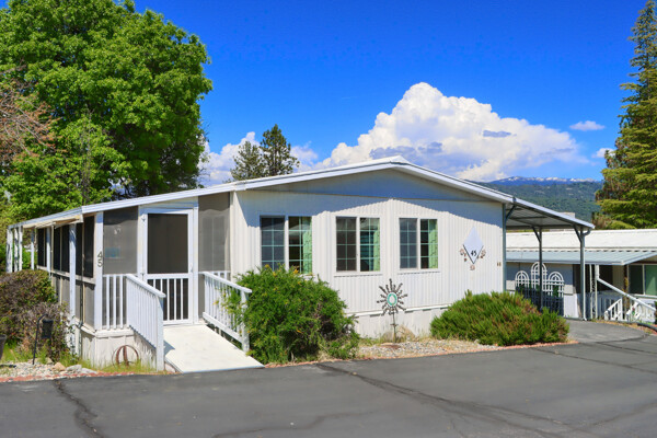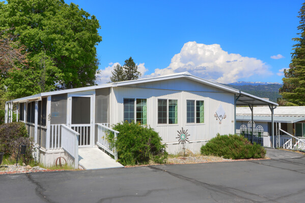 Beautiful location within the lovely Oakhurst Mobile Home Estates, Senior community. Ready to move into! Ah, inspiring views of the distant mountains. Light, bright and airy home. Wonderful easy floor plan including 2 bedrooms, 1.5 bathrooms, living room, dining room and kitchen. Very nice screened in porch off the living room. A lot of nice improvements within the last 3 years include, a new ramp leading to the screened in porch, plus a new screen door. The flooring in the screened room was replaced with 1 1/8-inch flooring plywood also. The roof was improved with elastomeric. The carport has been replaced with heavier steel and is not attached to the home. Under the carport the floor of the spacious shed has been replaced. Plus, the water heater, dishwasher and some light fixtures have been replaced or added. The Park itself is nicely maintained and is quite delightful. With large lawn areas, gorgeous trees, and an enchanting meandering creek to enjoy near the Clubhouse. Your furry animals will enjoy their special designated areas also. Nicely paved roads throughout. Located near all of Oakhurst’s town amenities, plus just about 16 miles from the southern entrance to Yosemite National Park and 15 minutes to the beautiful Bass Lake. Must see!