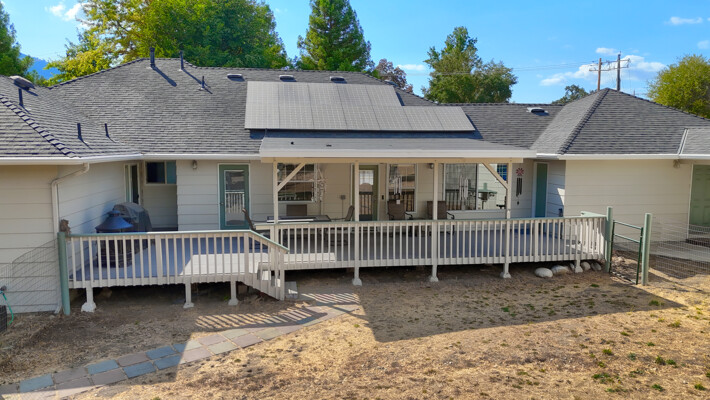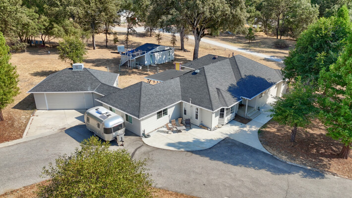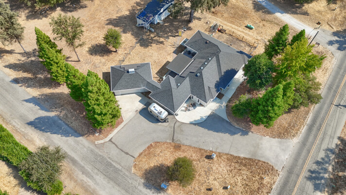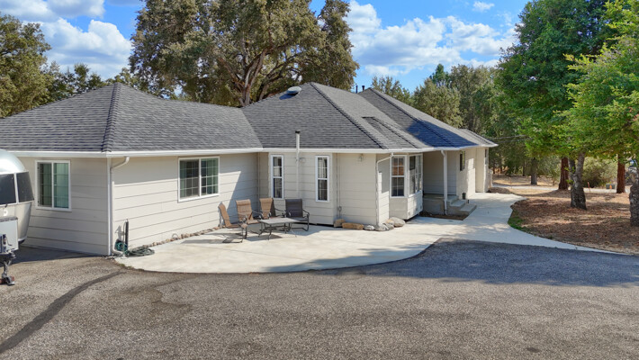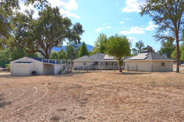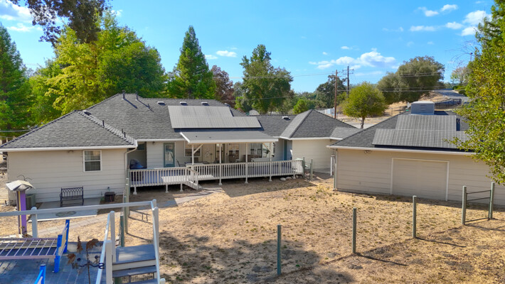 Spacious 4-Bedroom plus bonues room Home on 1.74 Acres - Versatile, Inviting, and Move-In ReadyDiscover comfort and versatility in this meticulously maintained 4-bedroom, 2.5-bath home offering 2,720 sq. ft. of living space on 1.74 usable acres. Enjoy privacy and convenience with a large finished detached garage, a craftsman's shop featuring drive-through doors, and a relaxing rooftop deck. The property is shaded by mature redwood and oak trees. Step out onto the covered Trex deck patioperfect for enjoying sunrises and hosting gatherings. The spacious fenced yard is ideal for livestock or gardening, while a peaceful labyrinth under the trees invites reflection.Sustainable living is at the forefront with owned solar panels, a backup battery,whole house fan,pellet stove, and comprehensive drainage systems. Inside, vaulted ceilings, crown molding, easy-care laminate flooring, Invincible H20 luxury water vinyl plank, and abundant light create an inviting ambiance. The updated kitchen boasts granite countertops, an island, and ample storage.Located within walking distance of schools, churches, shops, and restaurants, with easy access to Fresno, Madera, Bass Lake, and Yosemite National Park, this property blends rural serenity with urban convenience.