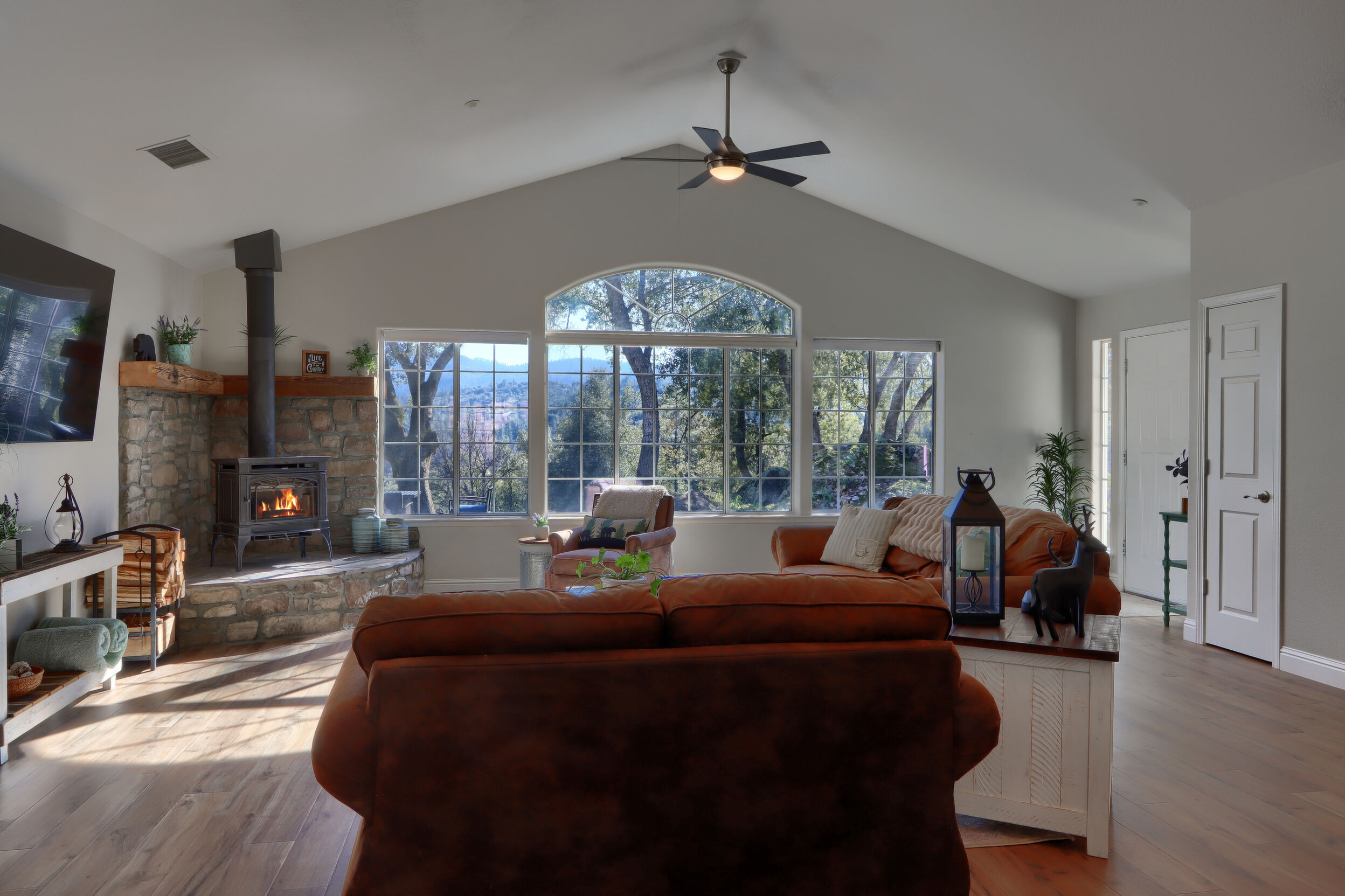 Ideally located close to town, schools and Hwy 41----and just minutes from Bass Lake and Yosemite National Park----this move-in ready home offers the perfect blend of comfort, safety, and mountain living. Breathtaking mountain views can be enjoyed from the living areas, bedrooms, creating a serene backdrop for everyday life or unforgettable vacation stays. Set on a fully fenced 1-acre parcel, the landscaped backyard is thoughtfully designed for low-maintenance living, featuring easy-care artificial turf that stays green year-round----perfect for pets, kids, and entertaining. A durable tile roof adds long-term value and peace of mind, while a freestanding, EPA-compliant woodstove provides efficient warmth and cozy ambiance during cooler seasons. The home offers four bedrooms, including a large primary retreat. One bedroom can easily serve as a home office, and the layout comfortably accomodates up to five beds----making it an excellent option for vacation rental use. Additional features include a full-house water purification system, a two-car garage, and a location with a Firewise community for added safety and security. This exceptional property delivers privacy, functionality, and true mountain lifestyle living----without sacrificing convenience. Hot tub, shed and furniture are excluded from the purchse price; however, the seller is open to negotiating their inclusion. Schedule today a special showing and be sure and view the virtual tour.