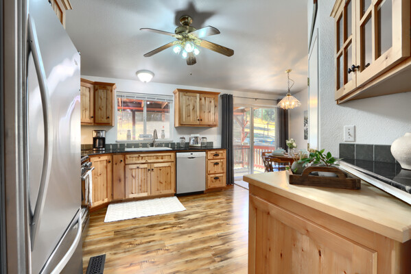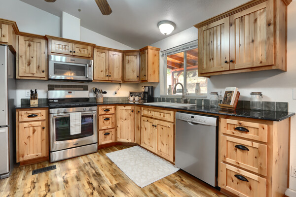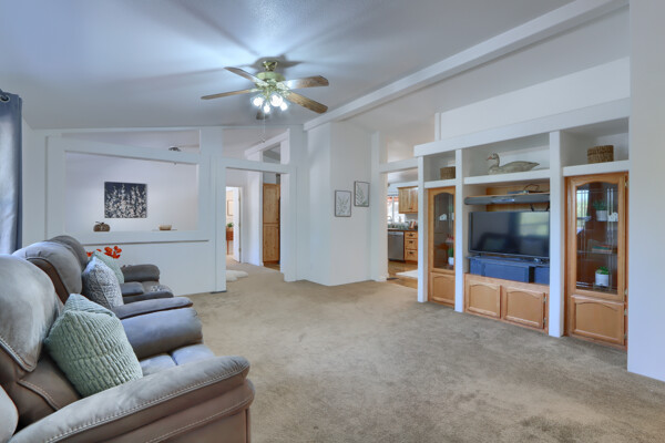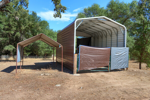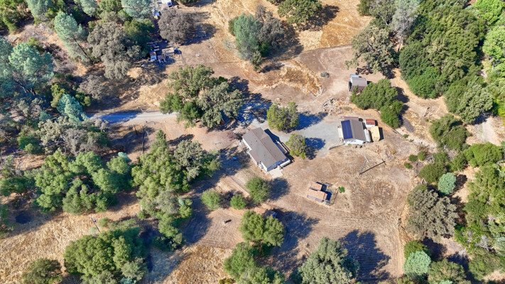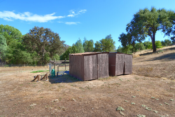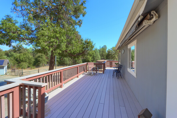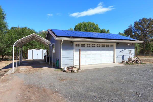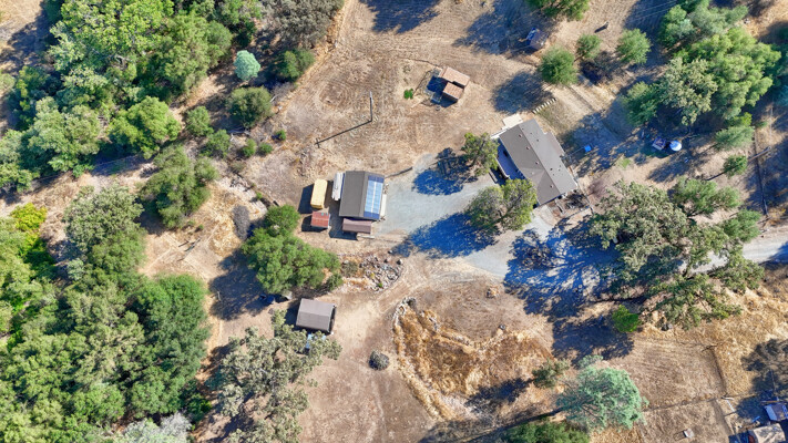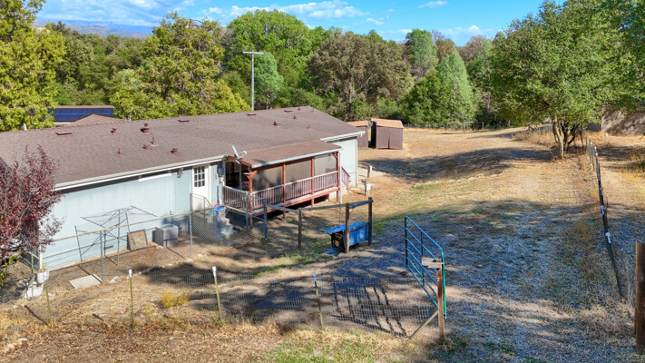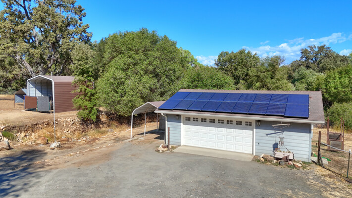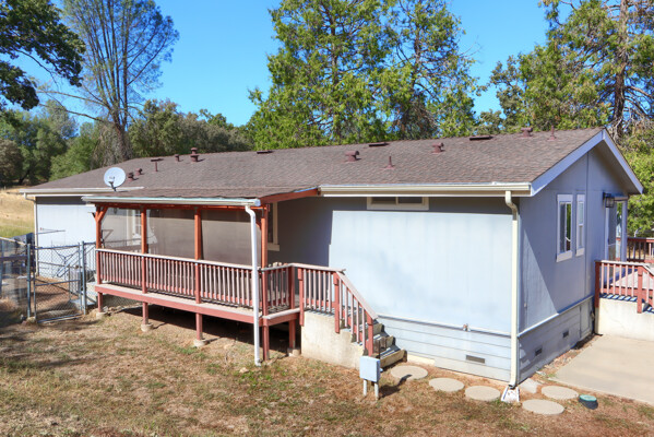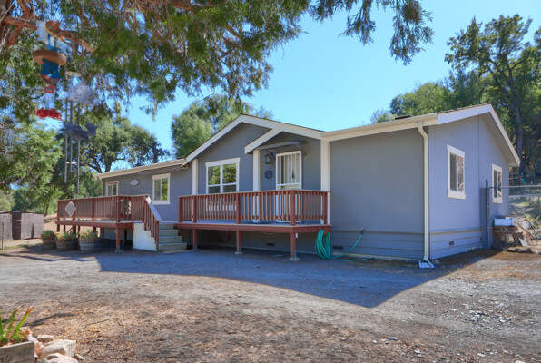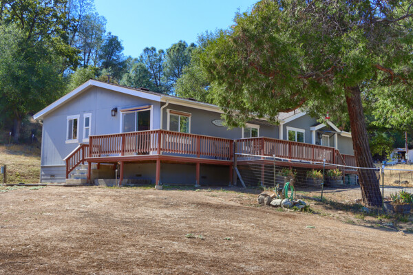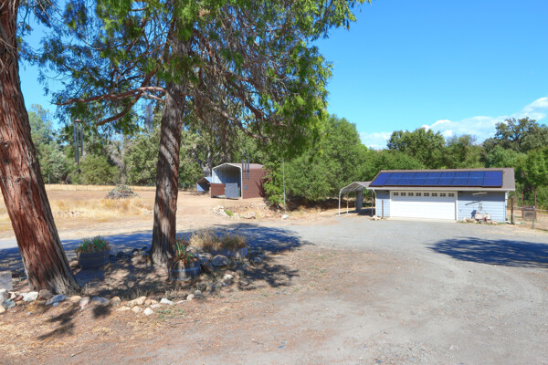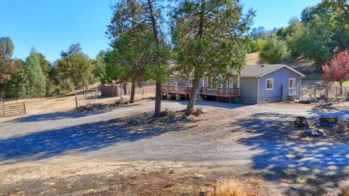 Country Living that is on 5+/- fully fenced and cross-fenced acres, this inviting 3-bedroom, 2-bath manufactured home (built in 2003+/-) offers 1,456 sq. ft. of living space with plenty of room for animals, hobbies, and storage. The property includes a detached 720 sq. ft. garage/workshop, 18+/- solar panels for energy efficiency, and a 21' x 18' x 13' RV covered RV building plus a 20'+/- metal container. Several outbuildings w/horse corrals make this property ideal for equestrian or 4-H projects. Inside, the home features an open floor plan and an updated kitchen with custom cabinetry, granite-style countertops, and a nice eat-in area in the kitchen. The primary bedroom offers his-and-hers walk-in closets, an ensuite bath, and private access to decking that wraps around two sides of the home. Two guest bedrooms feature built-in cabinet drawers, and the guest bath has been upgraded with a modern vanity and tub/shower. Outdoor living is just as appealing, with Aqua Fria Creek running along the property and chain-link fencing for pets. Enjoy the convenience of multiple storage options, a workshop for projects, and plenty of room for boats, RVs, and recreational gear. This property is just a short drive to Yosemite National Park and several popular lakes-perfect for summer boating, fishing, and family fun. Whether you're looking for a full-time residence or a country retreat, this turn-key property delivers the best of Sierra foothill living!