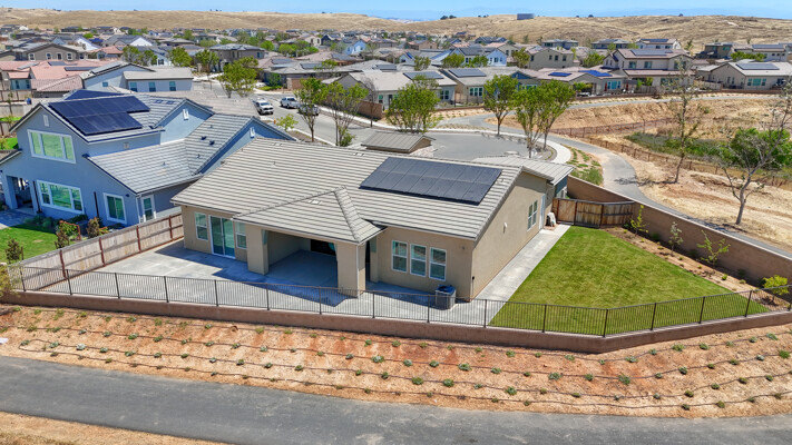 Never been lived in custom home is Tesoro Viejo. Poplar Makenna plan 3 bedrooms 3.5 baths with a mother-in law set up with it own private suite including refrigerator and micro wave. Home features many upgrades, includong a premiun corner lot with no rear neighbors, upgraded kitchen with large granite eating bar, cabinets with glass in doors, gas cooktop, under cabinet lighting extra wide sliding doors in living room, surround sound thru out the home, alarm system, fully furnished home with top of the line furnishings,custom window blinds ,landscaped front and back, lots of extra custom concrete,paid for solar end of road location, Tesoro Viejo is a new community with its own school, police and fire, clubhouse, pool and hiking trails. This is a must see home