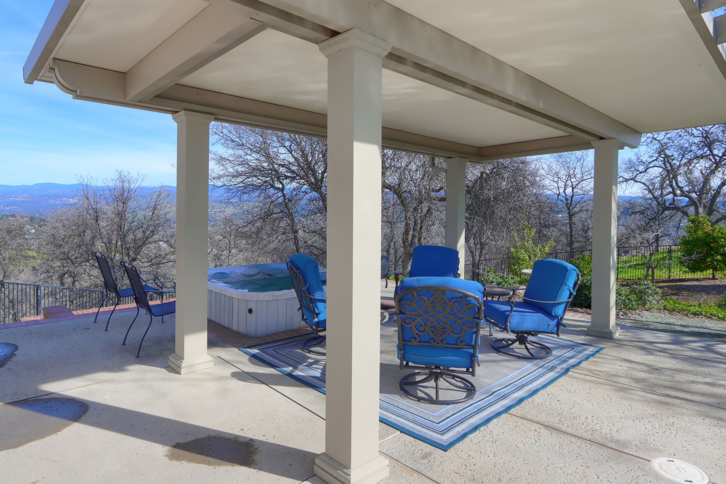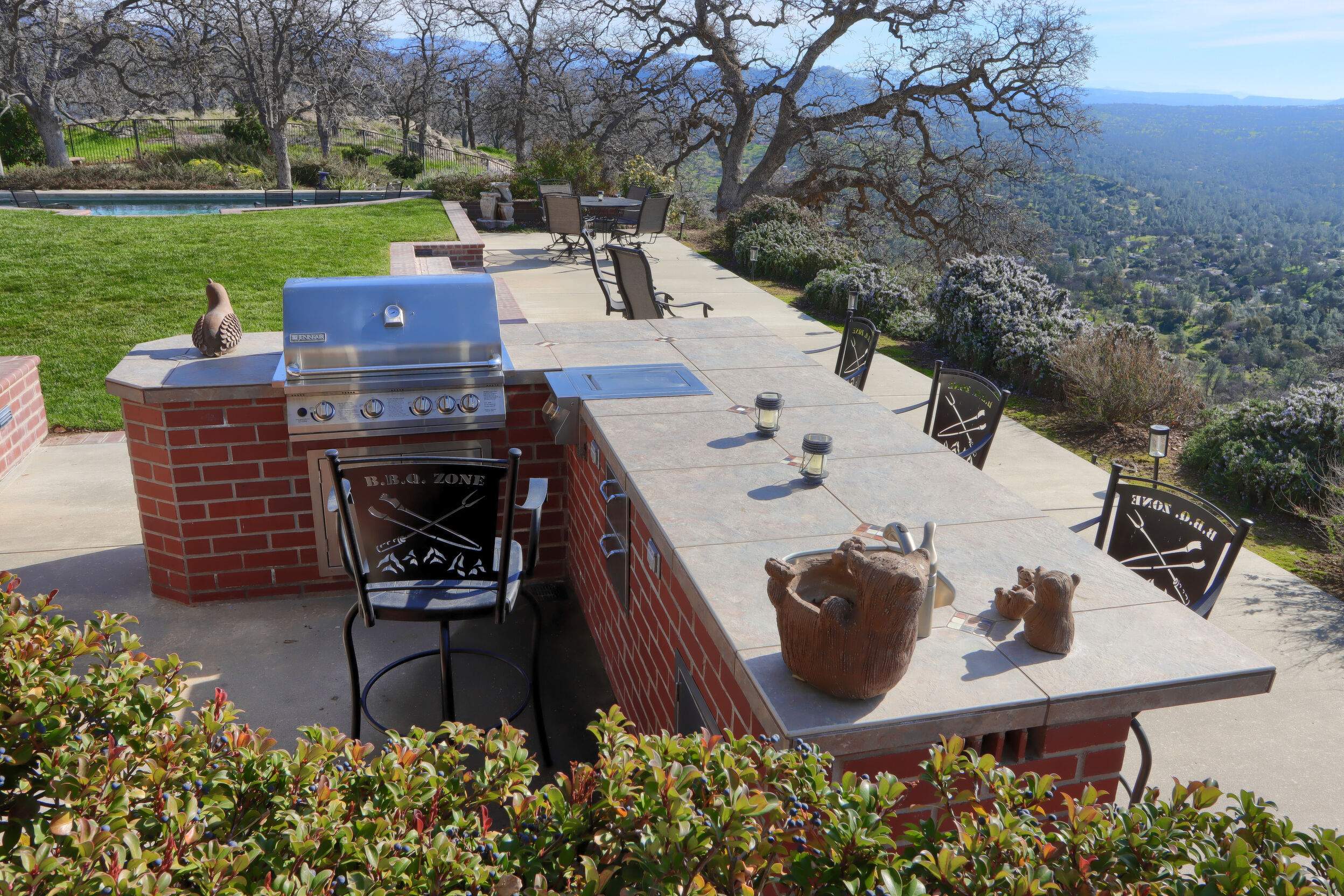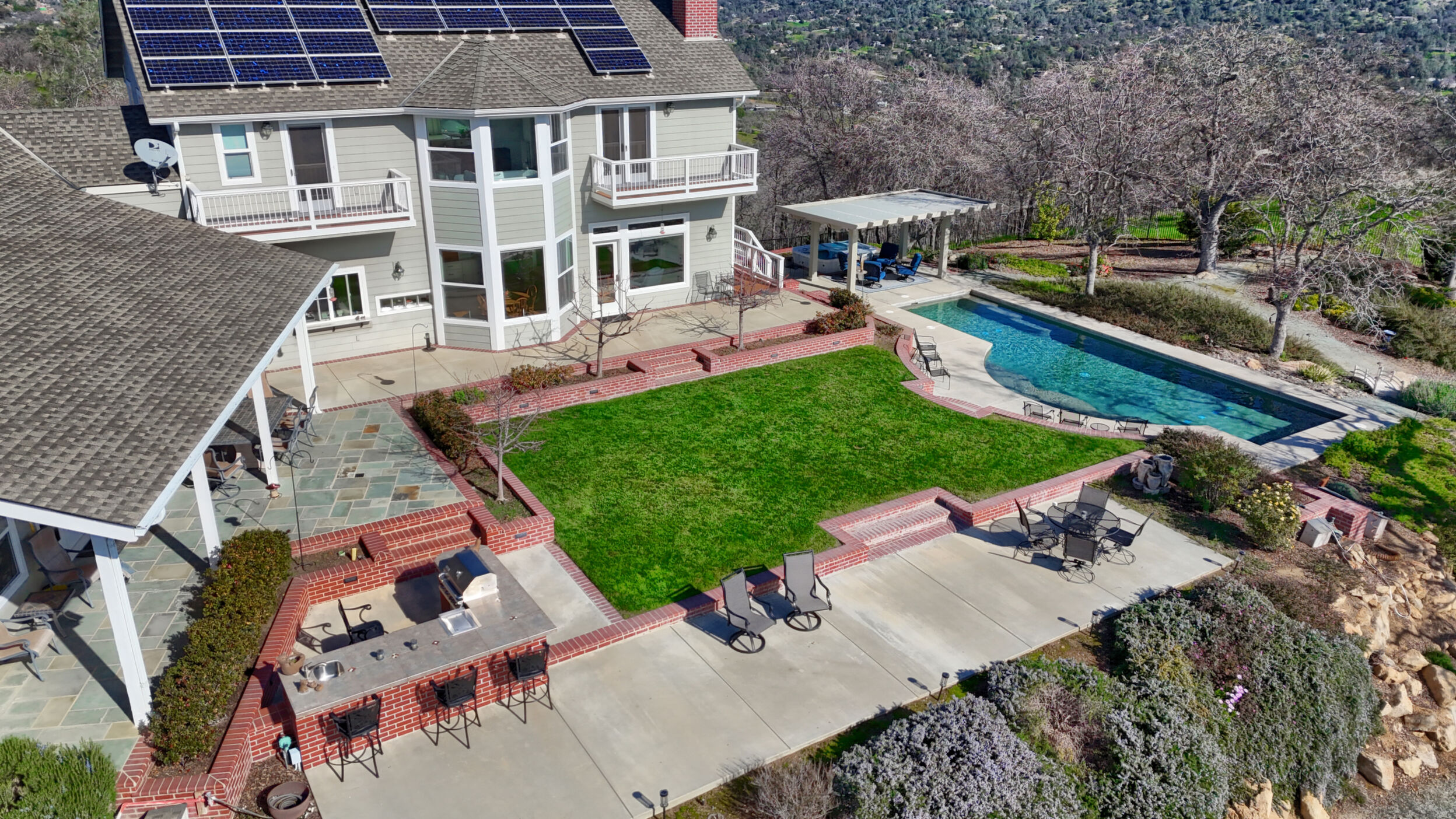 CUSTOM HOME PERCHED effectively capturing breathtaking panoramic views, this beautifully appointed 3-bedroom, 4-bath residence offers 3,873 Sq. Ft of light-filled living space designed for comfort and entertaining. A welcoming front porch sets the tone, while expansive windows throughout frame stunning hillside and valley vistas. The home features generous living and dining areas, a well-appointed kitchen, and seamless indoor-outdoor flow. Granite counter tops W/ various areas of storage, walk-in pantry, exercise room plus large attic access. Custom lighting accentuates all the well placed built-ins thought out this well appointed home. The resort-style pool, custom built-in BBQ, ample room for family and friends is perfect for relaxing or hosting gatherings while soaking in the scenery. Bring your green thumb for the garden area and as well as the several fruit trees to savor. Thoughtfully designed with ample space, charm, and privacy, this exceptional property offers a rare opportunity to enjoy tranquil living with unforgettable views. Call your Realtor for your private showing.