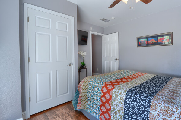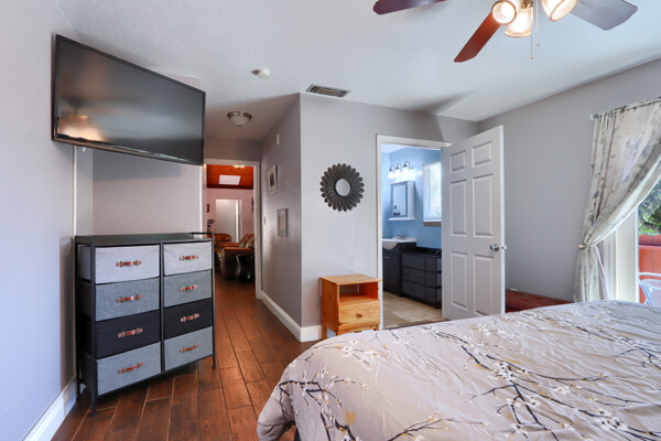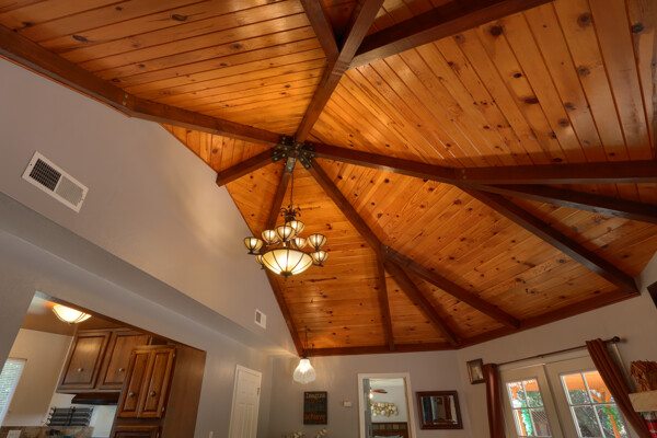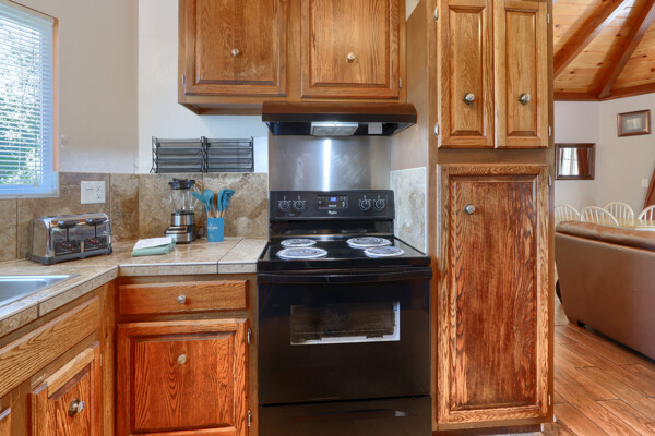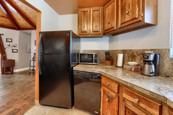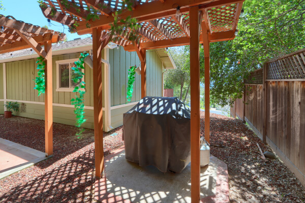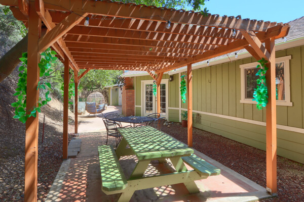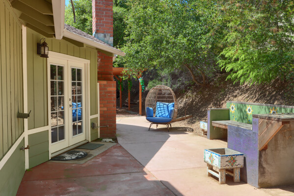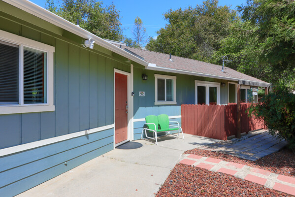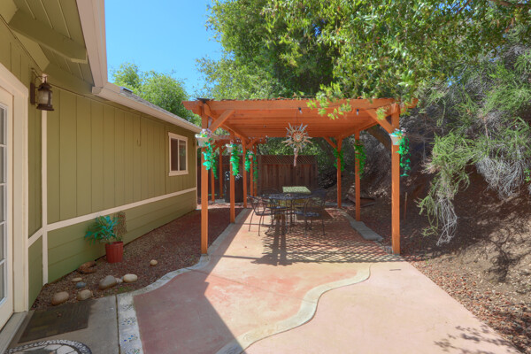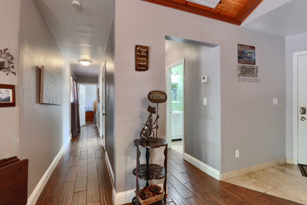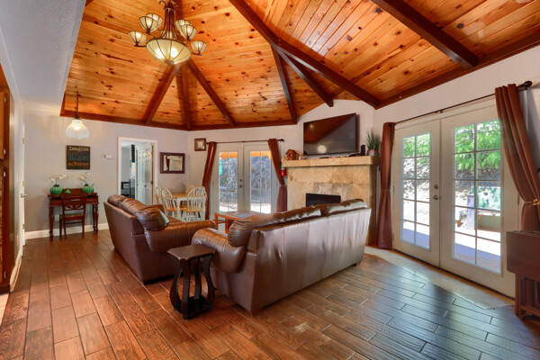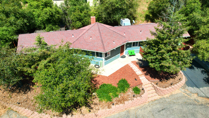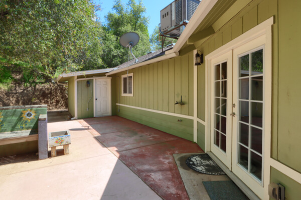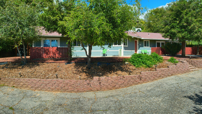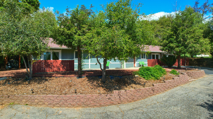 Custom 3 bedroom, 2 bath remodeled charmer! A successful vacation rental is popular with being close to Bass Lake and Yosemite National Park! The living room is quite unique with a gorgeous tongue 'n groove beamed ceiling, beautiful fireplace and 2 sets of french doors to patio and yard. Lots of cabinets and great tiled counter tops and backsplash and electric range and dishwasher await you in the kitchen. All 3 bedrooms have private sliding glass doors to their own patio areas. The primary bathroom has a beautiful tiled walk-in shower. The interior of this home has been lovingly remodeled. The patio is huge with custom hand painted benches, covered sitting area and covered barbecue area. Located on . 32+/- acre the yard has mature landscaping, trees and the front has an open concrete porch to enjoy the views!