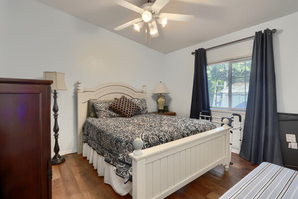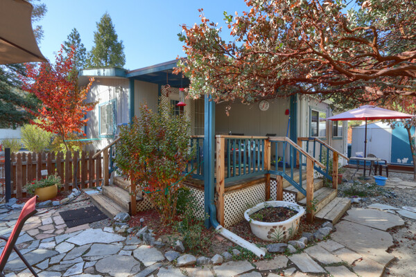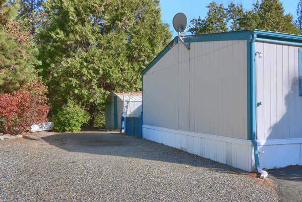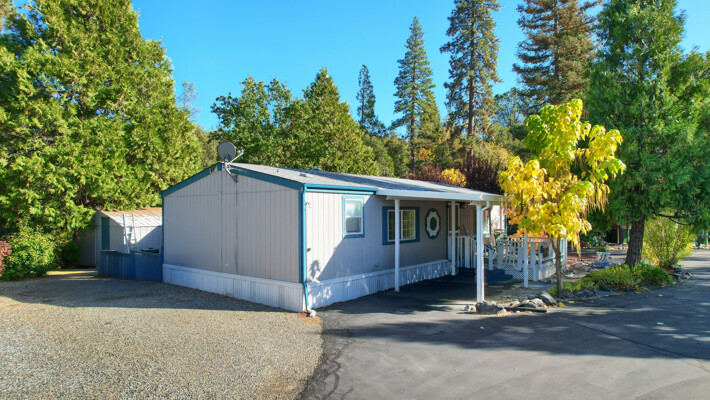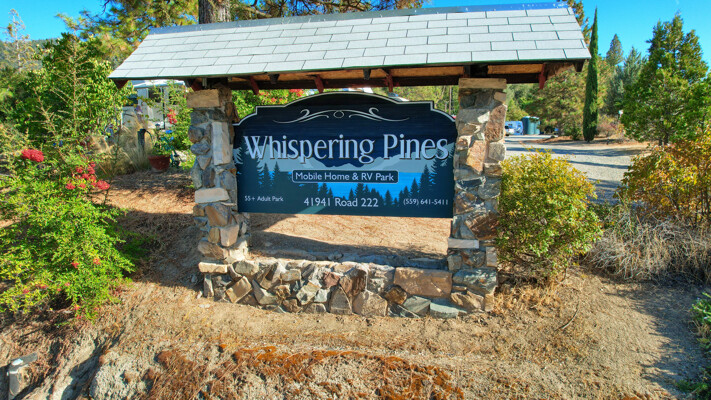 Lovely location for this well maintained turnkey 2 bedroom, 2 bath mobile home in Whispering Pines Park with an enclosed sun room that could easily be a 3rd bedroom! This home has a peaceful setting with a nice front porch to look out at your front garden while enjoying the cooler temperatures among tall Pine trees and just minutes to Bass Lake and Yosemite National Park's south gate! The main living area has easy flow from the living room to the kitchen and dining area. The kitchen is a nice size with counter space and extra storage cabinets, a dishwasher, propane range and range hood. Front the dining area it's just steps to the back porch to enjoy barbecues or relaxing on the patio and yard that is fenced! The primary bedroom offers 2 side by side closets, a ceiling fan and an adjoining bathroom with shower and additional linen closet/storage space. The guest bedroom, guest bath, laundry room and enclosed room (currently used as a 3rd bedroom) with more storage cabinet space are conveniently located. The side yard offers a smaller patio area and a storage shed. There is an attached carport and additional parking space also. Come and see this beautifully cared for home in a great location!