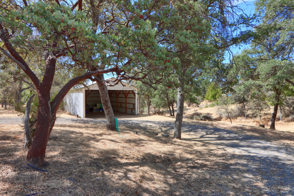 Wonderful Sky Ranch offering! This 3 bedroom, 2 bath ranch style home has new laminate flooring, living room with fireplace insert and family room with free standing wood stove and a huge shop with an excellent location close to Yosemite National Park and Bass Lake! From the time you enter the gated driveway, you will enjoy the beautiful trees and gentle 1.22+/- acres of land. When you get to this special home you'll notice a favorite spot in the front yard! A wonderful deck/patio area is ideal to enjoy the peaceful view with a glass of wine and good company! The floor plan is spacious with the kitchen on the right as you walk in for easy grocery delivering and the heart of the home is a large living room just steps away. Lovely large windows to take in the views and let the natural light in, sliding glass door to the back covered patio, woodstove insert with brick hearth, garage access and so much room. The dining area brings you into the kitchen area with a built-in hutch cabinet and matching informal dining table with built-in bench seats. The kitchen has built-in appliances including a dishwasher, electric range, range hood with tile counter tops and extra cabinet space. The family room is is just off the dining area through a special storage/pantry room for your additional kitchen gadgets or bake ware. The family room has track lighting, a wood stove, sliding glass door to the outside side patio and would make a great space for the kids' video games, a home theater set-up for family movie night or a huge craft room. 2 guest bedrooms with a full guest bathroom with upgraded double sink vanity and a shower/bathtub are down the hallway that leads to the primary bedroom with upgraded vanity and a shower. The back yard has a covered patio area that is great for barbecues. The attached 2 car garage has built-in cabinets and shelving. But if that isn't enough garage space make sure to check out the detached workshop that is huge and waiting for your favorite hobby, classic car, home business. The possibilities are endless with this large space. Being so close to Yosemite and Bass Lake make it a location to live year 'round or a great investment if you want an Air BnB, VRBO or monthly rental! Come and see this lovely property today!