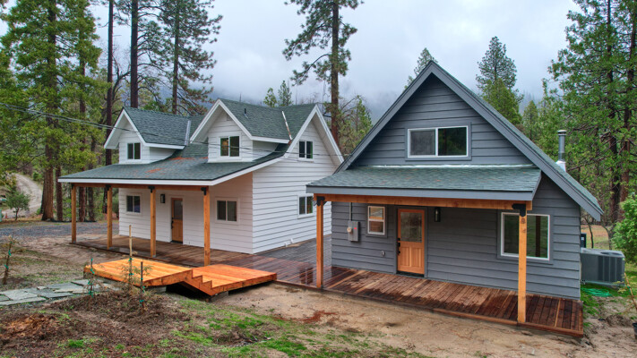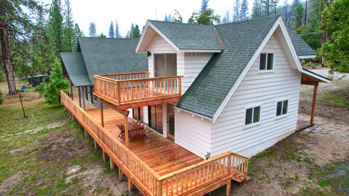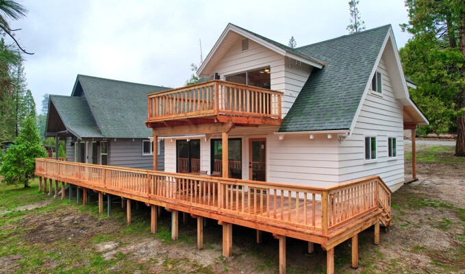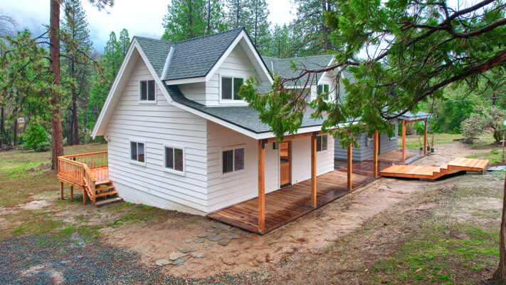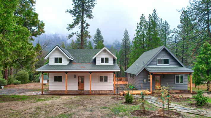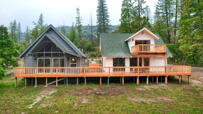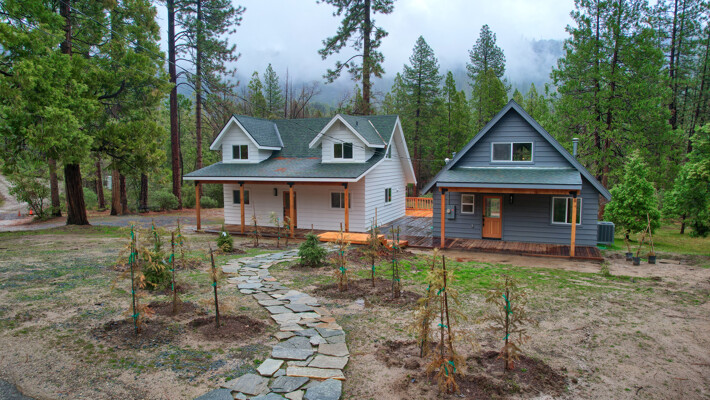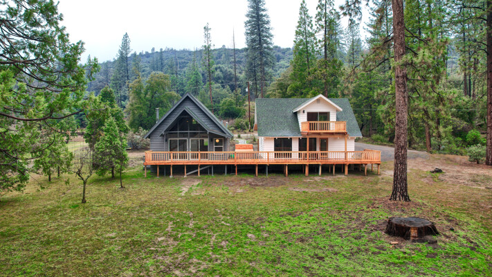 Amazing location for 2 wonderful cabin homes with 160 ft. of stunning Lewis Creek frontage and lots of Pine & Cedar trees! It's an ideal location for 2 Air BnBs! Yosemite National Park's gate is 15 minutes away and Bass Lake is just 10 minutes with Oakhurst even closer for shopping. Easy drive to Fresno Airport for guests flying in. The main home (white) is 2 bedrooms, 2 baths with a great bonus room area with a balcony. The 2nd home (gray) is 1 bedroom, 1 bath with a loft. Both homes have been beautifully remodeled with custom made hickory, mahogany and pine wood cabinets throughout, stunning windows bring those breathtaking views inside! Each home has decking to enjoy listening to Lewis Creek running by and the gentle privately owned 1.19+/- acre property offers a private well, peaceful surroundings and cooler summer temperatures! Lewis Creek is great for fishing or enjoying the rushing water sounds from both homes. The Cedar Valley subdivision has a great location for year 'round fun being just a short distance to adventures in Yosemite or Bass Lake and there is even a community pond, great hiking trails and more! Your choice to use these as Air BnBs or as a multi-family retreat. Come and visit these gorgeous homes and notice the details in black slate-mesquite charcoal flagstone and carpeted flooring, wood work, lighting, one home even has mini splits for heat/AC and more! They are definitely must sees!