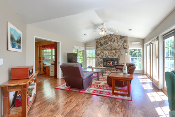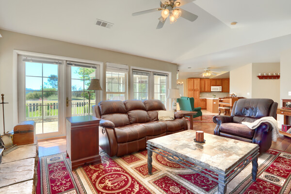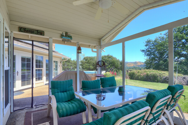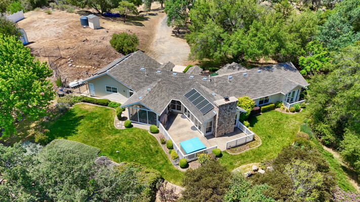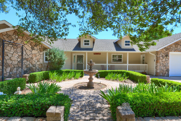 Nestled on 7.8 stunning acres in the Sierra foothills, this custom-built 1,840 sq ft retreat is being offered for the first time by its original owner. Designed with care in 2001 and meticulously maintained ever since, the home features two bedrooms, a versatile den with a Murphy bed, and 2.5 baths. This private retreat combines comfort, functionality, and breathtaking natural surroundings. From the moment you arrive, the courtyard entry and tasteful landscaping creates a warm, welcoming feel. Step inside to a light-filled interior featuring a magnificent fireplace made of locally quarried slate and numerous French doors that open to the outdoors, perfect for embracing the indoor-outdoor lifestyle. The spacious living areas flow effortlessly into a screened-in patio, ideal for relaxing or entertaining, and a private hot tub for stargazing nights. The generous primary suite offers a tranquil escape with a large bathroom, abundant closet space, and direct access to the outdoors. Additional highlights include a fully fenced yard to keep pets safe and wildlife out, lush lawn, picturesque stone walls bordering the property, orchard, chicken coop and RV parking complete with hookups and its own septic system. This is a rare opportunity to own a thoughtfully designed, well-maintained home in one of the Sierra foothills’ most peaceful settings—ready to welcome its next chapter.