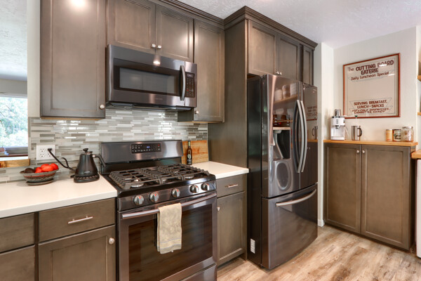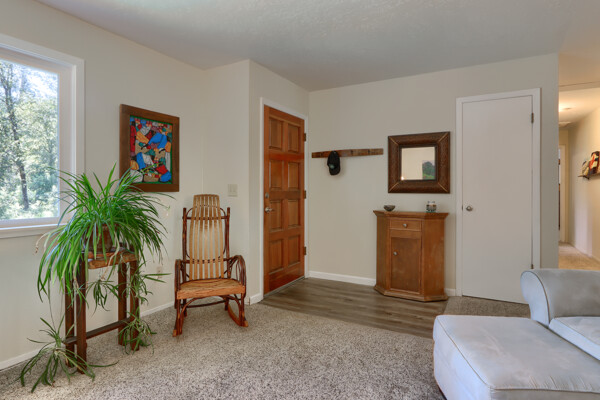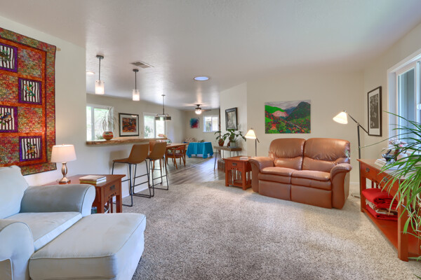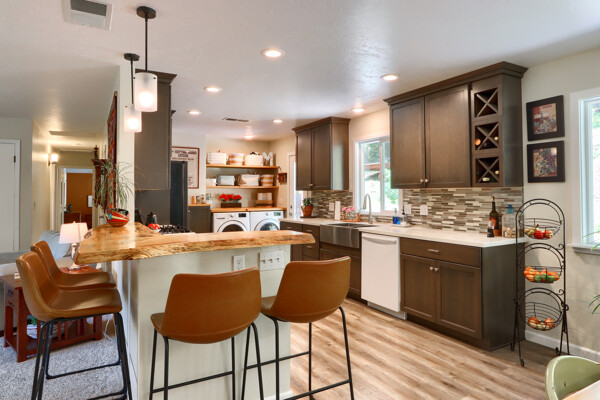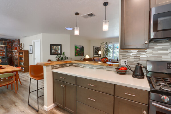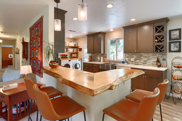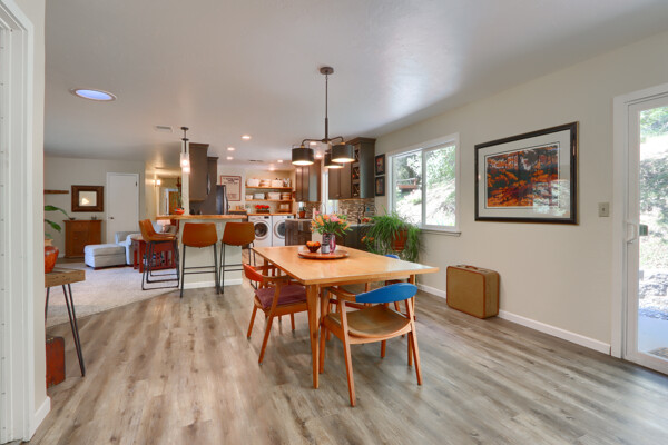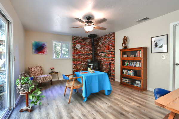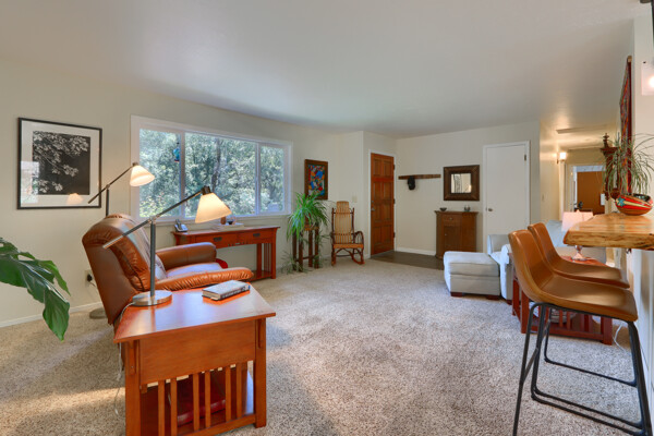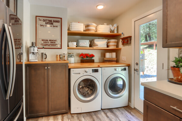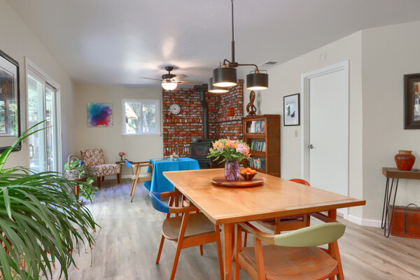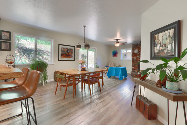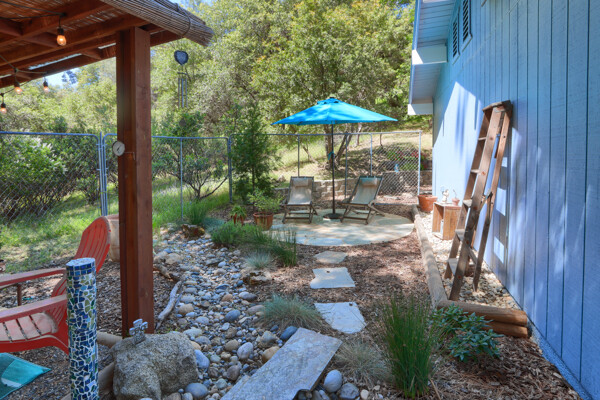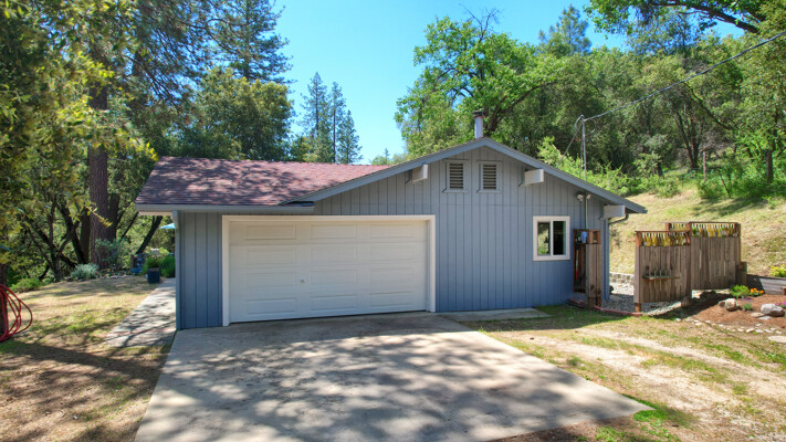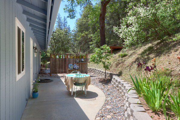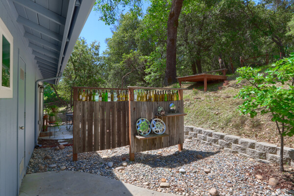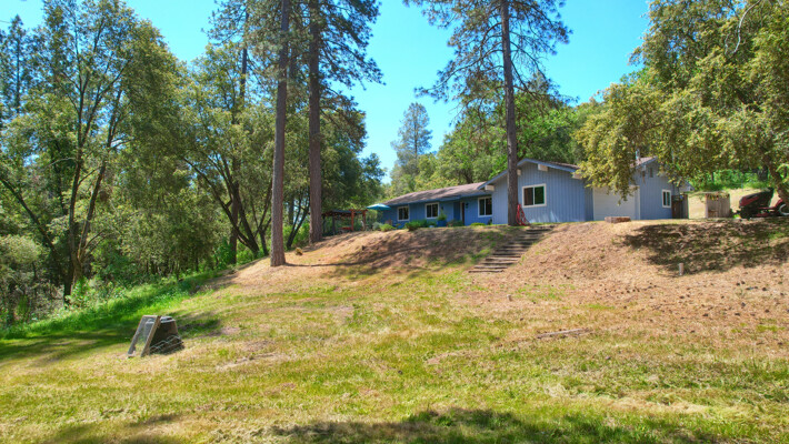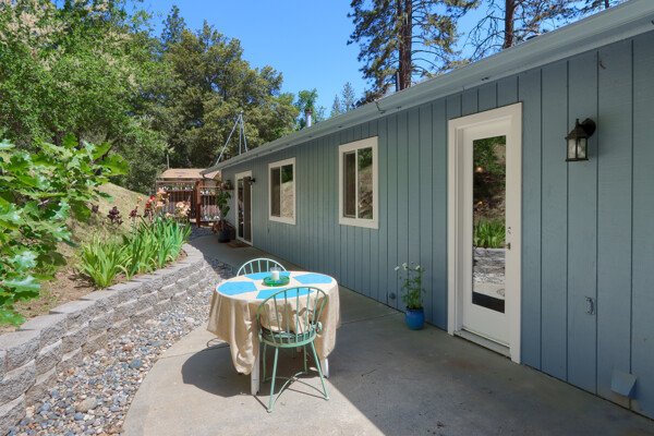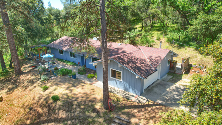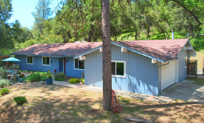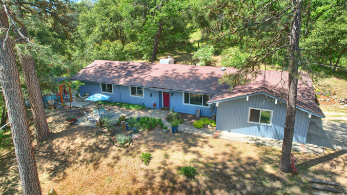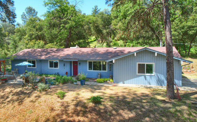 What a treasure tucked on 2.46+/- beautiful acres! This remodeled 3 bedroom, 2 bath home has a large front patio to relax and enjoy the sounds of nature. An open floor plan includes a spacious living area, dining/family area with a central kitchen. The family room had a woodstove and a slider to the back patio. The large kitchen has a custom breakfast bar top, granite counter tops, propane range, dishwasher, tile backsplash recessed and drop lighting with the laundry area conveniently close and the back door. The hallway leads to 2 guest bedrooms, guest bath with beautiful tiled vanity and a bathtub. The primary bedroom has a private slider to the back patio, ceiling fan, walk-in closet, open vanity area with privacy toilet and shower. Several charming patio areas offer a different view from each. An attached 2 car garage has easy access to the interior with access through the family room. The beautiful property has towering Pines, large Oaks, a seasonal creek and distant mountain views. The owners' lovingly maintained and remodeled this beauty and now it can be yours! Add this gem of a home to your viewing list today!