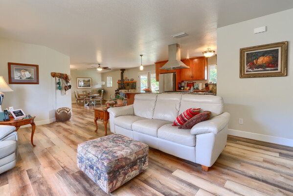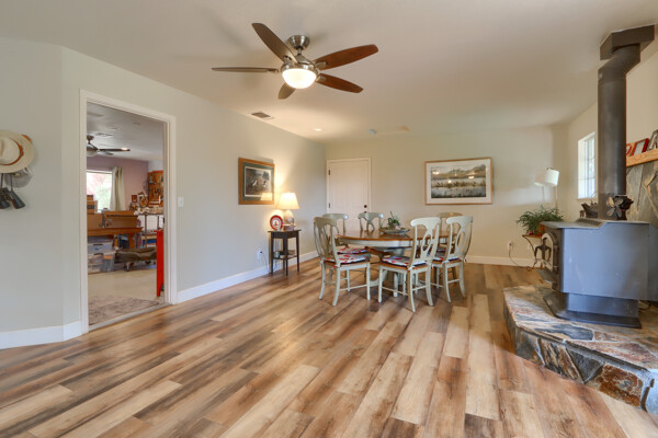 Discover serene country living on this spacious Morningstar property! This inviting 3-bedroom, 2-bath home offers open-concept living with an additional bonus room, perfect for flexible use. Set on over 6 acres, the land is fully fenced and cross-fenced, ideal for horses or livestock, and includes a three-stall barn. With owned solar, enjoy energy efficiency and savings year-round. The backyard is perfect for entertaining, with plenty of space to relax and unwind, plus mature fruit trees for fresh seasonal treats. This property offers the ideal blend of comfort, functionality, and outdoor enjoyment!