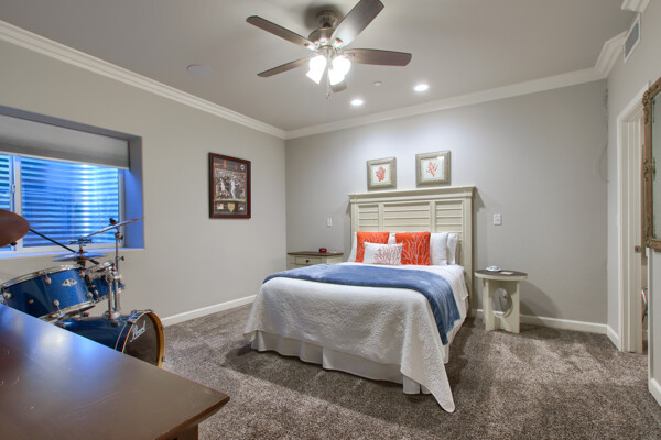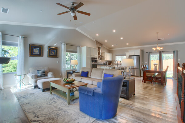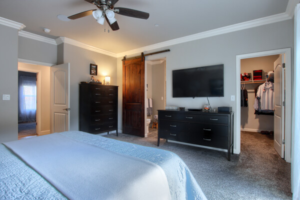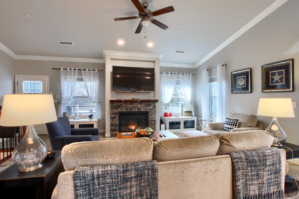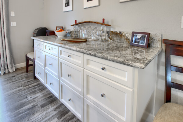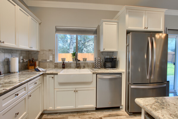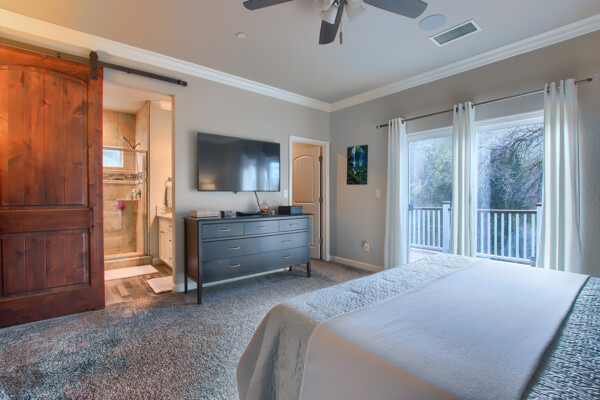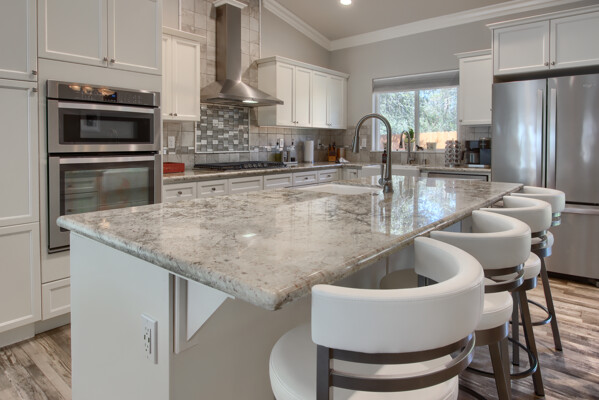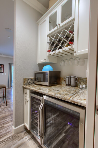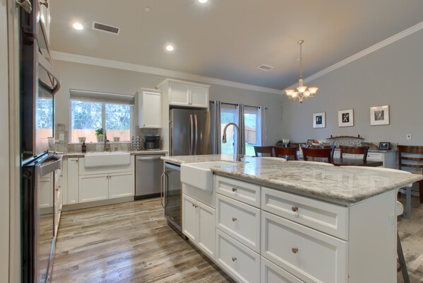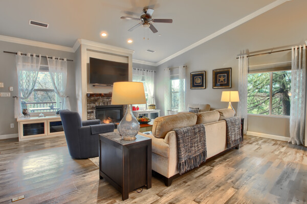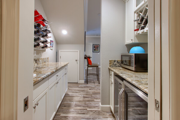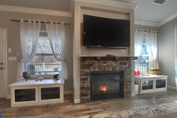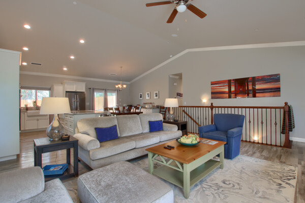 Gorgeous custom built home with beautiful views of the community common area pond! This unique home offers an upstairs main living area with spacious vaulted ceilings and the living room has a built-in stone propane fireplace and 2 custom built-in window benches so you can enjoy the views from all of the windows. The large bright kitchen with custom tile work and granite counters has matching built-in appliances. In the large center island there is a 2nd farm sink for extra prep and cleaning space along with a large beverage center built-in. The dining area includes a matching cabinet to the kitchen with granite top that is a great for serving holiday meals. There is a half bath, 2 primary bedrooms with adjoining bathrooms and 500+/- ft. of deck to relax and enjoy the pond and mountains that complete the upper level. The lower level has a great family room with a competition pool table, recessed lighting, wet bar, a covered patio area, another primary bedroom with adjoining bathroom and an extra deep 4 car garage that is wired for EV charging. Each of the 3 bedrooms offers lots of storage space with walk-in closets, ceiling fans and private bathrooms with tiled showers. Hardwired security system and wired for sound. The fenced back yard offers a large bricked patio with electric or propane hookups ready for a spa. This sale includes the refrigerator, washer, dryer, 2 beverage coolers, a wine cooler and a wine rack. This dreamy home is located close to town for shopping and medical and in a great community!