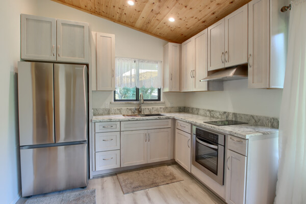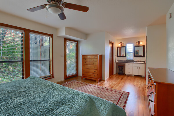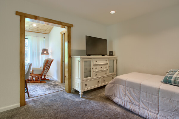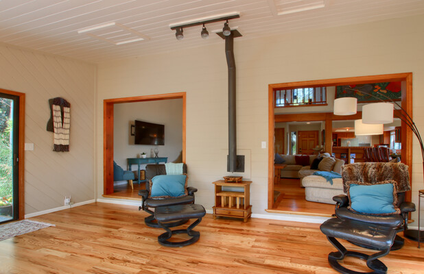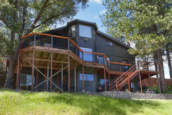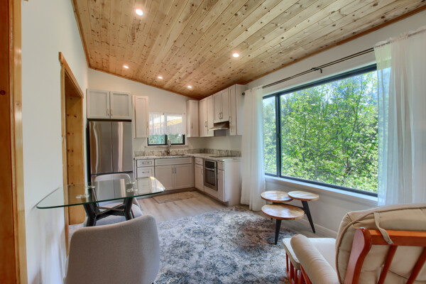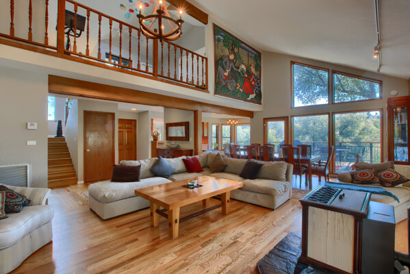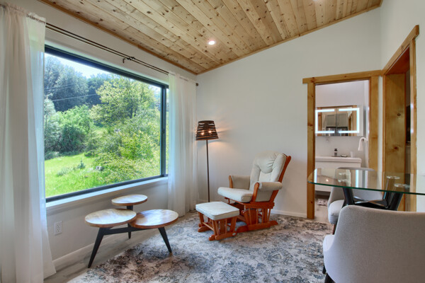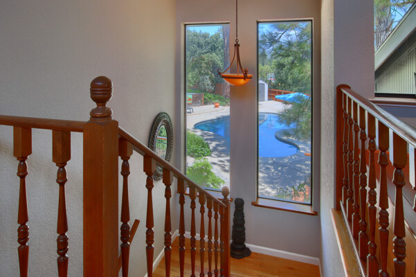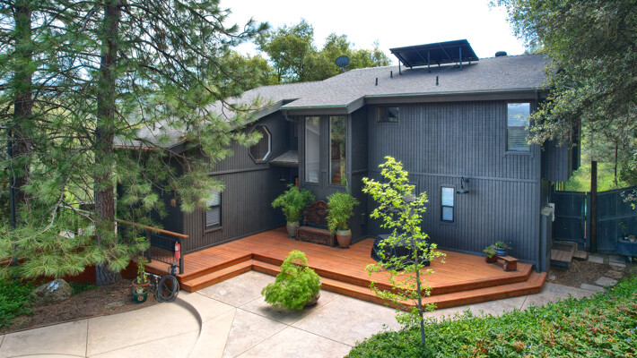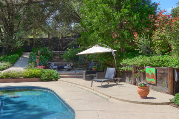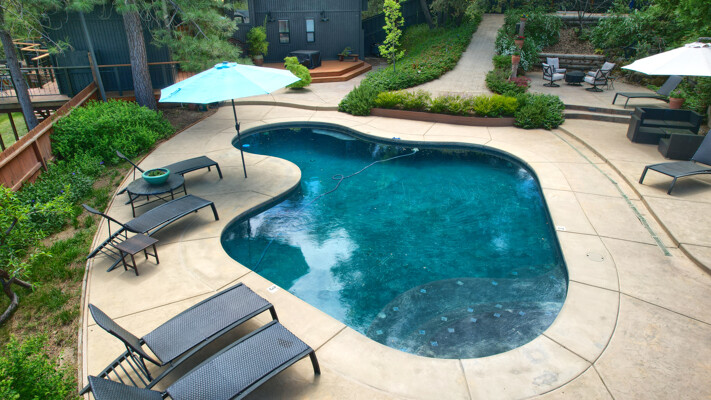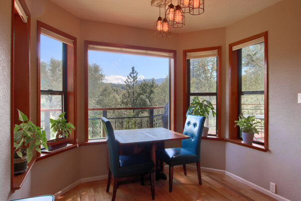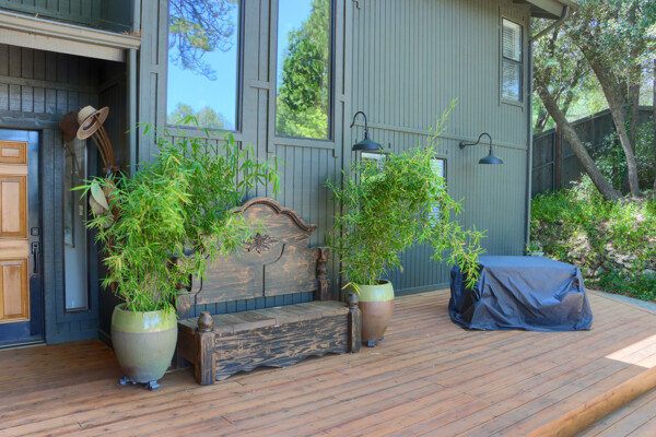 Stunning mountain gem complete with an in-ground pool, creek frontage, gorgeous views and an apartment ADU! The fabulous main home is 2804+/- sq. ft. with 5 bedrooms, 3 bathrooms, beautiful hardwood floors, spacious living/dining room with 2 story ceiling, large kitchen with tile counter tops, built-in bookshelves, recessed lighting, stainless steel appliances and wonderful wood cabinets. There's a great bonus room with wrap around sliding glass doors and a private deck. The primary bedroom is also on the main level with ensuite bathroom. Complete with sit down vanity, walk-in closet and privacy toilet and shower. Guest bedrooms are upstairs and each offers special built-in features. The gorgeous pool is the central focus with dramatic views, charming landscaping and patio areas to accent it. There is a 1 bedroom, 1 bath apartment with a complete kitchen, recessed lighting, french doors and private deck. The homes are built with care to accentuate the beautiful surroundings on this 2.74+/- acres with tall trees, peaceful creek frontage and the serene mountain views! Centrally located close to Oakhurst for shopping, Yosemite National Park for adventure and Bass Lake for fun in the sun. Comes furnished too. Make your appointment to tour this retreat home!