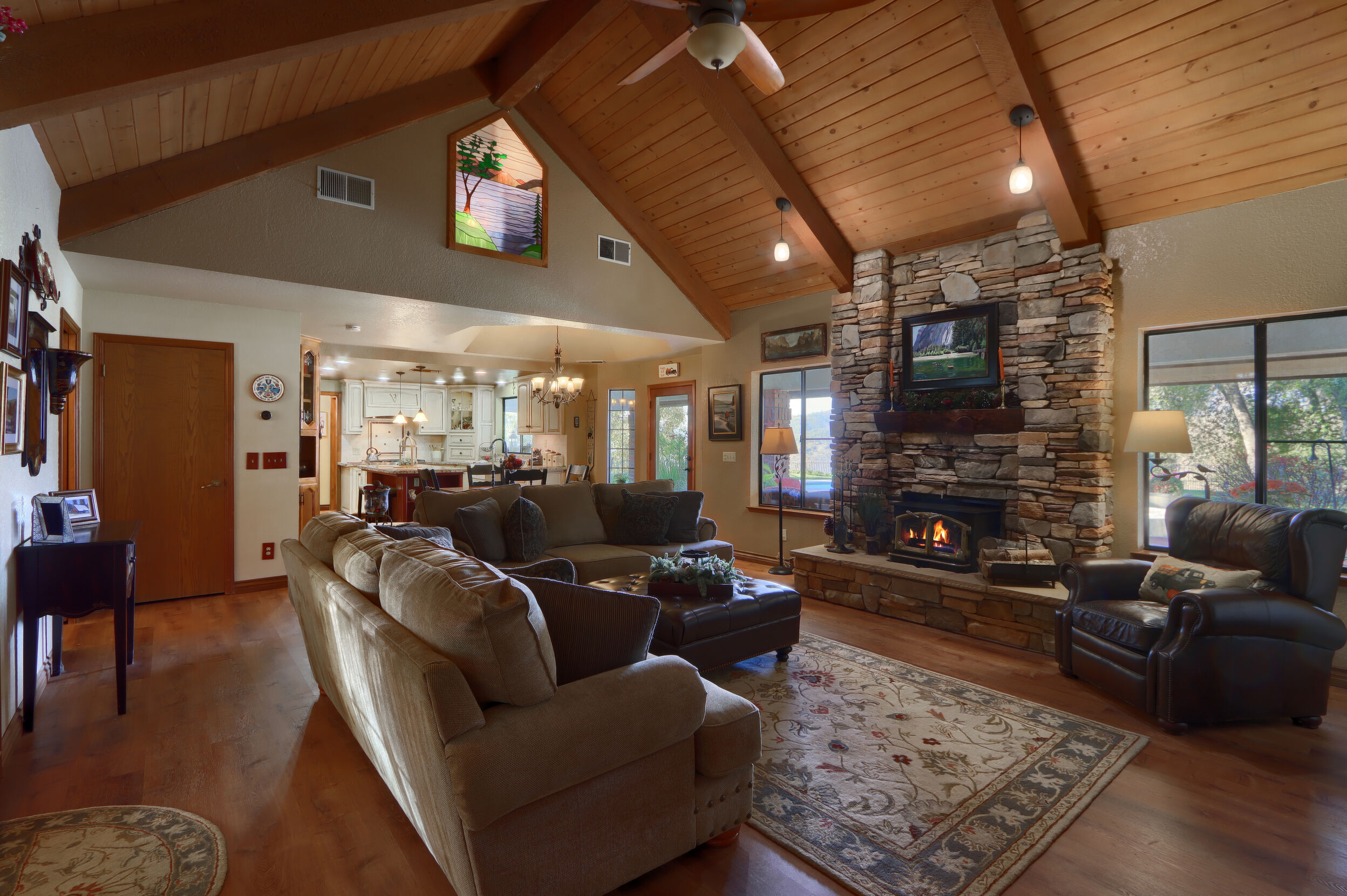 Set on 2.85 beautiful acres at approximately 3, 300 feet in elevation, tis 2,367 square foot custom-built home offers cooler summer temperatures, privacy and breathtaking views of Deadwood Mountain. The home features 3 spacious bedrooms, 2 bathrooms, plus a dedicated office that could easily serve as a 4th bedroom. The remodeled kitchen and bathrooms bring modern comfort while preserving the home's warm, rustic character. Inside, you'll be welcomed by stunning pine tongue-and-groove ceilings, a beautiful rock fireplace in the living room, and charming built-in hutches, cabinetry, and wine storage-details that make this home truly special. A large laundry room with a sink adds everyday convenience, and there is abundant storage space above the garage. Step outside to enjoy your own inground pool and spa, perfect for relaxing, entertaining, and soaking in the peaceful mountain surroundings. With ample room to road, striking views and thoughtful upgrades throughout, this property blends comfort, craftsmanship, and outdoor living at its best.