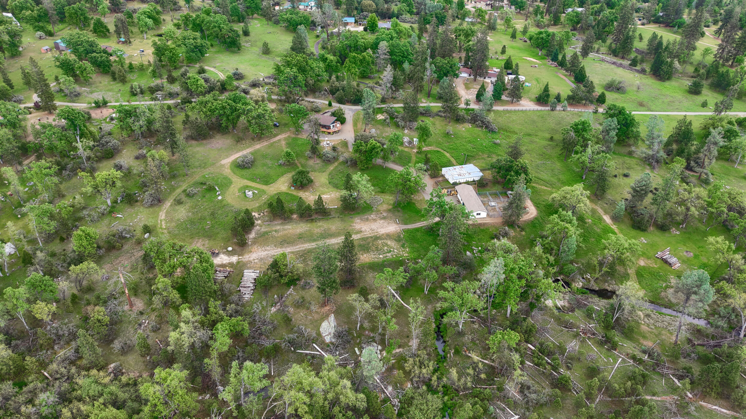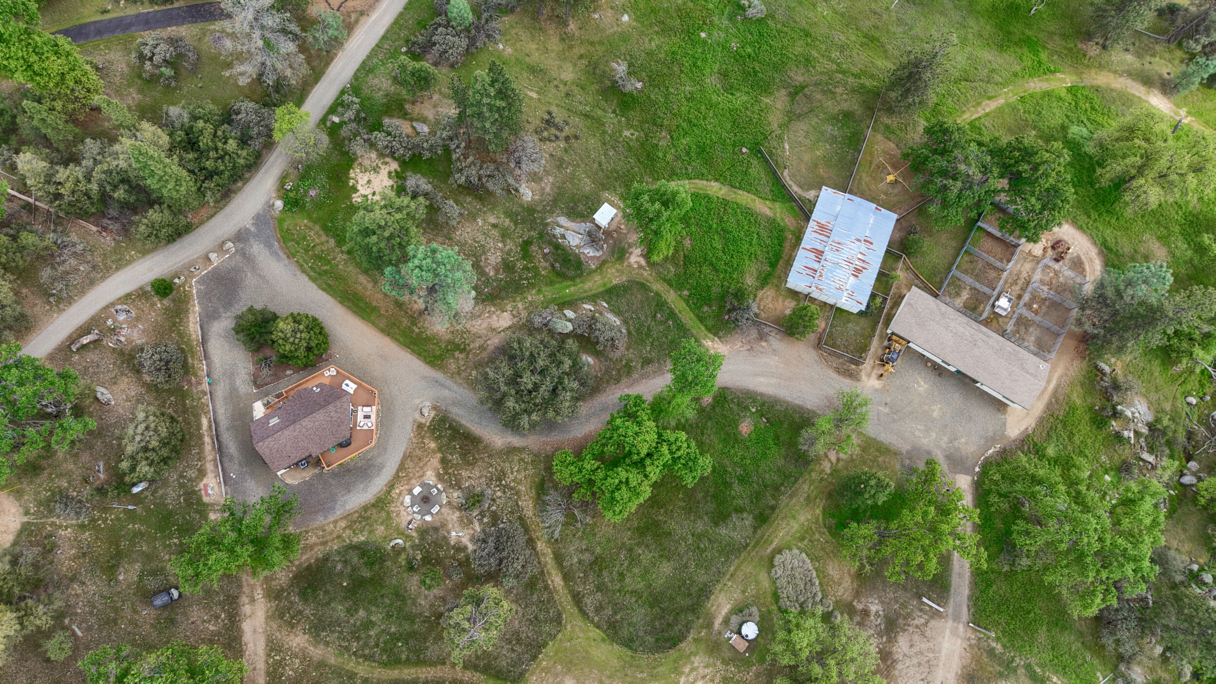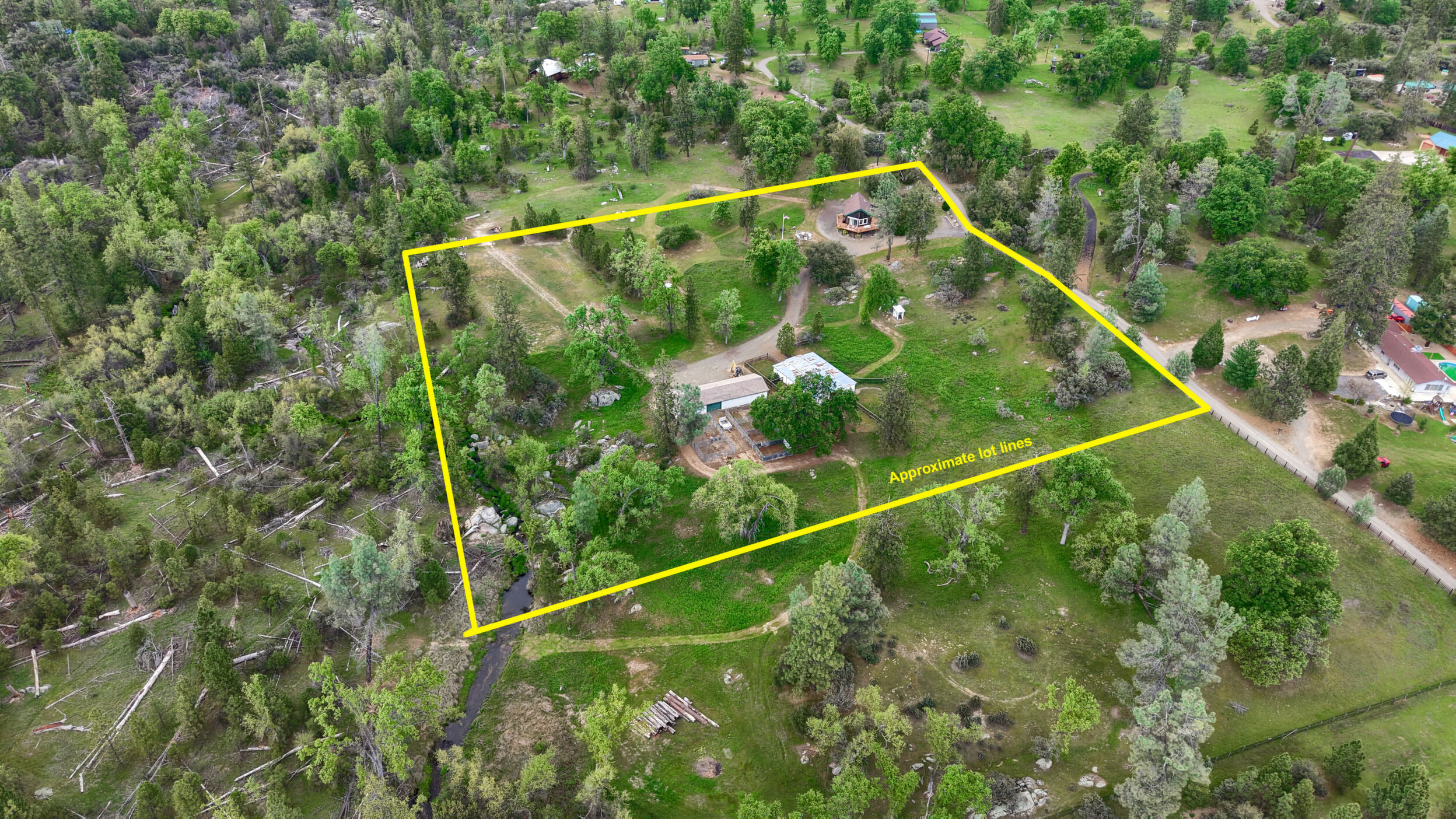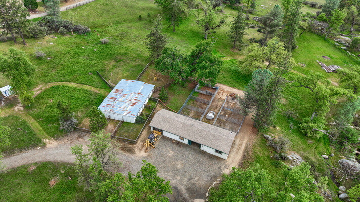 Tucked into the peaceful foothills of Mariposa, 5027 Fox Creek offers the kind of lifestyle buyers dream aboutprivacy, usable land, and a true connection to nature. Set on 5 beautiful acres with the Middle Fork of the Chowchilla River bordering the western edge, this custom three-story mountain retreat delivers sweeping views, abundant wildlife, and a setting that feels worlds away while still being within reach of Yosemite. The home is thoughtfully designed with 2 bedrooms, 2 bathrooms, a spacious loft, 2 bonus rooms, a main-level bedroom and bath, and a private lower-level primary suite complete with its own den, office, and full bathideal for multi-generational living, hosting guests, or creating a private retreat space. Expansive floor-to-ceiling windows bring the outdoors in, while multiple decks and patios on every level provide the perfect backdrop for morning coffee, evening sunsets, and year-round entertaining. Equestrian enthusiasts or those seeking a hobby ranch lifestyle will appreciate the existing infrastructure, including an 8-stall barn with power and water, 7 outdoor stalls, a -acre riding arena, and multiple fenced turnouts, along with a second barn featuring a bunk room, wood stove, and flexible space for recreation or guests. Additional highlights include a garage with storage, 50-amp RV hookup with dump station, strong cell service, and recent system updates including AC (2022), water heater (2023), and electrical improvements (2021), with most furnishings included for a turnkey opportunity. Now offered on the improved 5-acre parcel, buyers also have the rare opportunity to expand their footprint with two additional adjoining 5-acre parcels available for purchase, creating up to 15 acres of privacy, flexibility, and long-term investment potential. Whether you're looking for a full-time residence, weekend escape, or lifestyle property with room to grow, this is Mariposa living at its best.