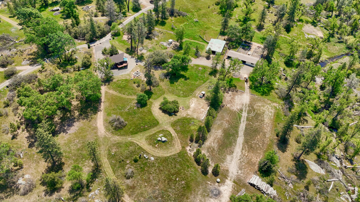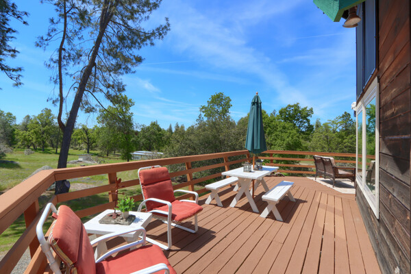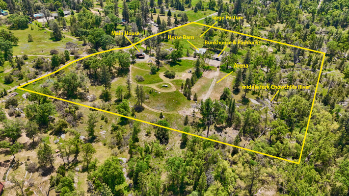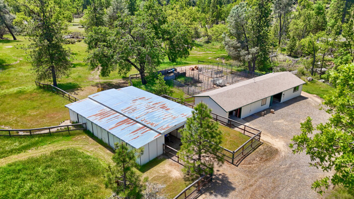 Welcome to your scenic retreat, a custom three-story mountain cabin set on 15 stunning acres across three APNs with the Middle Fork of the Chowchilla River running along the western edge. This property offers sweeping views, abundant wildlife, and the ideal setup for horse lovers. The middle 5 acre parcel has all building improvements and the adjoining two parcels are vacant. The home features 2 bedrooms, 2 bathrooms, a loft that sleeps 8, a main-floor bedroom and bath, and a private master suite on the lower level with a den, office, and full bath. Floor-to-ceiling windows bring the outdoors in, and each level has its own deck or patio to enjoy the peaceful setting. There is also an additional exterior bathroom with electricity, hot water, and a shower. Designed for equestrian living, the property includes an 8-stall barn with water and power, 7 outdoor stalls, a ½-acre riding arena, and 4 fenced turnouts. A second barn offers a bunk room, fridge, wood stove, pool table, and gym equipment—great for guests! Extras include a garage with storage, 50-amp RV hookup and dump station, plus recent updates: AC (2022), water heater (2023), and electrical (2021). Strong cell service, plenty of room for parking, and most furnishings are included. Just 30 miles from Yosemite, this rare retreat is where rustic charm, wide-open beauty, and equestrian dreams come together in perfect harmony. All this for $775,000. There is also the option to purchase 10 acres with the home, rather than the full 15 acres, for $695,000. Call the listing agent for more details!