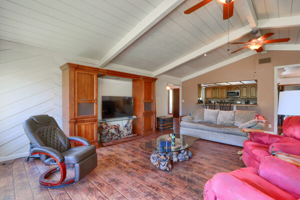 This lovely single story home has 3 bedrooms, 2 baths with fantastic high Sierra views! Wonderfully open floor plan with a spacious great room and kitchen with a walk-in pantry. Located on 2.06+/- gorgeous acres where the fresh mountain air and breezes through the tall Cedar trees will make sitting out on the deck one of your favorite places to be! An attached potential ADU apartment, mother-in-law quarters or short term rental has potential for income. The apartment space has wood laminate and tile flooring, sink, propane heater and a tub/shower in the bathroom. Detached 2 car garage. Come and tour this home today!