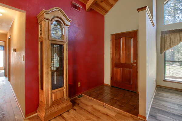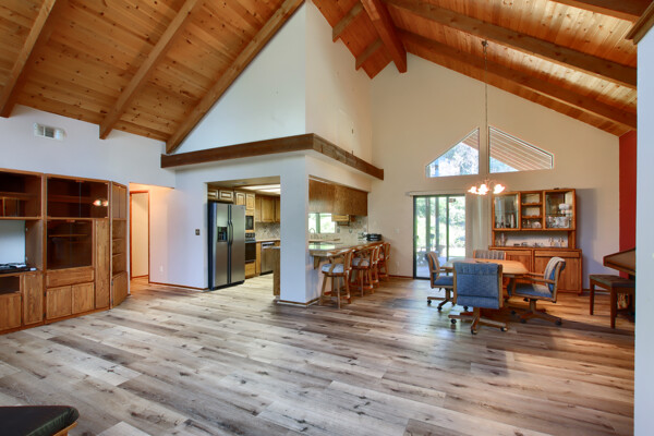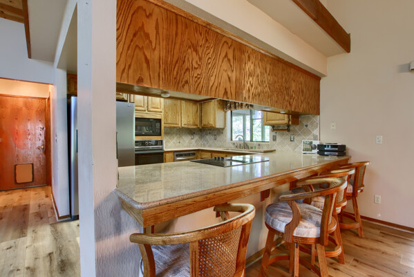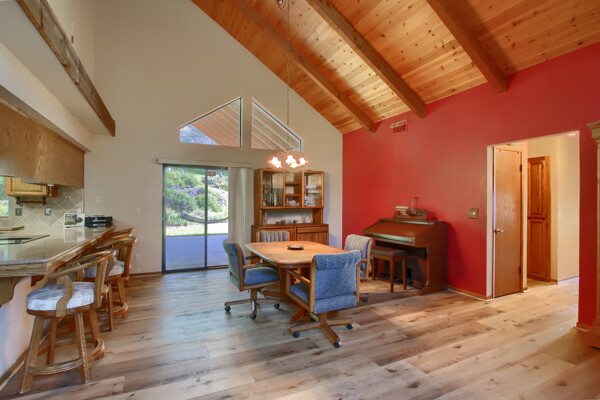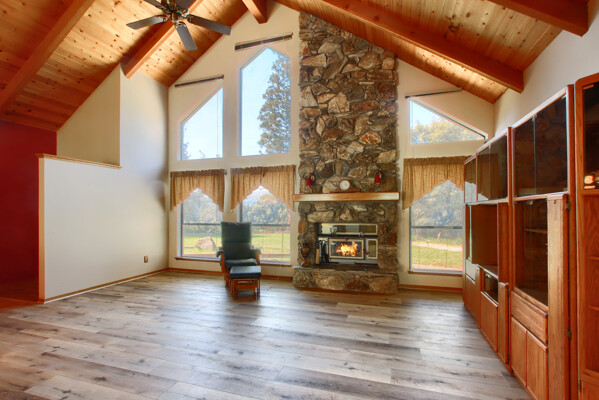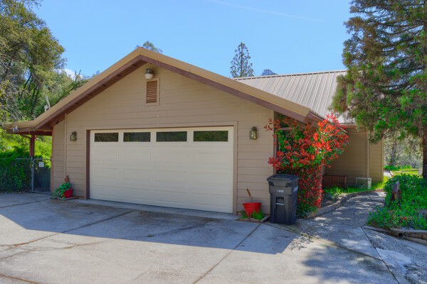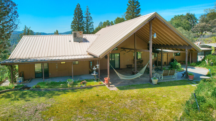 Serenity in the mountains with fabulous views and all of the convenience of being close to town and schools! Custom built 3 bedroom, 2 1/2 bath home with gorgeous features and beautiful property! This turnkey home will be your peaceful retreat with a lovely front yard leading you into the large living room with vaulted tongue 'n groove beamed ceilings, dramatic windows, ceiling fan, rock hearth with wood stove and an open flowing floor plan to the dining area with back patio access and kitchen with breakfast bar. The kitchen offers granite counter tops, built-in cooktop, stove, dishwasher and microwave and a large walk-in pantry! The laundry room has a convenient half bath attached. The guest bedrooms have carpet, ceiling fans and walk-in closets and the guest bath has a tub/shower. The primary bedroom has private patio access with a walk-in closet and the attached bathroom has extra storage cabinets, double vanity sinks and a shower. Your favorite spot will be the back covered patio with an easy pass thru to the kitchen and ceiling fans! It's great for entertaining or barbecuing with plenty of lawn area for pets or children to run around. There's an attached 2 car garage and a workshop area along with a detached large carport. The beautiful trees and landscaping adds to the peaceful setting for this home on 1.03+/- acres! Just a short drive to Bass Lake or Yosemite National Park for more outdoor fun, adventure and beauty!