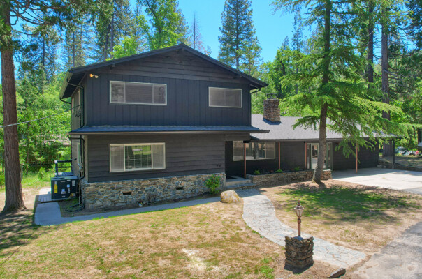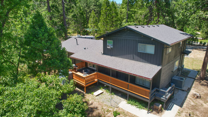 Ideal location with 2 homes! Just minutes to Bass Lake and Yosemite National Park. The larger 2662+/- sq. ft. 5 bedroom, 3 bath home has been renovated and the 2nd home is 2054+/- sq. ft. 4 bedrooms with an office, 2 baths and has a kitchenette. Home has been upgraded and improved with new luxury vinyl plank flooring, new HVAC system, new mini splits, new window coverings, kitchen has new appliances with quartz and copper countertops, propane gas stove, fresh interior and exterior paint and several new light fixtures throughout. There is a separate bonus room with a wet bar including a small refrigerator and sink and private slider to the back deck for entertaining or barbecues. There are 2 laundry rooms, one on each floor. So much to see at this beautiful home. The second gable style home has been a long term rental. If that's not enough this property has a horse barn with pipe horse corrals that borders a seasonal creek. Home is setup for a great vacation rental with plenty of room to enjoy outdoor volleyball, evenings around the campfire and just minutes to outdoor adventures in Bass Lake and the stunning beauty of nature in Yosemite National Park.