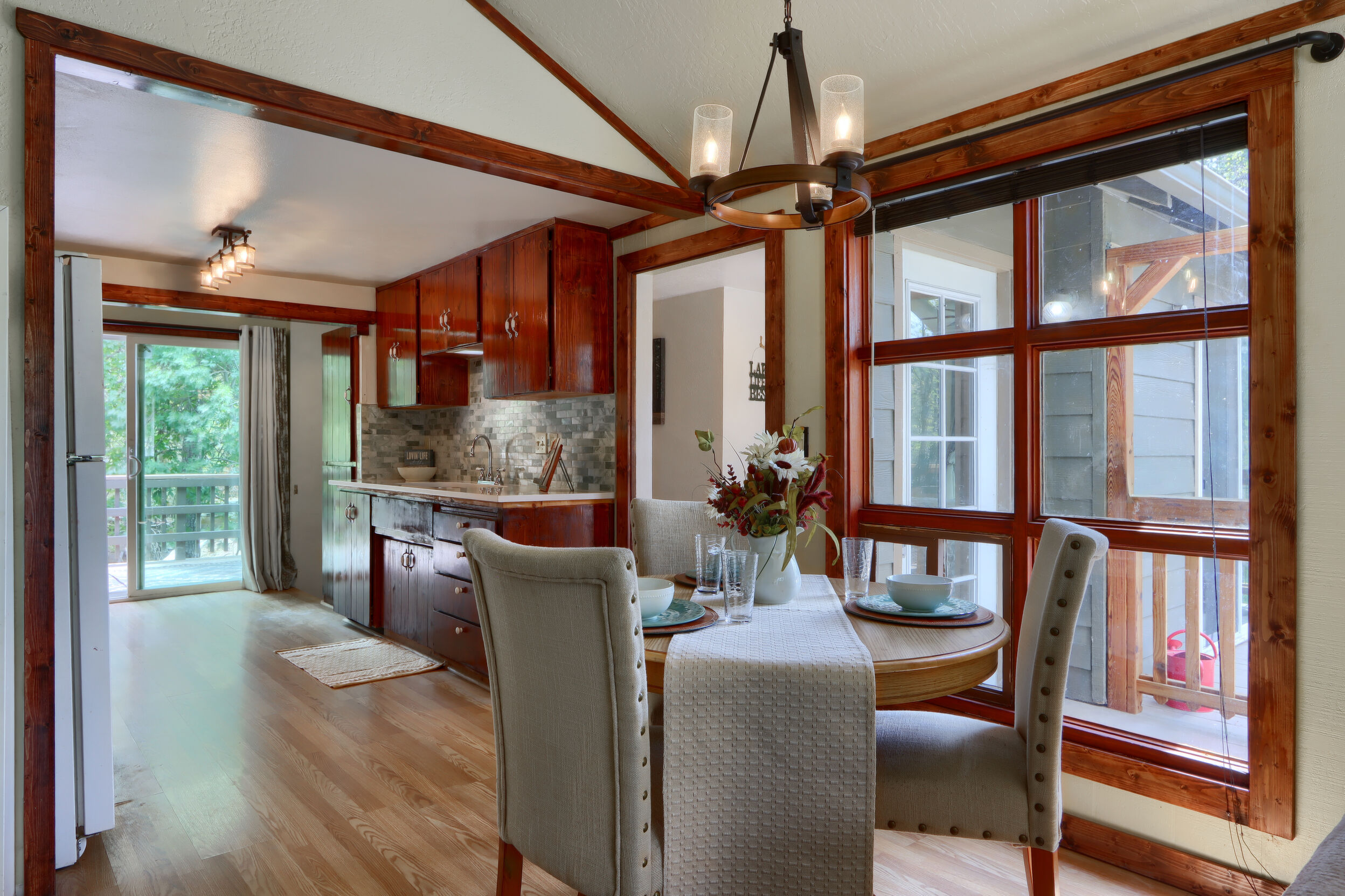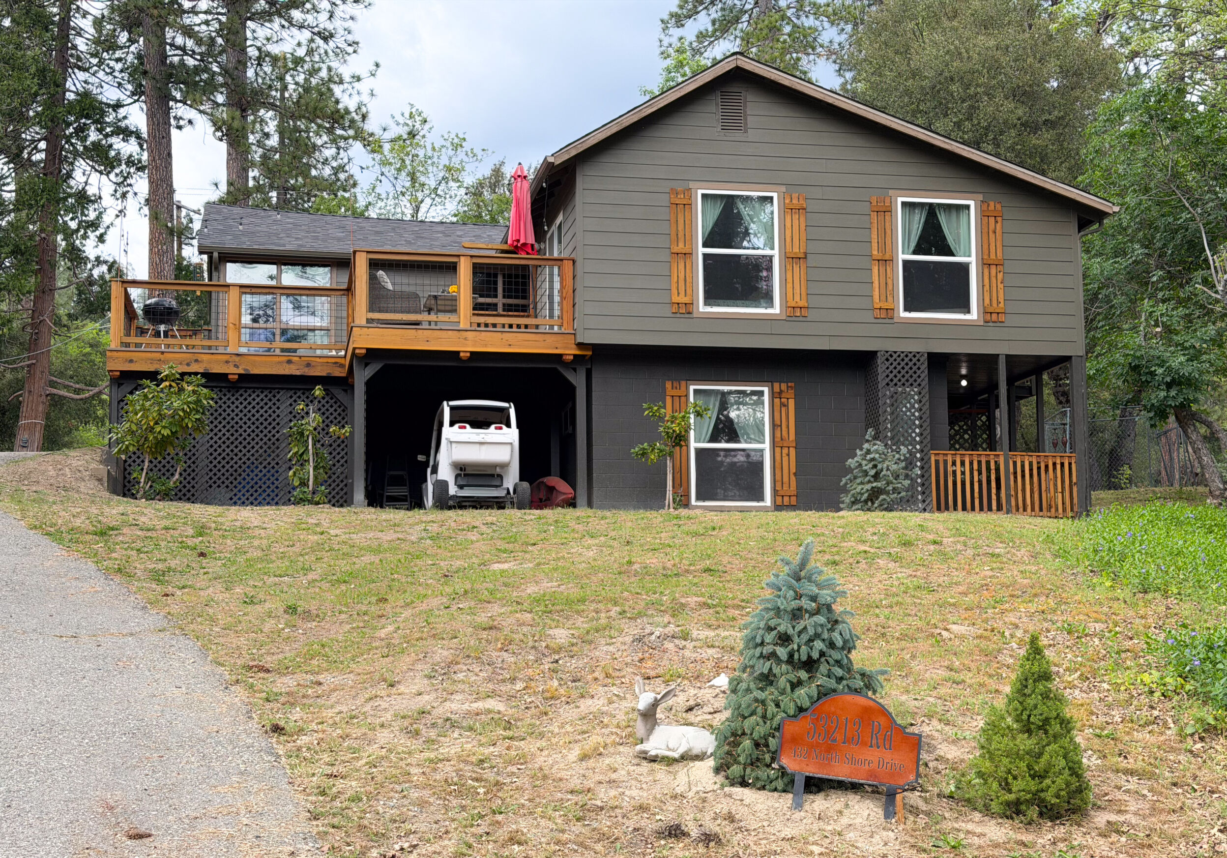 Classic charm meets cabin comfort in this beautifully updated Bass Lake cabin, perfectly positioned for year-round fun and just minutes from Yosemite National Park. Located in the desirable Falls Tract, this turnkey, 3-bedroom, 2-bath retreat offers the ideal blend of recreation, relaxation, and investment potential. Enjoy endless outdoor adventures at Bass Lake—boating, jet skiing, paddleboarding, fishing, swimming, and lakeside dining are all just moments away. Whether you’re heading into Yosemite for hiking and sightseeing or spending the day on the water, this location delivers the ultimate mountain-lake lifestyle. The home has been upgraded, featuring a new roof, new deck (leveled and reinforced), fresh exterior paint, new flooring downstairs, new carpet in both bedrooms, updated cathedral-style vaulted ceiling, new fans and custom lighting, and a refreshed interior with new hardware and window treatments. The kitchen shines with new quartz countertops, subway tile backsplash, freshly stained cabinets, and updated trim and window finishes. Additional improvements include a new downstairs heater, refurbished furnace, and a new washer and dryer. Inside, you’ll find an open living and dining area filled with natural light, an efficient kitchen with easy access to the side deck, and multiple heating and cooling options including an energy-efficient Daikin unit, propane wall heater furnace, wall cooling unit, and a cozy fireplace with woodstove insert. Most windows have been upgraded to dual-pane vinyl for added efficiency. Set on a spacious and usable 0.33± acre lot with mountain views, privacy, and ample parking, this property also offers nearby lake access, paved year-round roads, public water, and county sewer. With its prime location near Falls Beach—an area known for strong vacation rental demand—this property offers excellent potential to generate income or serve as your own private getaway retreat. Relax, entertain, and take in the mountain air from the expansive front deck—your perfect basecamp for Bass Lake fun and Yosemite adventures.