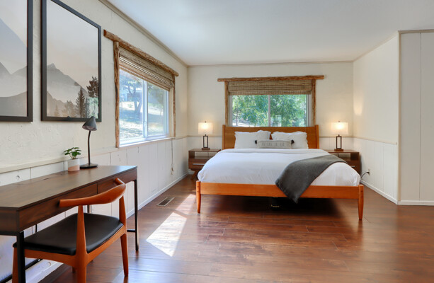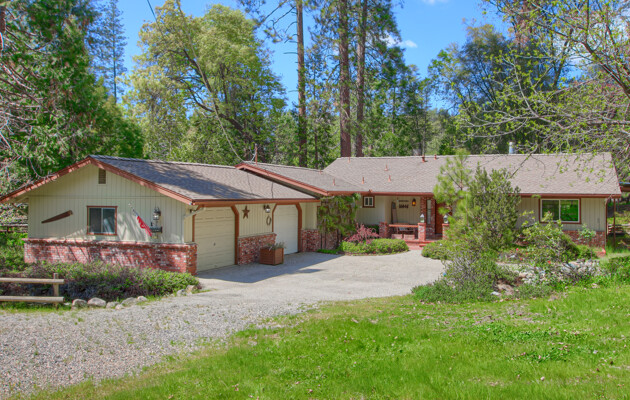 Fully furnished popular vacation rental w/a peaceful setting & charming atmosphere! This 3 BD, 2 BA home sits on 1.22+/- acres where you can enjoy the cooler summer temperatures. Take a retreat every day w/a private spa, covered porches, cozy window seat for reading a book or just enjoy the view, a seasonal creek & beautiful trees. From the spacious front entry you can head into the living room, kitchen or dining area. The living room has great views, a fireplace w/insert, built-in bookcase & a window seat & the dining area has a lg. window to enjoy the view & is perfect for entertaining friends & family. Tile counter space galore, recessed lighting, tin tiled ceiling & stainless steel appliances including a built-in stove top, built-in ovens, dishwasher & refrigerator. The primary BD is huge & has a fireplace, private entrance to the porch, a walk-in closet & the adjoining BA w/dbl. vanities & shower/tub. The sm. guest BD also has a private entrance to the porch or deck. The lg. guest BD has built-in cabinets, potential wet bar w/sink & a private entrance to the outside. Laundry set-up in conveniently in a closet. Enjoy the covered deck to sit a listen for birds or just watch for wildlife to scamper by. Take a relaxing soak in the private spa & you'll see why this home is a popular vacation rental! Rustic beauty is all round you w/tall trees, quaint waterfall feature & landscaping. 2 car garage w/a pool table included & a storage shed. Close to Yosemite National Park!