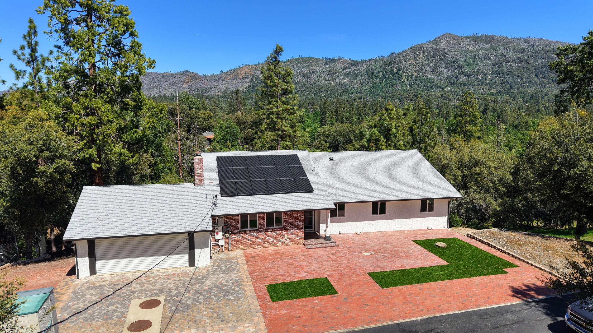 Experience true independence and energy efficiency in this thoughtfully upgraded MOUNTAIN HOME located in the Lushmeadows area of Mariposa, CA. This spacious home has 3 bedrooms, 2 baths, a formal dining room, a den, living room, and an eat-in kitchen. Plus, the daylight BASEMENT of 1972sf offers endless possibilities for customization to suit your needs. Optimal comfort year-round is ensured, without high energy costs, due to the home's energy-efficient design with a temperature-controlled ATTIC FAN, CENTRAL HEAT & AC and owned SOLAR plus BATTERIES. Bring warmth to cool mountain nights with the wood-burning fireplace in the den and the woodstove in the living room. The kitchen is well appointed and attractive with custom tile work, Corian counters and a captivating view of the mountains right from the kitchen sink. Outside, take in the MOUNTAIN VIEWS from the spacious Trex deck which is partially covered and includes ceiling fans while the uncovered area is perfect for star gazing. The property is fully fenced and gated, with RV parking, complete with power and water hookup. Two wooden sheds are for added storage. OWNED SOLAR PANELS, a Tesla Powerwall, and a Generac propane GENERATOR ensure reliable power supply. Couple that with a private well, septic system, and owned propane tank, and there you have complete independence from public utilities. Experience the freedom and sustainability of this well appointed MOUNTAIN HOME!