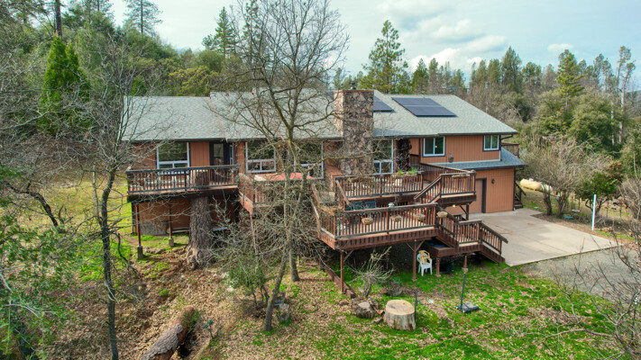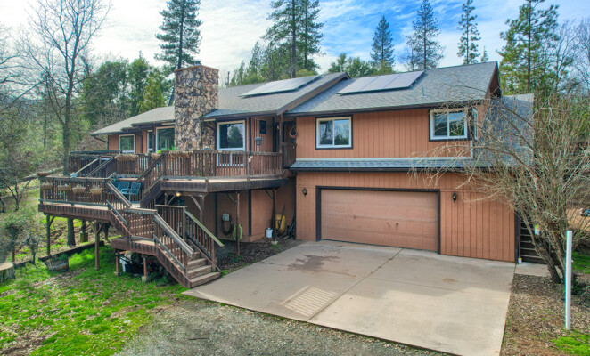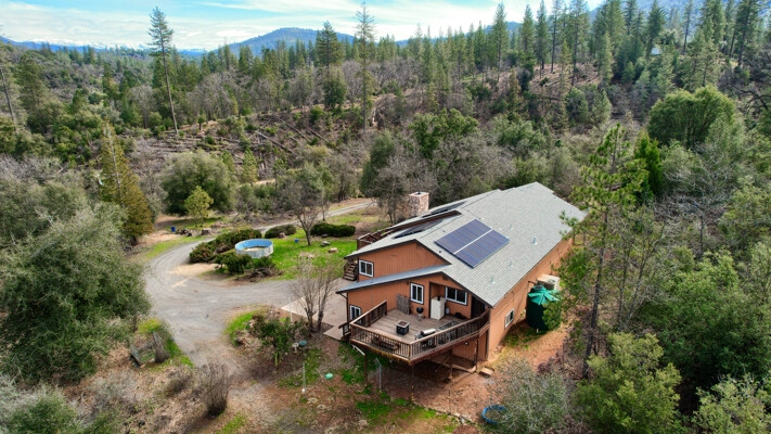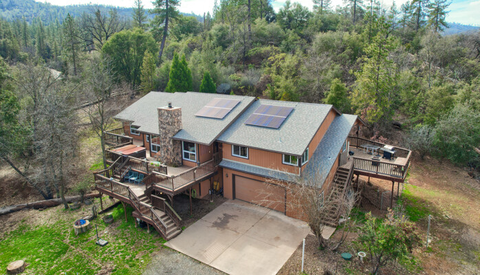 Nestled within the coveted Midpines area, this property offers an unparalleled mountain retreat. Encompassing 2.5 acres of pristine wilderness, you'll be enchanted by the panoramic mountain vistas visible from both decks as you luxuriate in the bubbling spa. Whether you're stargazing or marveling at the abundant wildlife, this sanctuary provides an immersive experience in nature's splendor. Equipped with a robust 20 kW backup generator, your comfort and connectivity are assured. Ideal for gatherings of all sizes, the expansive living room boasts ample space for relaxation accommodating up to sixteen guests. Beyond the living quarters, a den and game area offer additional spaces for leisure and entertainment. Recent updates, including a new roof installed in 2020, a substantial 2500-gallon water storage tank, and the installation of owned solar panels in 2021, ensure both modern convenience and sustainability. Just over an hour's drive from Yosemite Valley, this property serves as an inviting basecamp for exploring the awe-inspiring wonders of the region, including the iconic Half Dome and majestic Yosemite Falls. Whether seeking adventure or tranquility, this mountain retreat promises an unforgettable experience amidst nature's grandeur. Tax records different from MLS, buyer to verify if important.