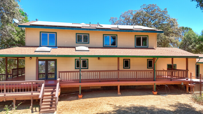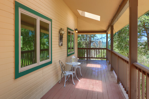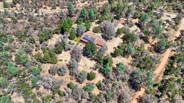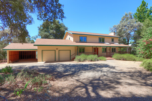 Amazing Custom Home with PaNoRaMiC VIEWS from this private mountain retreat! Just minutes from Yosemite National Park, Bass Lake, and other popular lakes for boating, fishing, house boating, and year-round recreation, this 4-bedroom, 2-bath residence offers 2,760 sq. ft. of inviting living space on 27.54 acres, only a short drive to the historic town of Mariposa. Step inside to discover beautiful wood-beamed ceilings, wood-encased windows, custom wood flooring, and a stunning river rock fireplace with slate hearth that bring warmth and rustic elegance to the main living area. The spacious kitchen boasts custom cabinetry, stainless steel appliances, and a walk-in pantry, opening to the dining area and expansive wrap-around deck with spaperfect for entertaining or simply taking in the spectacular views of the gardens, fruit trees, and wide-open skies. A versatile bedroom/office,  bath, and a large laundry room with space for additional appliances complete the first floor. Upstairs features a bright open family/game room showcasing sweeping Sierra mountain views, three additional bedrooms, and a full bath. The oversized primary bedroom provides plenty of space to add a bath, if desired. Additional highlights include a fully paid solar system, private well, attached 2-car garage, several outbuildings plus an additional covered 2-car carport ideal for a future conversion into a workshop or ADU. Outdoors, enjoy three fenced areas for gardening, pets, or farm animals, along with a detached deck for relaxation or entertaining. A true retreat designed for family and friends close to Yosemite and Mariposa, yet private and serene with sweeping scenic Sierra Mountain Views. The perfect blend of mountain living, rustic charm, and modern convenience!