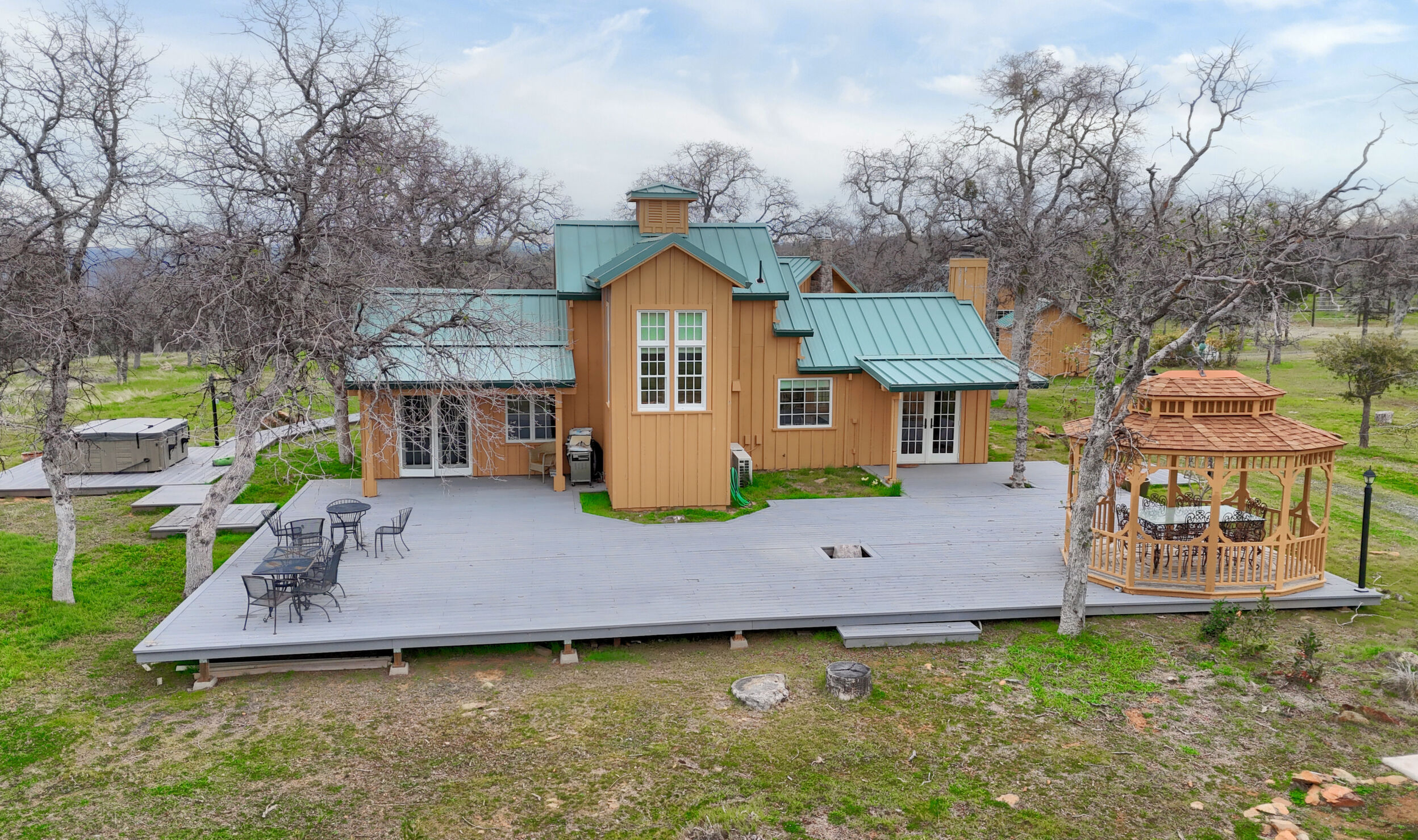 Your Own Private Retreat! Welcome to a truly extraordinary property set on 177 acres of pristine land, near Yosemite National Park. This one-of-a-kind ranch offers the perfect blend of luxury, nature, and functionality! The main residence is thoughtfully designed with expansive Trex decking that wraps around to showcase breathtaking views of the surrounding meadows, forested hills, and distant mountains. A tranquil water fountain, gazebo, hot tub, and outdoor sauna create a serene backyard sanctuary ideal for relaxing or entertaining under the stars. A charming guest home provides additional space for friends, family, or rental income, while a detached garage and fully equipped home gym add convenience and comfort. The land itself is a rare combination of gently rolling open pastures and mature wooded areas with a seasonal vernal pond that invites local wildlife. Whether you're dreaming of grazing livestock, creating your own hiking trails, or simply savoring the wide-open space, this ranch delivers. With Yosemite’s wild beauty just a short drive away, this is the ultimate destination for those seeking peace, privacy, and a connection to nature—without sacrificing modern comforts. This is more than a property—it's a legacy.