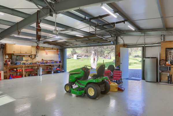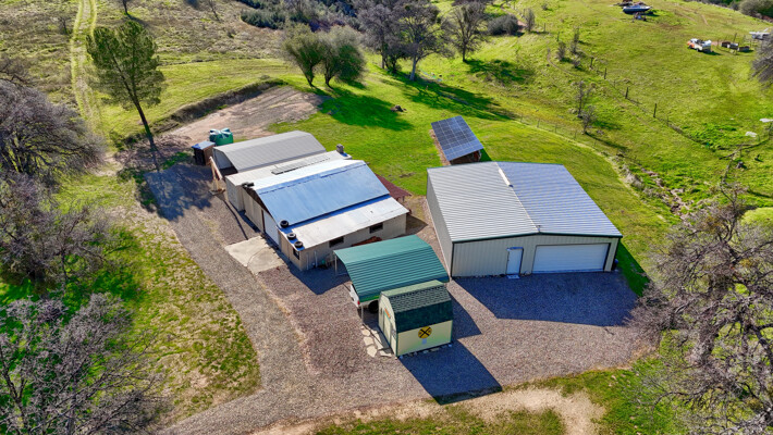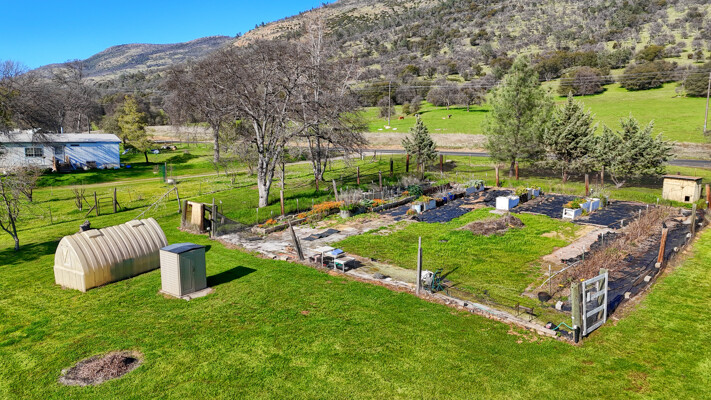 The land is well-equipped for homesteading, with a fenced garden, drip irrigation, a greenhouse, and a thriving orchard with apples, pears, apricots, prunes, plums, persimmons, and pomegranates. Multiple barns, sheds, and a storage container provide ample room for tools, animals, and equipment. A 40'x40' metal shop with power makes a great workspace, and the property is fully sustainable with 36 owned solar panels and a whole-house generator.